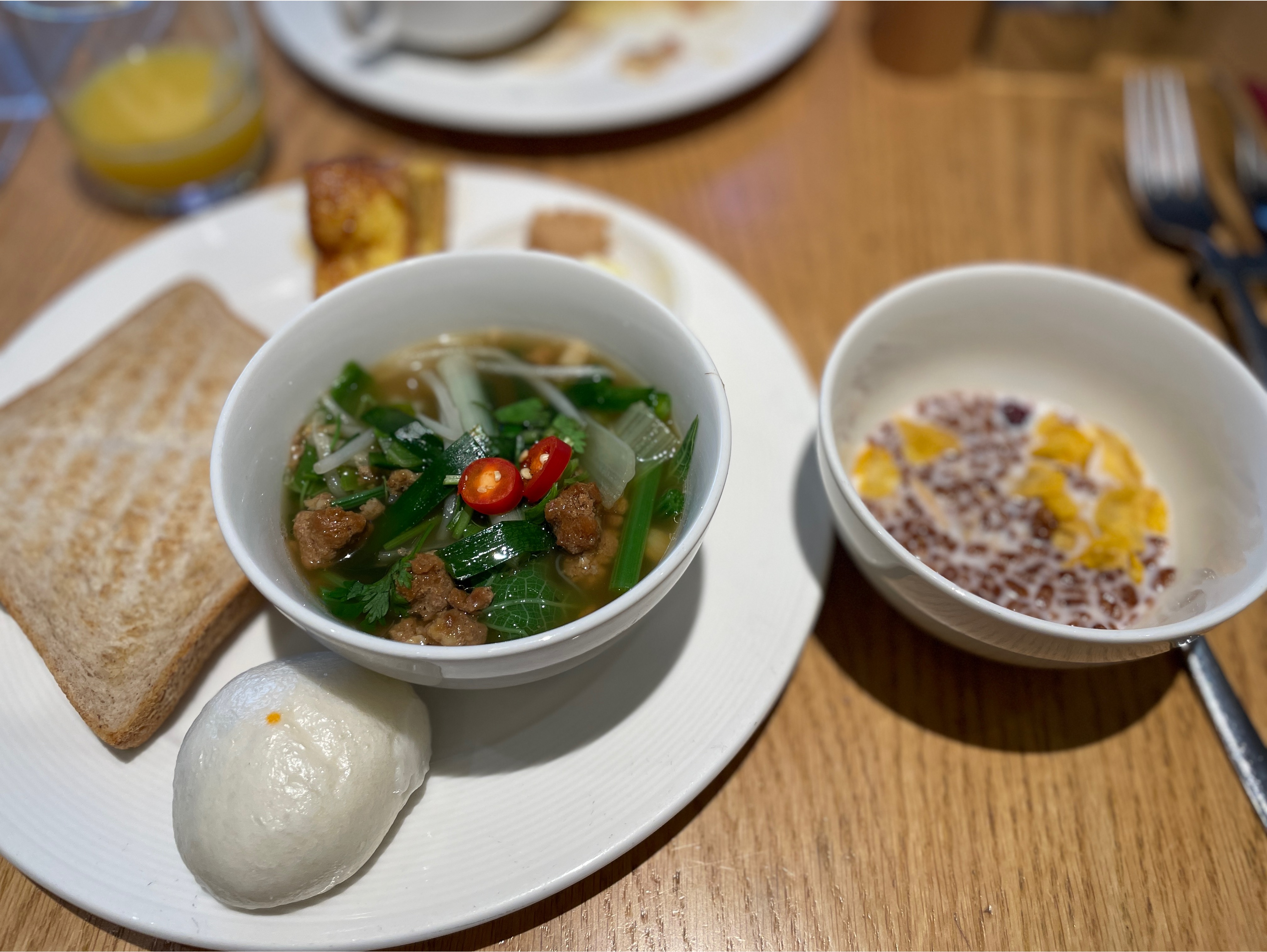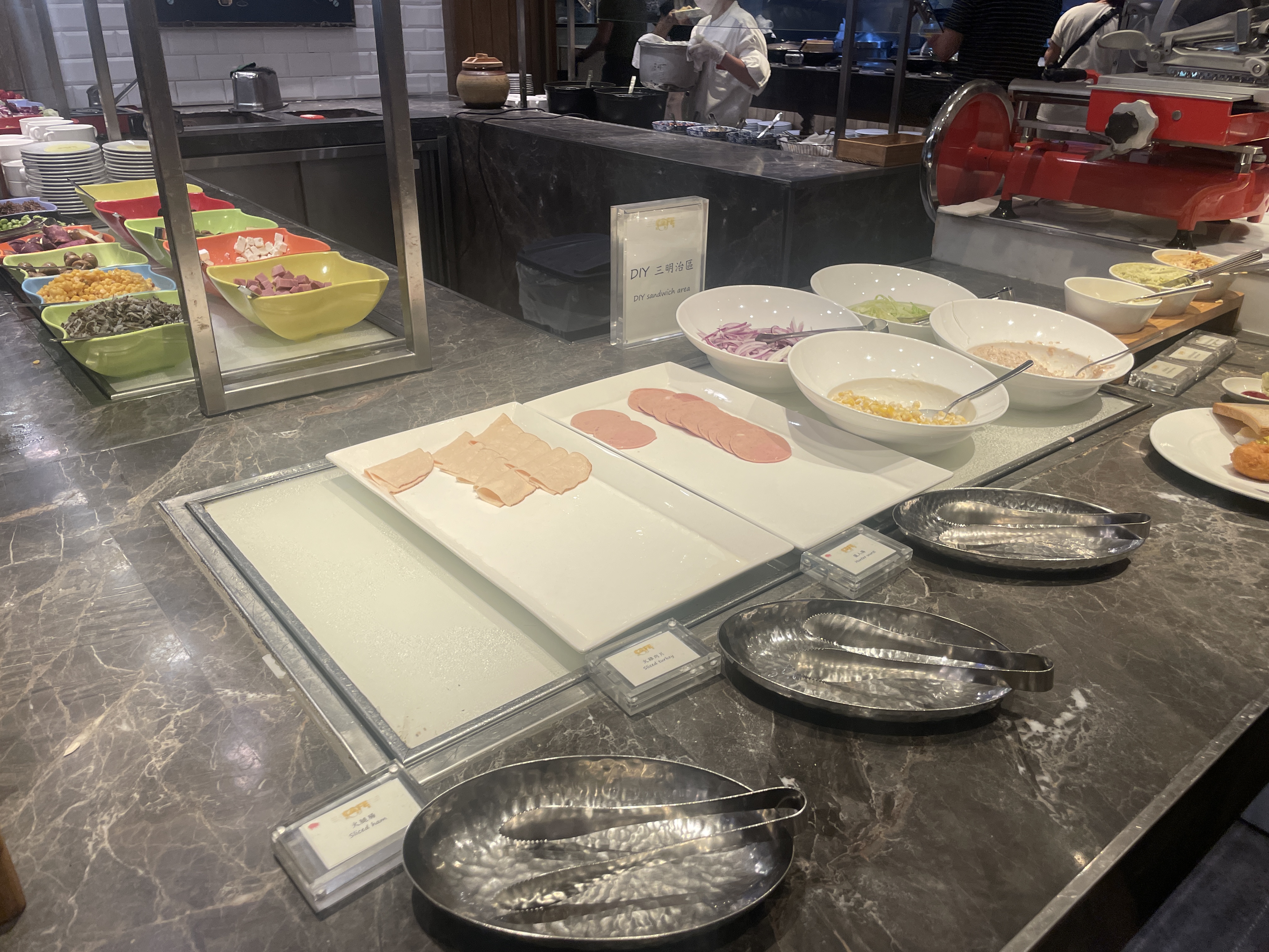 그랜드 하얏트 특성상 조식당 메뉴도 아주 군데 군데 진열되어있어서 사실 동선은 별로 좋지 않답니다ㅜㅜ