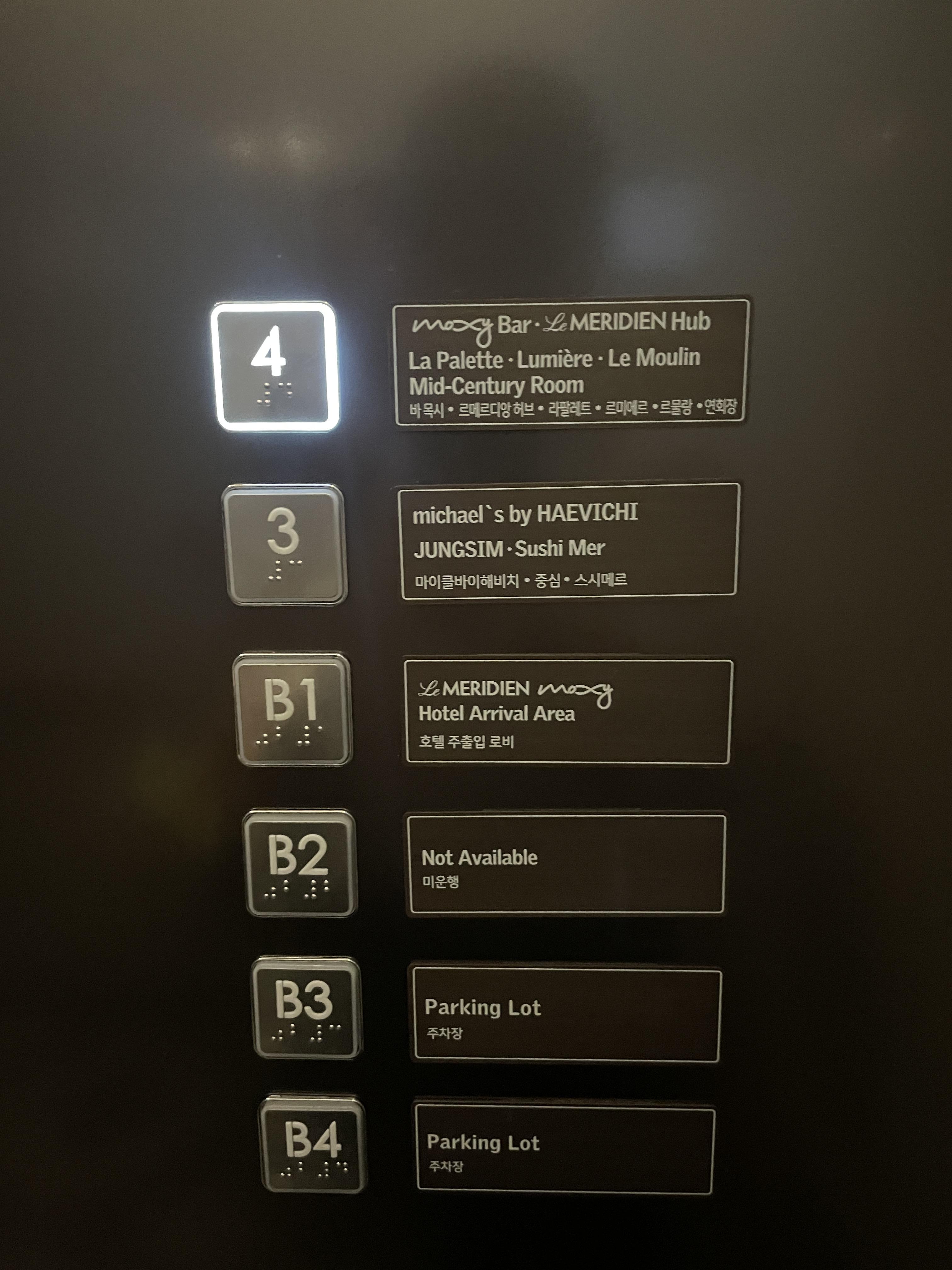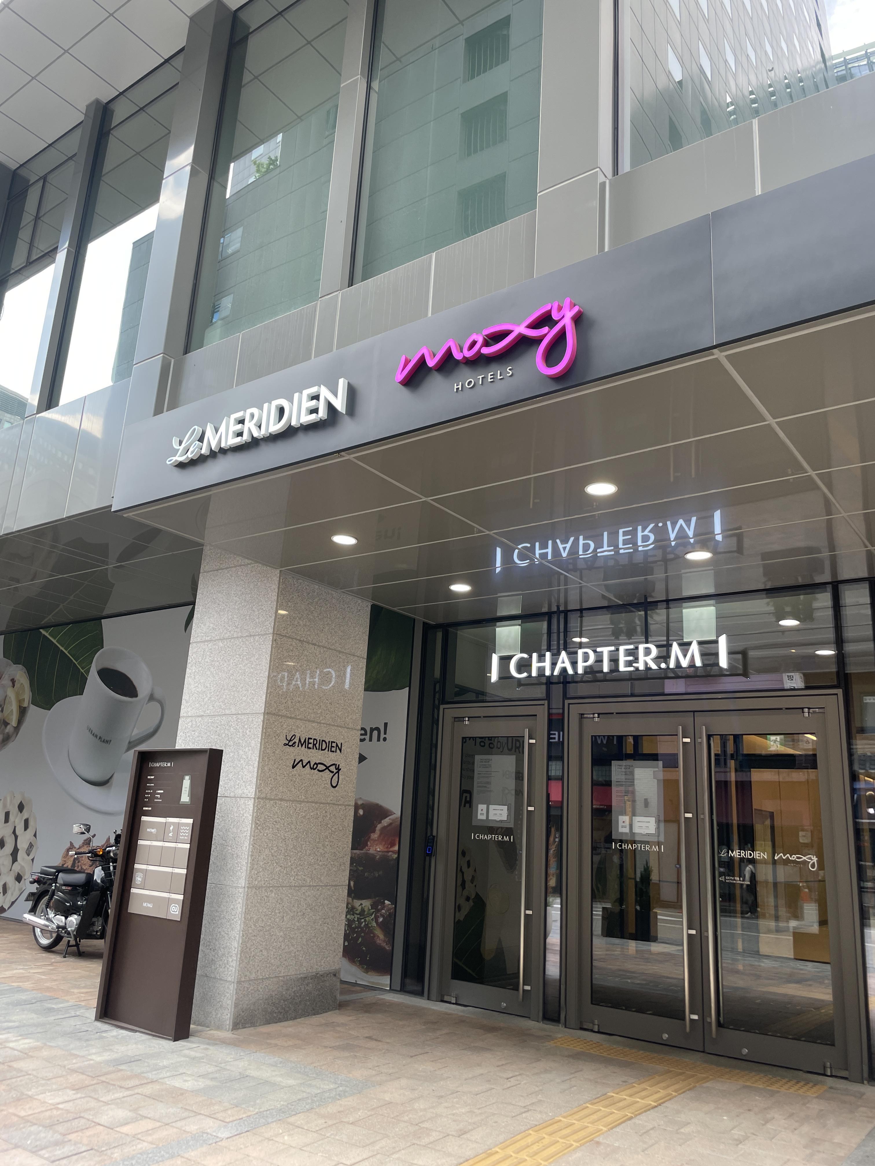 한 건물에 르메르디앙 명동과 목시 명동이 반반씩 차지하고 있어요~