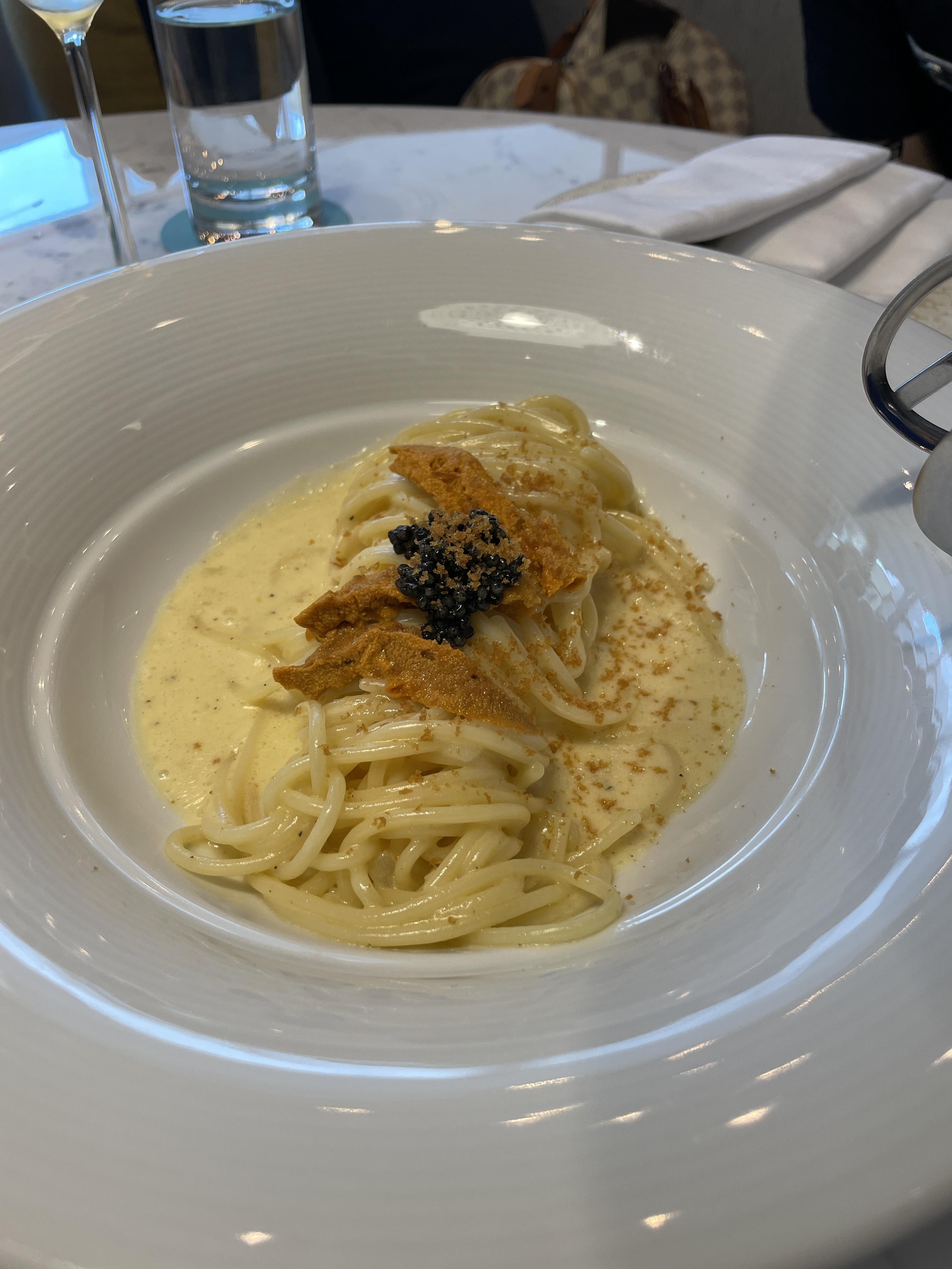 첫 메뉴로 우니파스타가 나왔어요!
