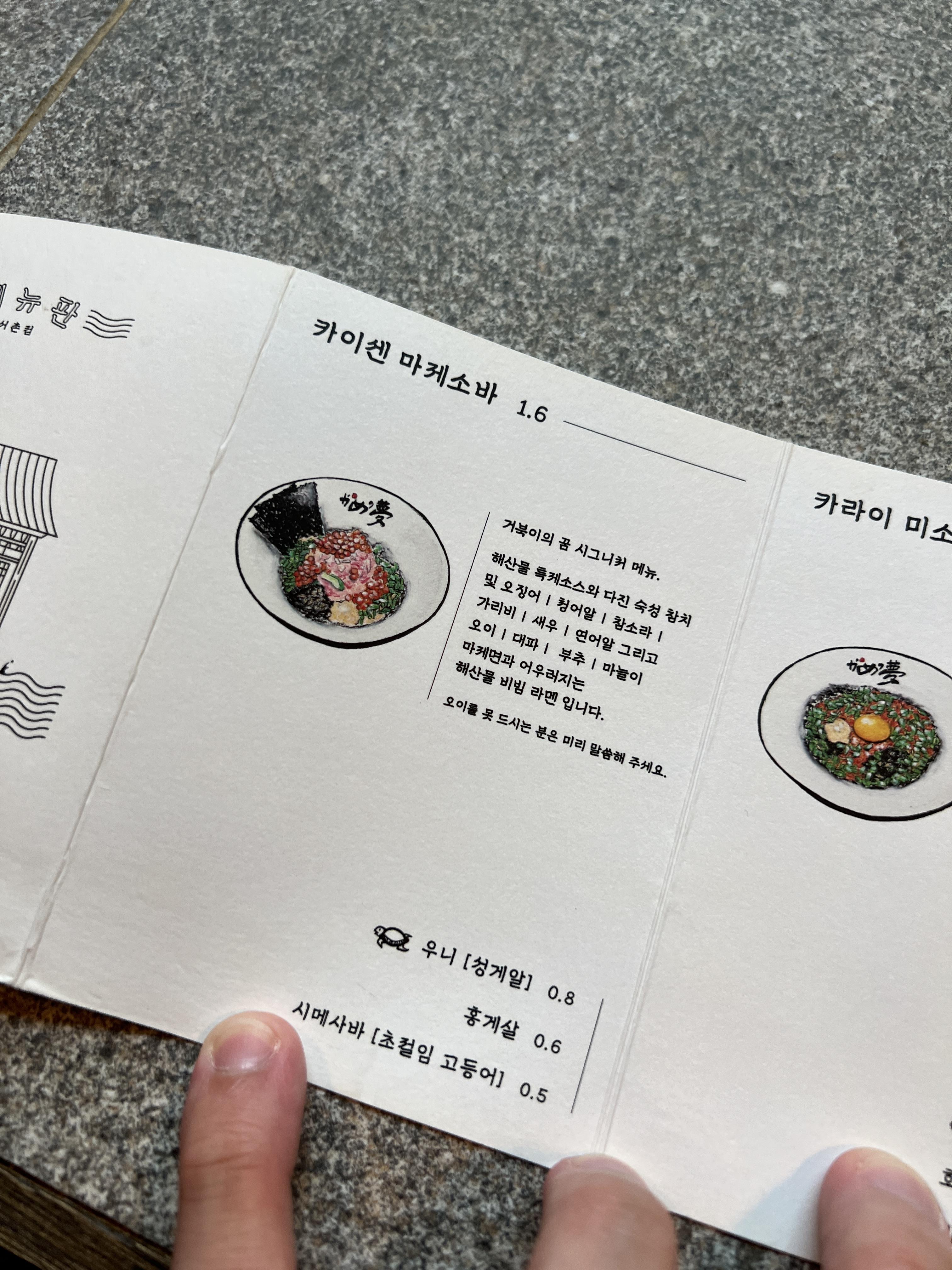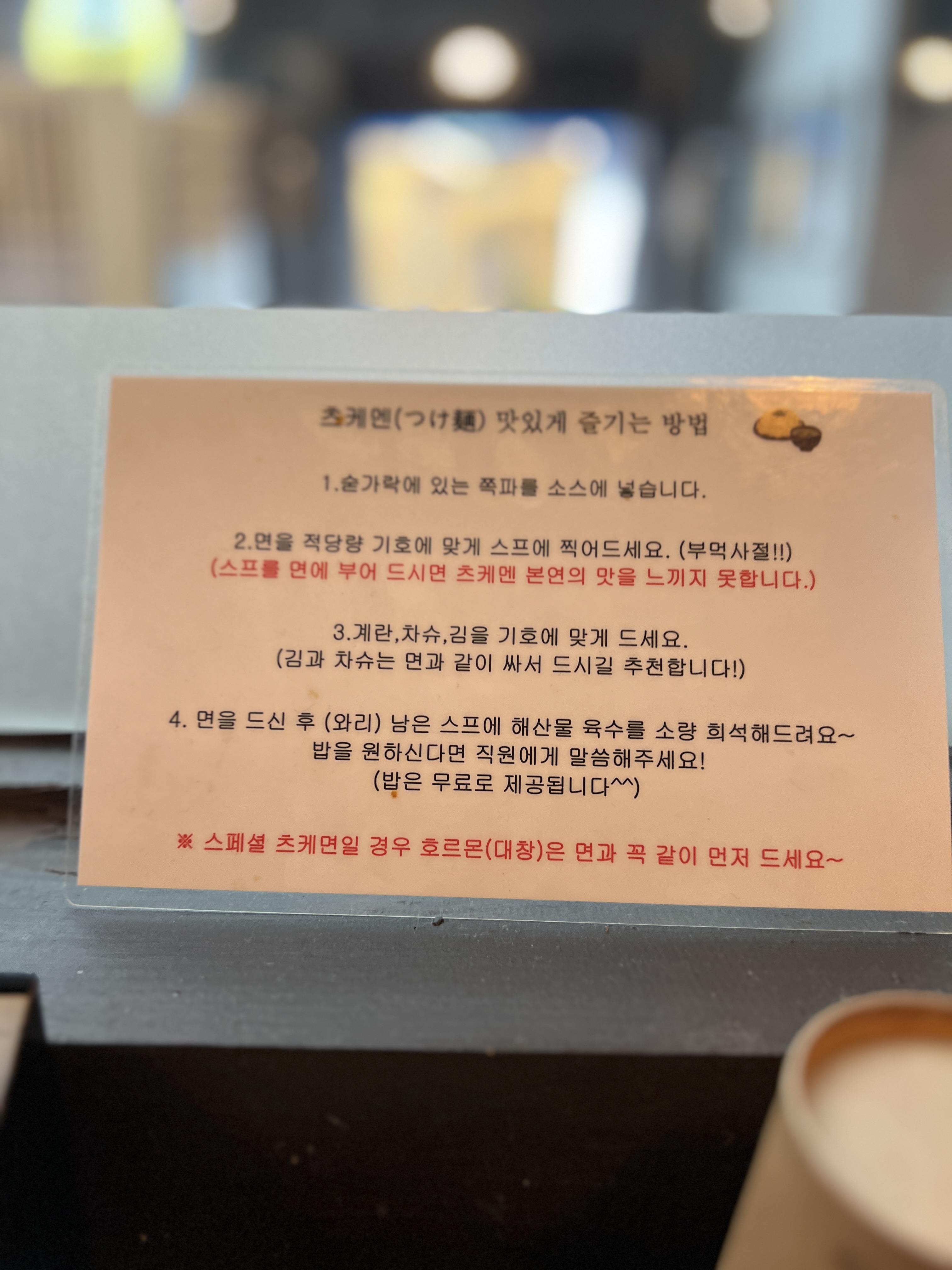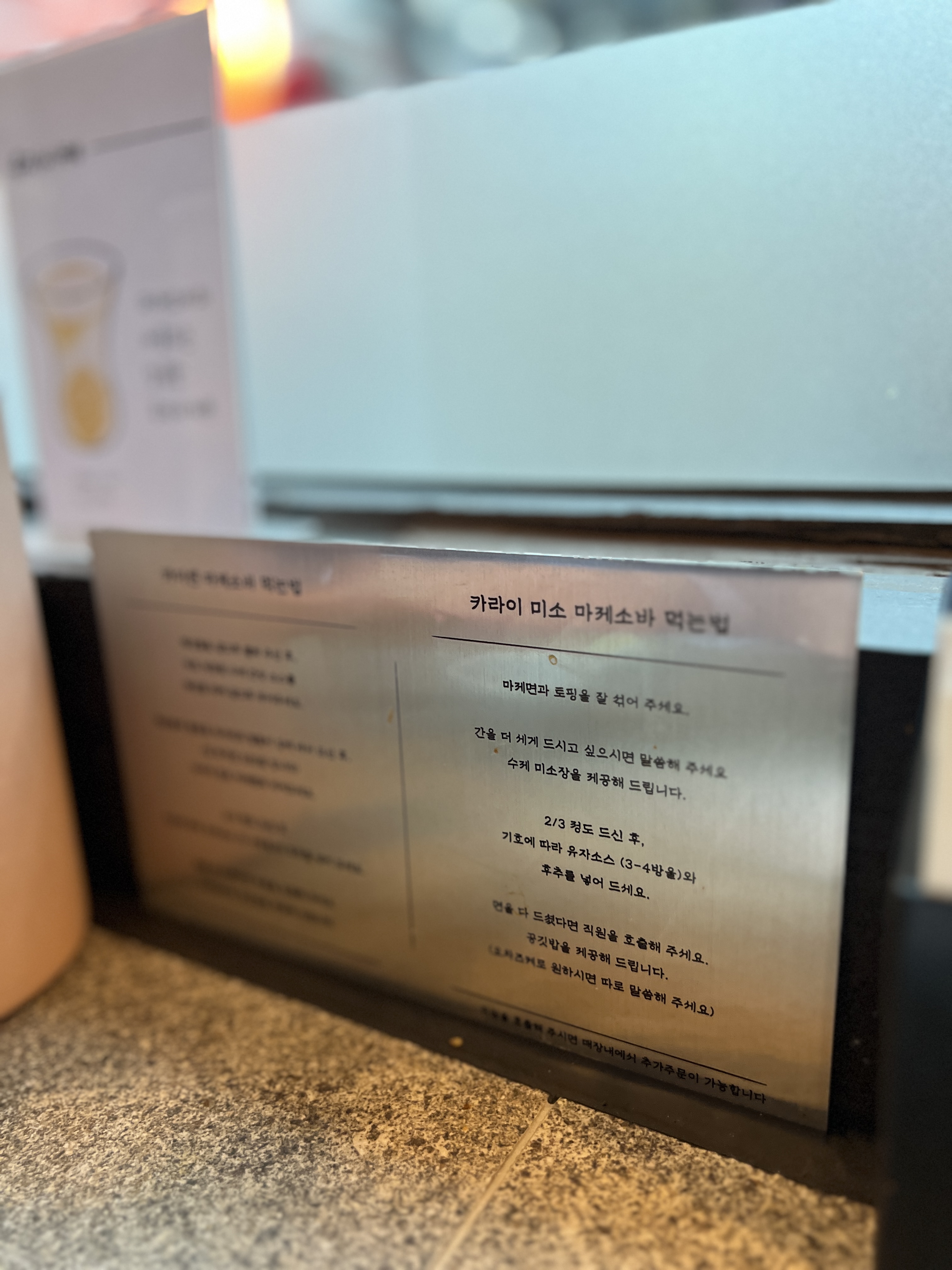 주력 메뉴는 카이젠 마제소바인데, 가격이 16,000원이라고 조금 비싼 편이기는 한데 일단 맛과 분위기 보장이라 이쪽으로 오시면 무조건 한번쯤은 방문해보시는 걸 추천하는 곳.