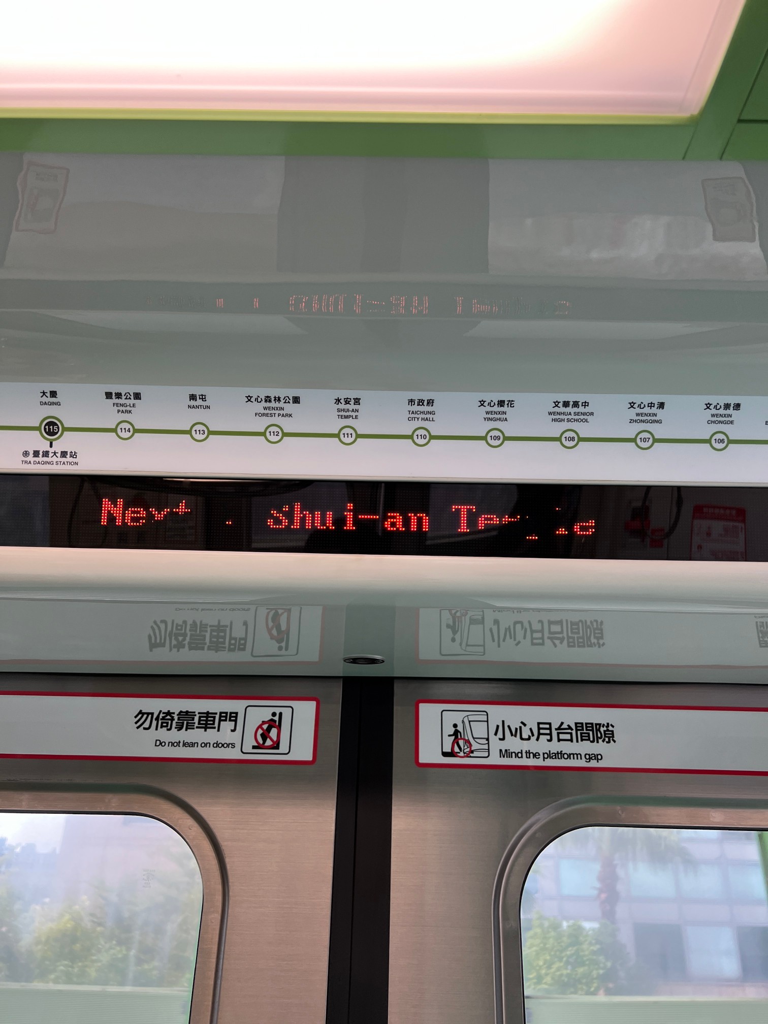 타이난에서 타이중으로 이동하기 위해서는 타이난 고속열차역에서 기차를 타야 하는데, 타이난 고속철도역이 타이난 시내에서는 상당히 먼 거리에 있어서 버스를 타고 이동해야 한다.
