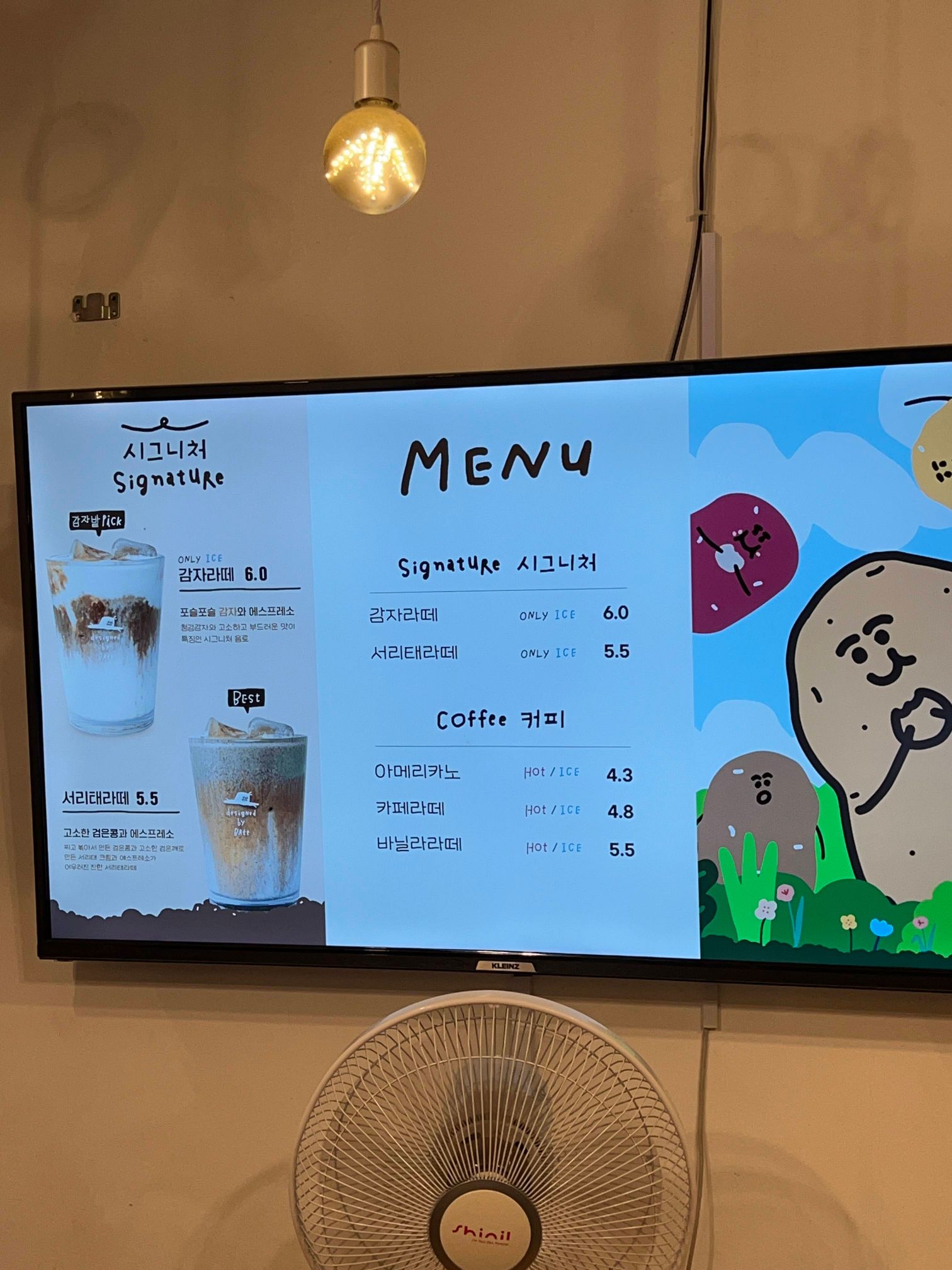 시그니처 음료로 감자라떼가 있는데 감자라떼는 6천원.