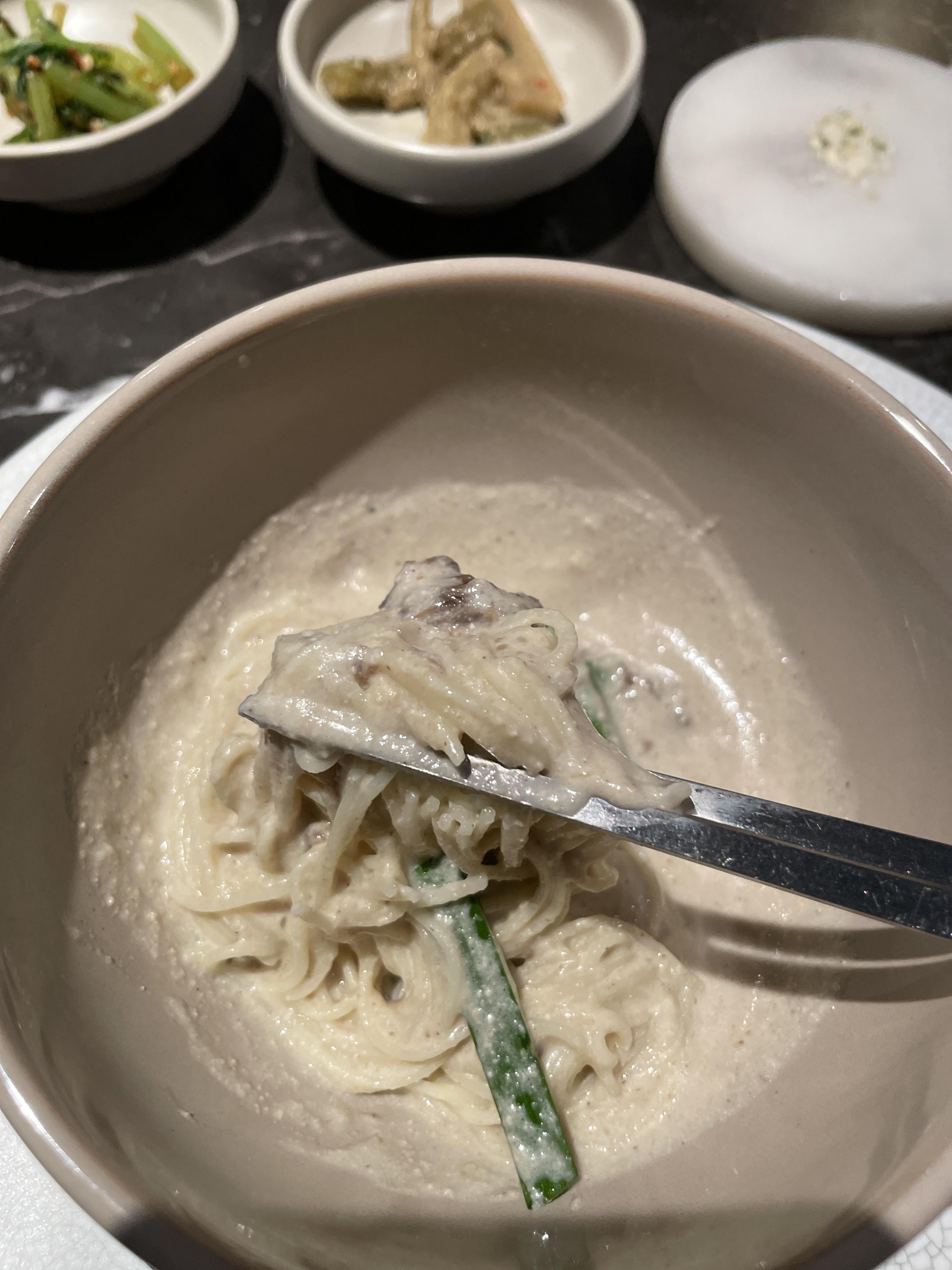 알고보니 안에 국수가 들어 있어서 이렇게 걸쭉하게 고소하게 먹을 수 있는 메뉴였어요