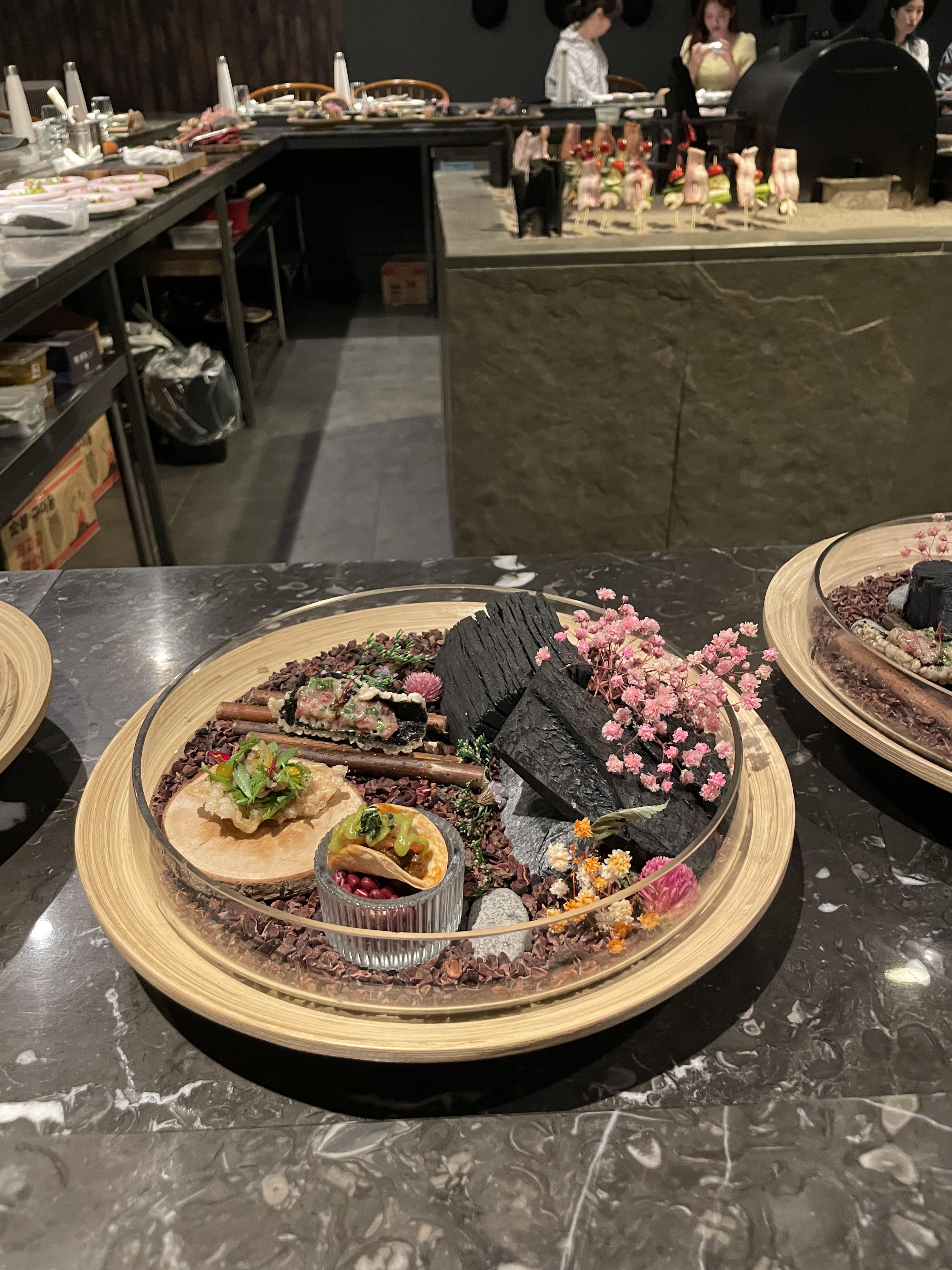 디너 코스를 주문했구요 이렇게 처음에 고기가 세팅 되어 있어요