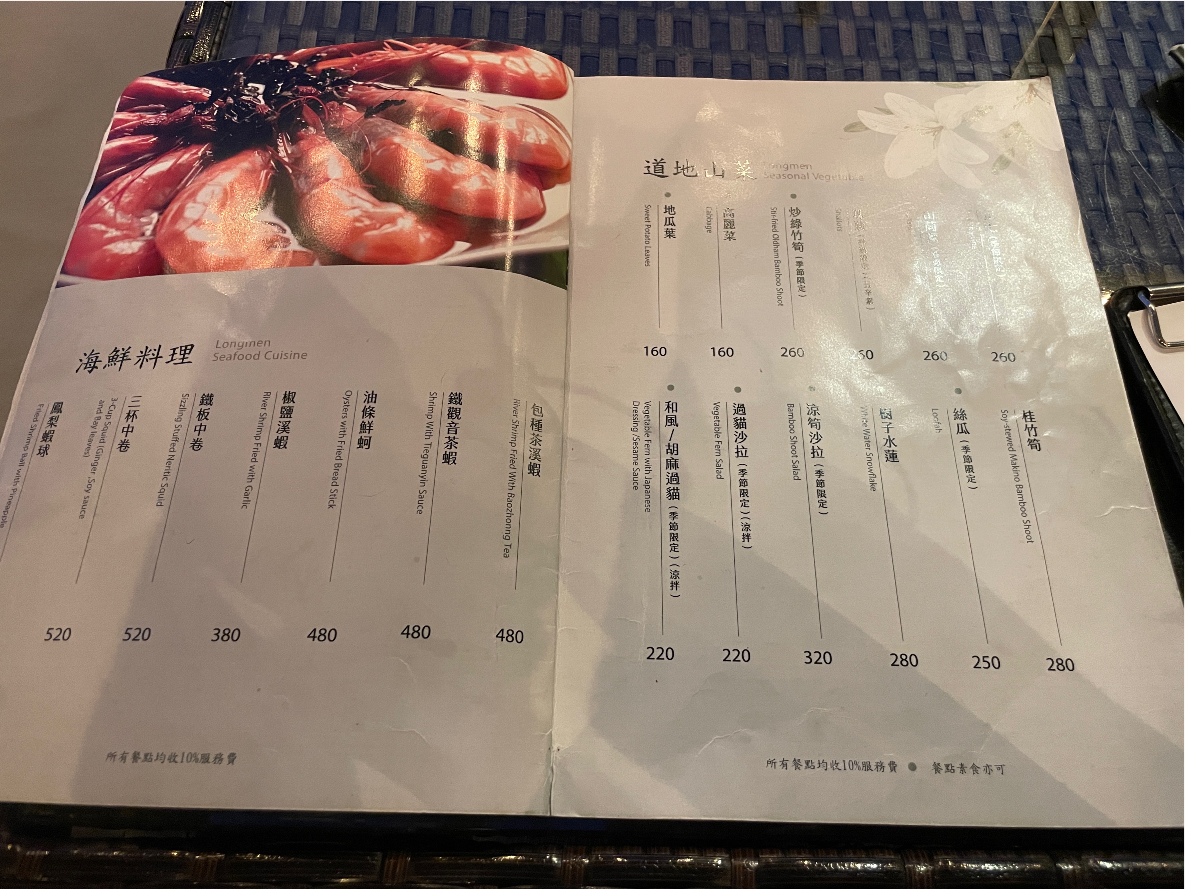 고기 메뉴 해산물 메뉴 대만식 요리 등등 다양하게 있고 특히 이곳은 차가 유명한 지역이기때문에 차(茶)를 이용한 메뉴가 다양하게 있습니다