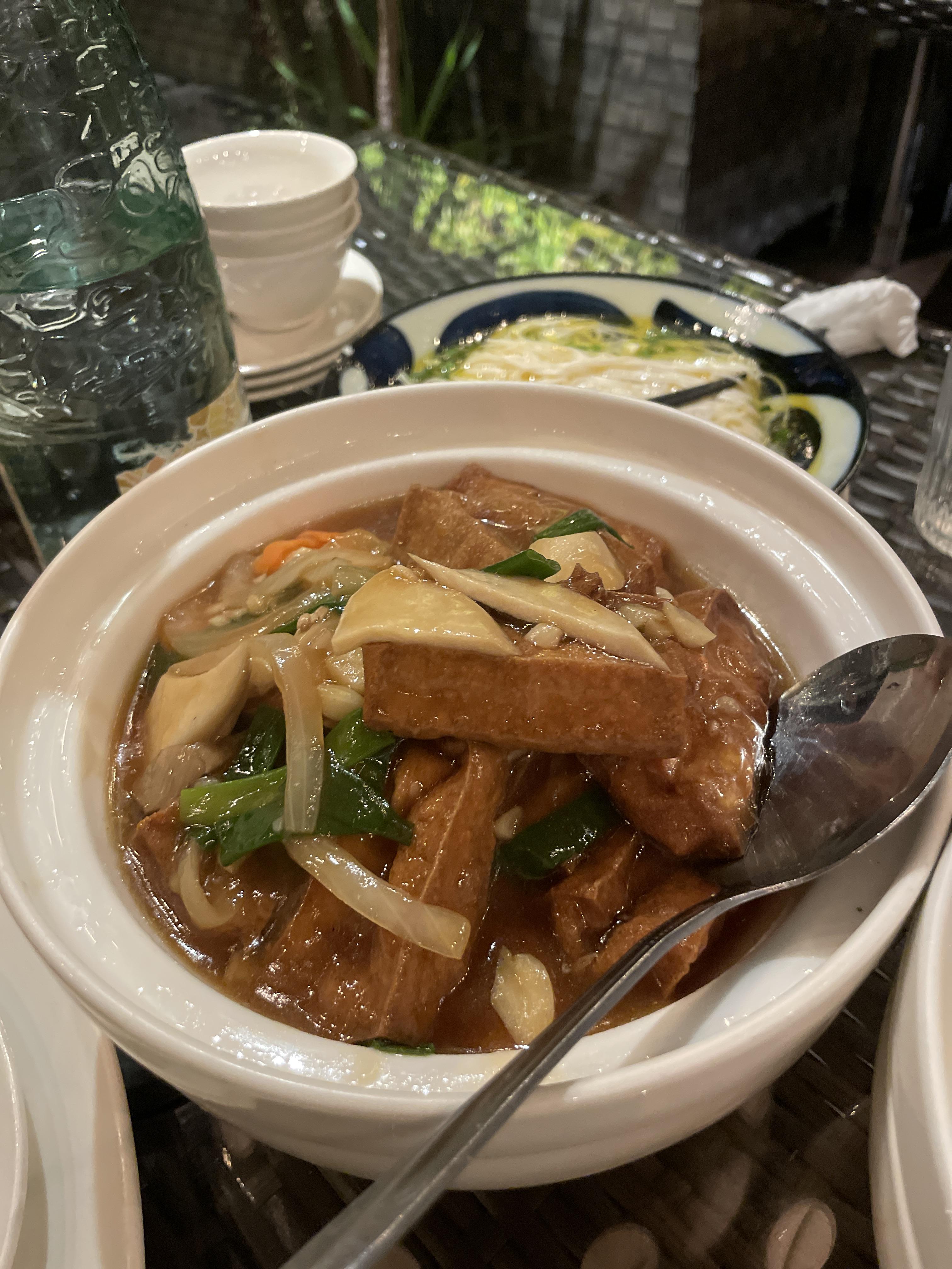 이거는 두부인데요 밑에 차가 깔려 있어요 맛이 독특하고 맛있어요 茶香豆腐