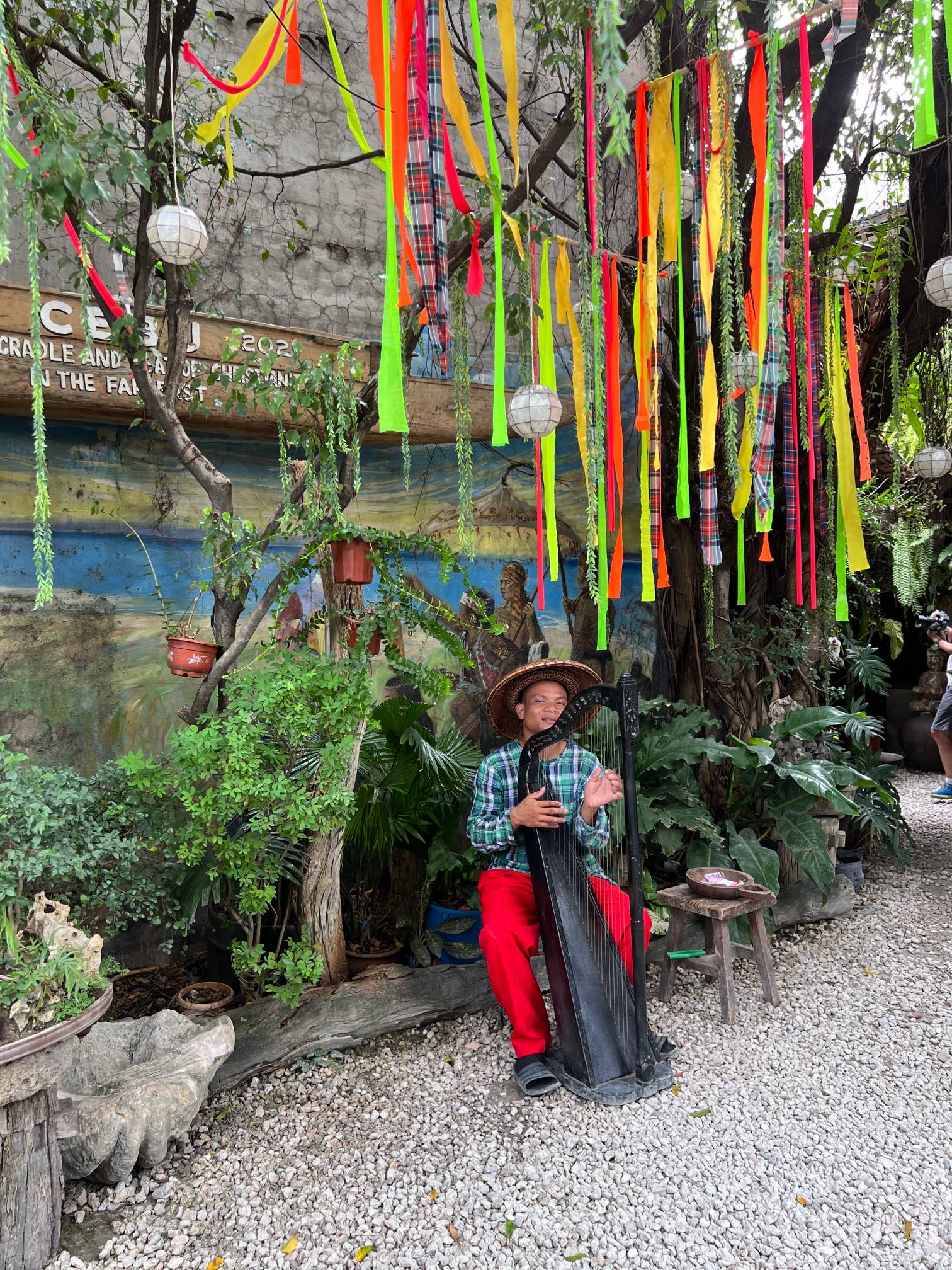뒷마당에서 아저씨가 하프를 연주하고 계셨다.