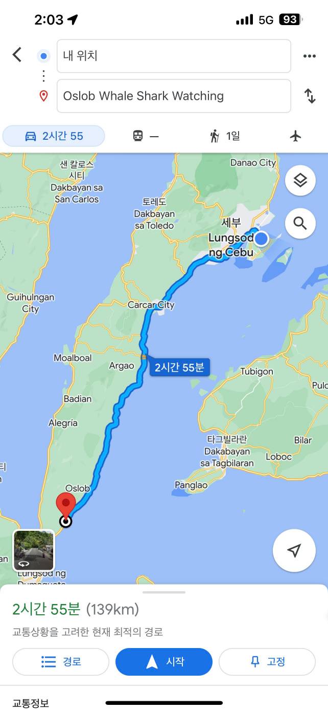 그래서 공항에서 새벽 2시 정도에 출발해서 새벽 5시 정도에 오슬롭에 도착해 고래상어 투어를 하는 게 일반적이다.