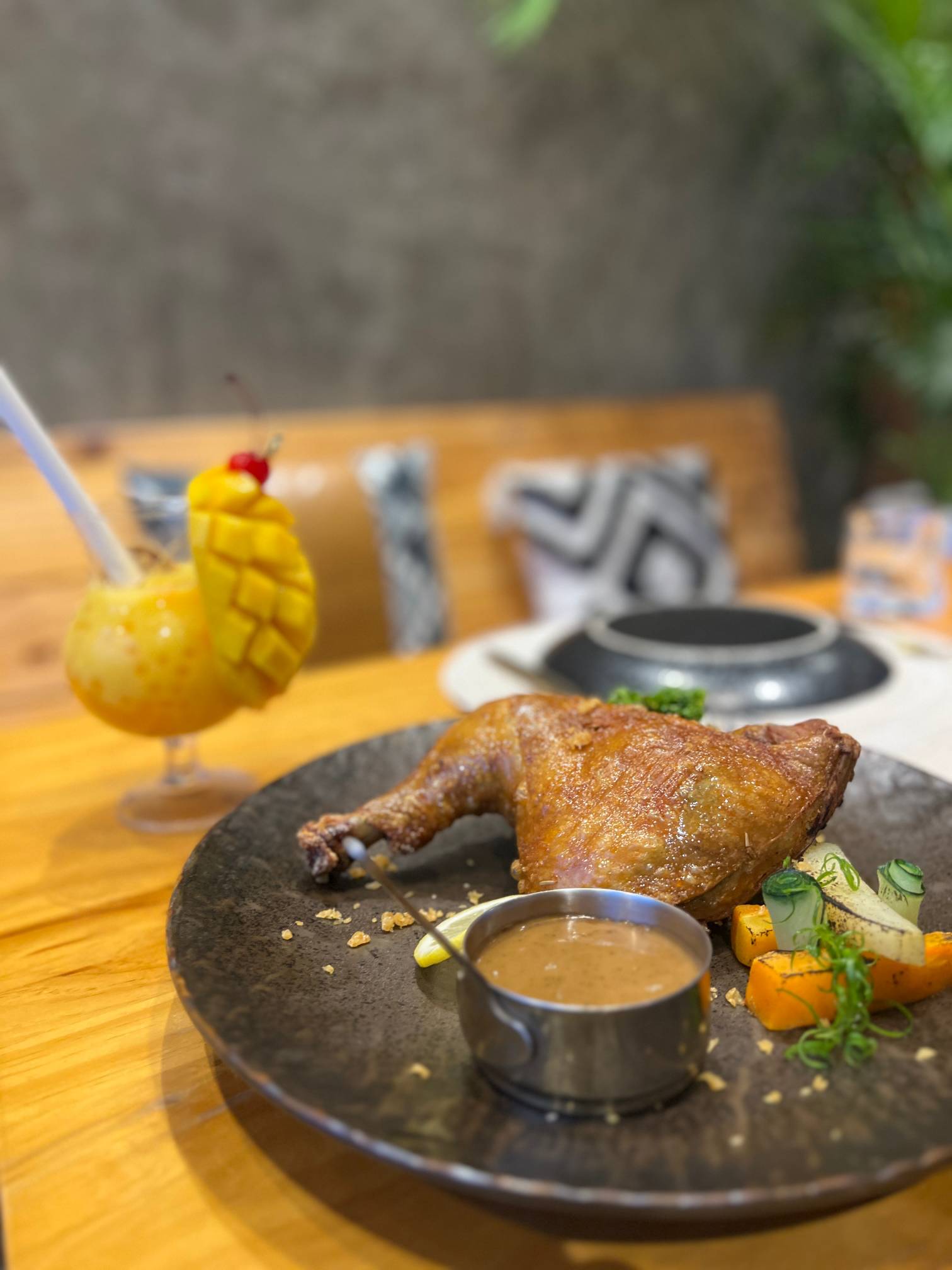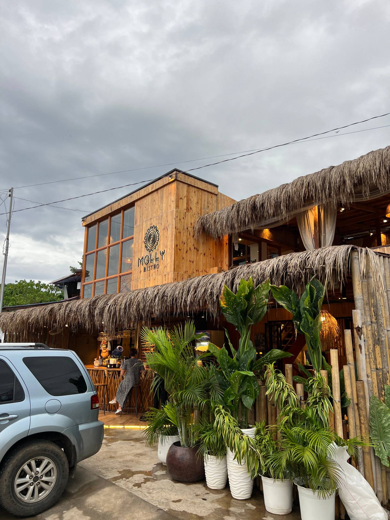 #몰리비스트로 : 세부에서 1시 배를 타고 보홀에 도착해서, 택시를 타고 호텔에 도착하니 약 5시 정도가 돼서 일단 빠르게 체크인을 하고 저녁을 먹으러 나갔다. 알로나비치 쪽에서 먹을까 하다가 일단 구글 평점 높은 곳으로 찾은 곳 중에 하나를 가보는 것도 괜찮은 것 같아서 검색해둔 곳으로 갔는데 결론은 매우 만족! 로스티드 치킨은 349페소, 파인애플 라이스 255페소, 피넛 소이 파스타 325페소로 가성비도 매우 훌룡했다. 여기 후기를 보니 대체로 돼지고기 요리는 비린내가 조금 심하다고 하는 것 같아서 다른 메뉴들로 시켰는데, 일단 파인애플 라이스 매우 맛있고, 로스티드 치킨을 곁들여서 먹으면 딱 잘 어울린다. 파스타는 솔직히 별로였고, 망고주스에 망고가 통째로 걸려 있어서 매우 맛있다.