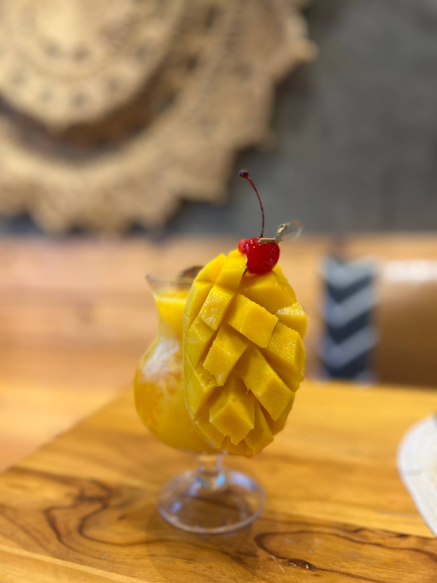 그냥 주스만 나오는 게 아니라 저런 식으로 망고를 하나 통으로 준다.