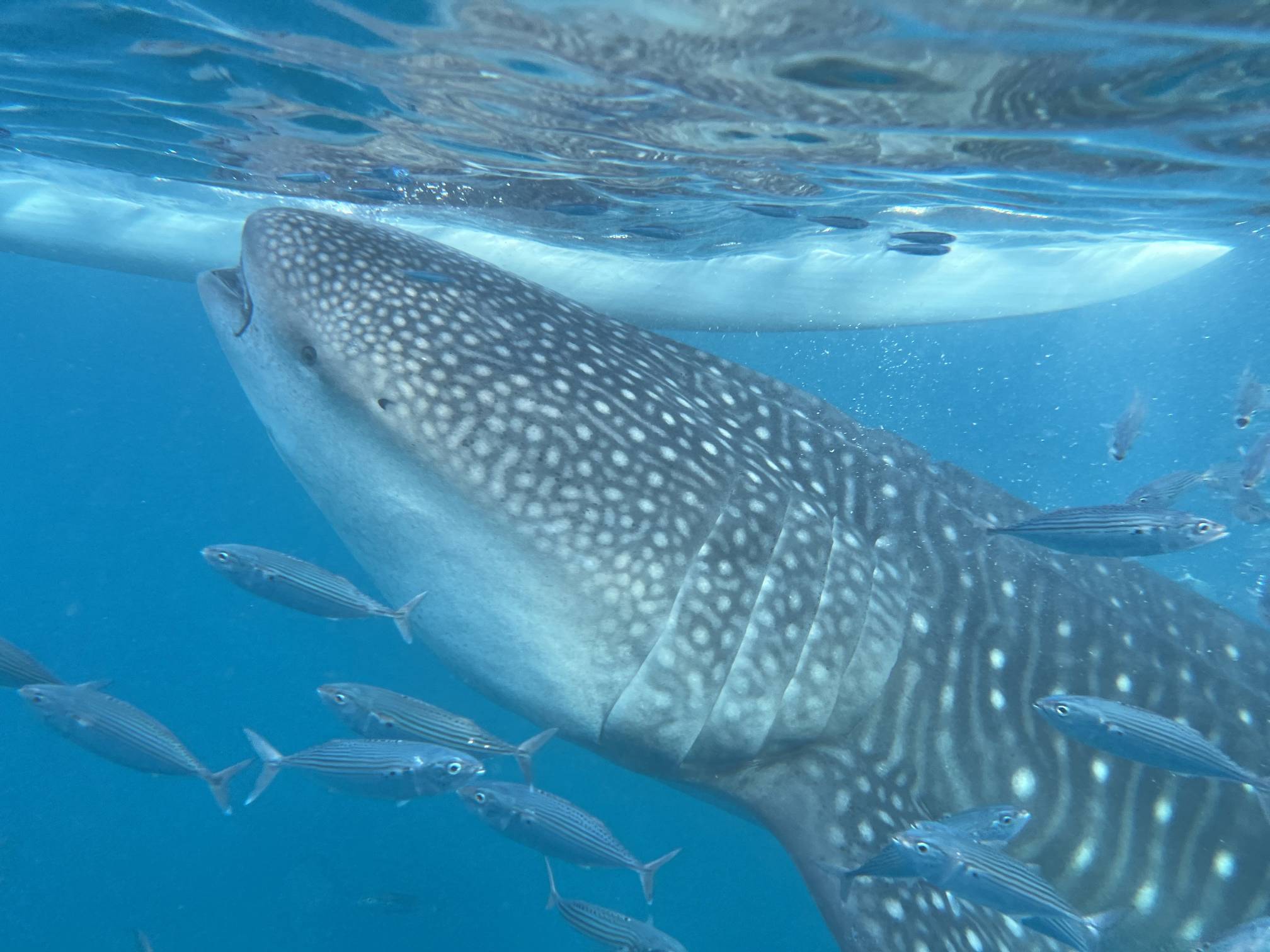 그렇게 바다로 들어가면 이런 고래상어가 바로 눈앞에서 헤엄치는 걸 볼 수 있다.
