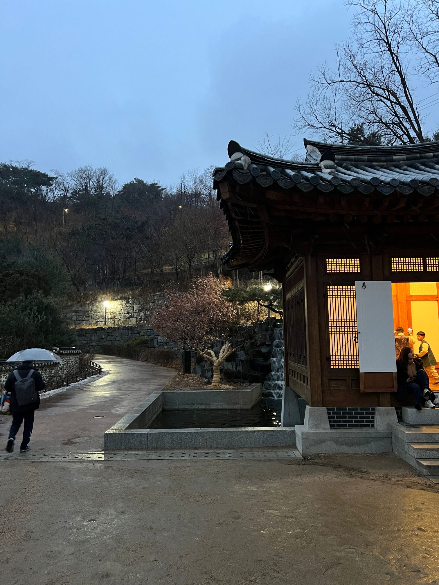 살짝 눈비가 내리는 날이었는데 뭔가 운치가 좋았다.