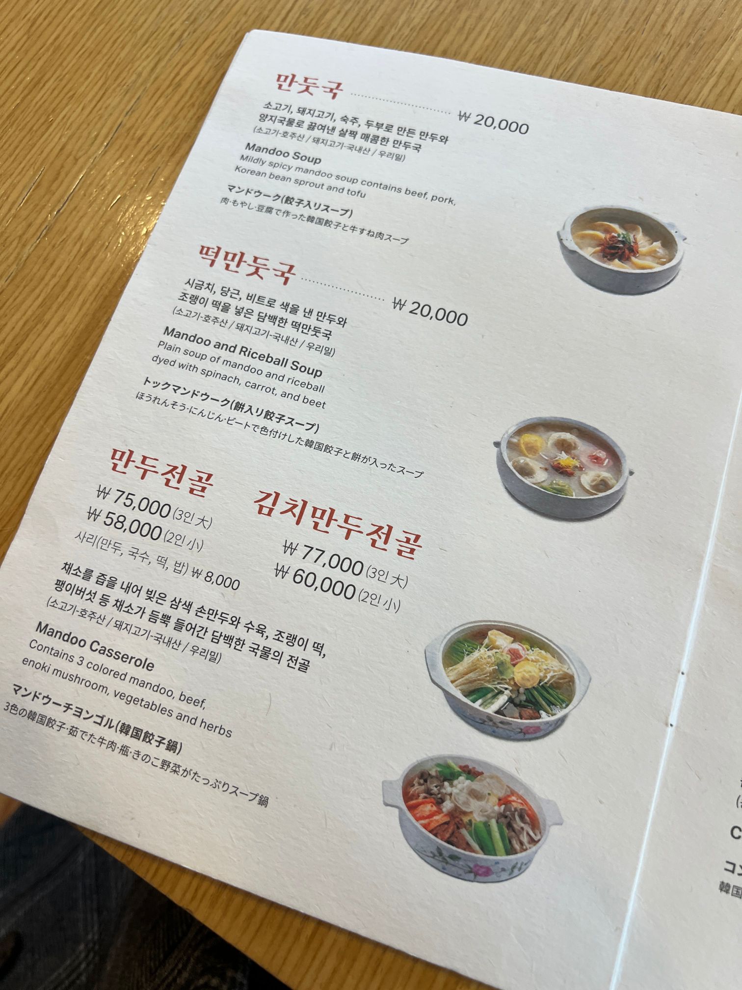 가격은 좀 비싼 편이다. 만둣국 한 그릇에 2만원.