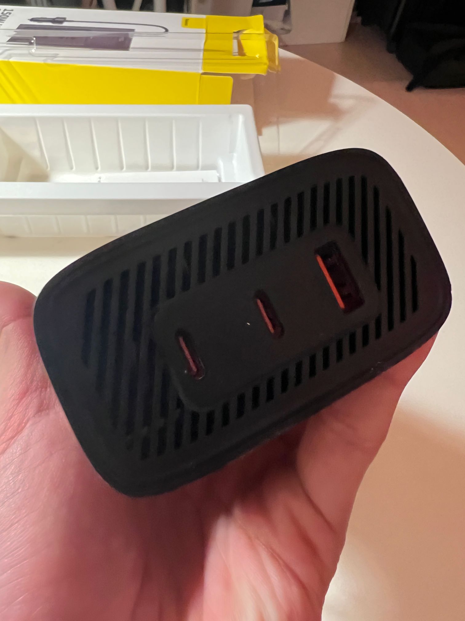 옆면에는 usb-c 타입포트가 2개가 있고, usb포트가 하나가 있다.