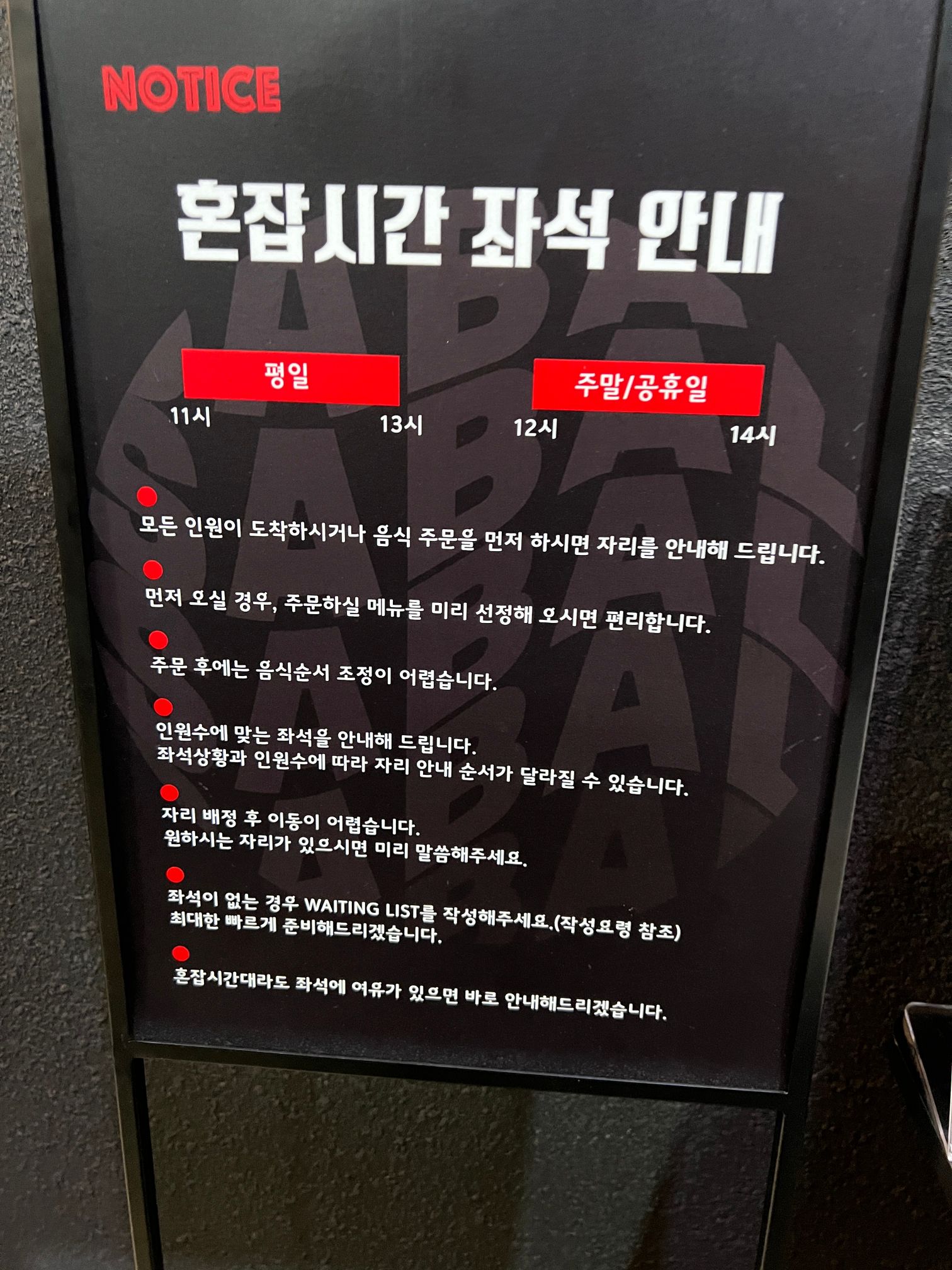 바로 앞에 웨이팅 리스트 적는 노트가 있으니 도착하면 웨이팅 리스트를 적고 대기하면 된다.