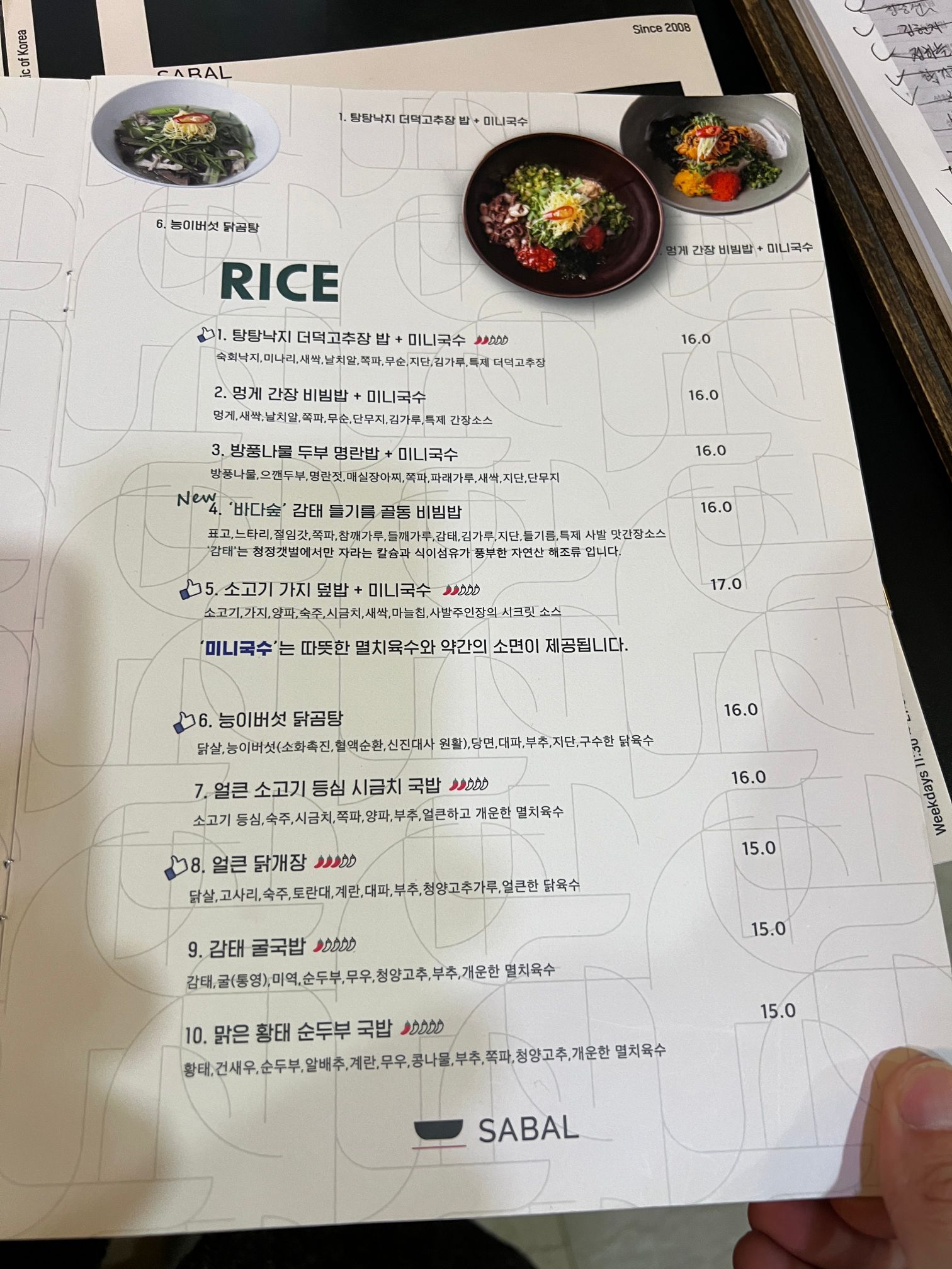 면요리도 있고 뭐 여러가지 메뉴가 있는데 개인적으로는 이렇게 밥으로 된 식사에 미니국수를 껴주는 메뉴가 제일 괜찮은 것 같다. 가격은 16,000원.