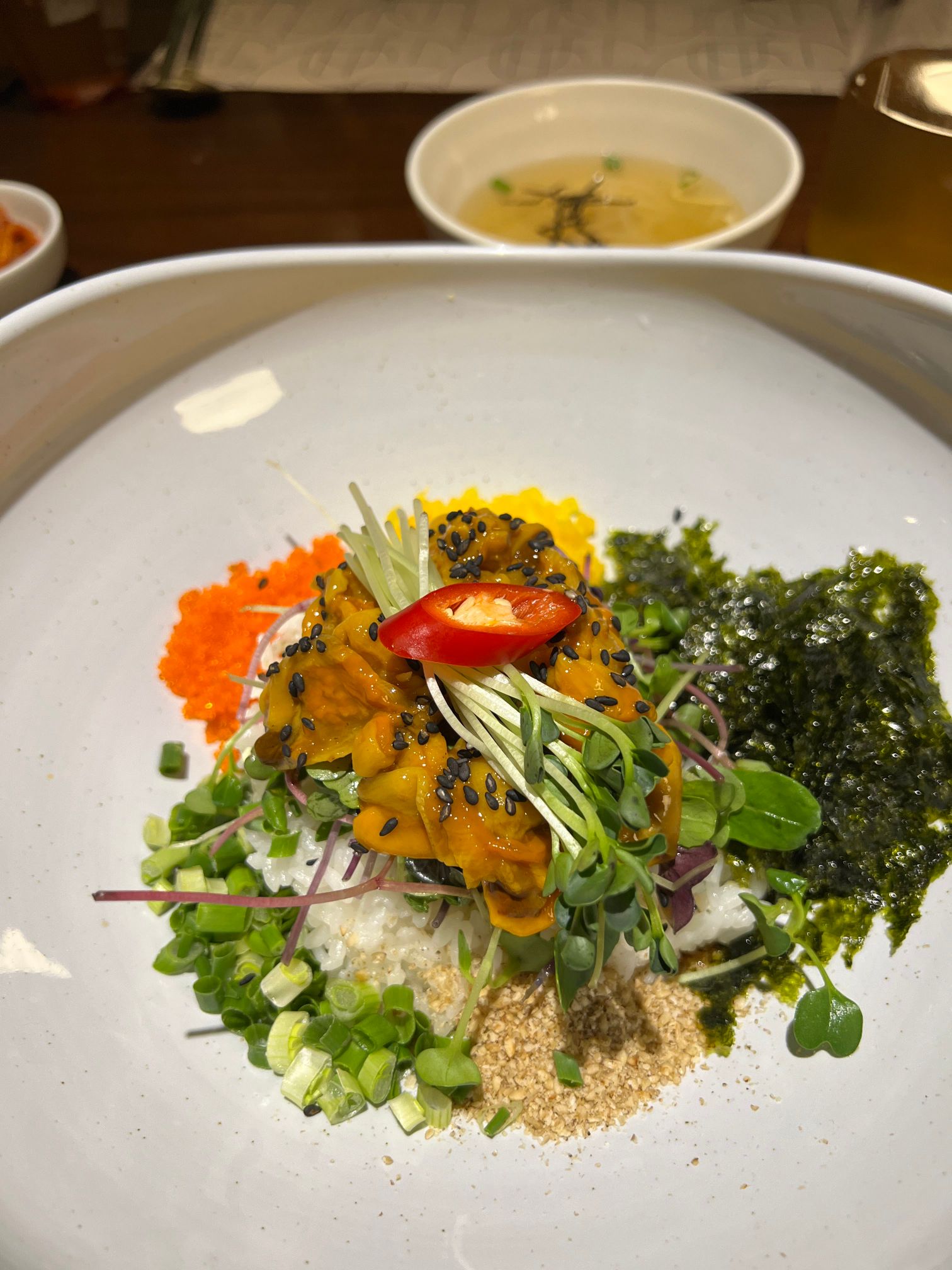 나는 멍게 간장 비빔밥을 시켰는데 개인적으로 여기서 먹어본 메뉴 중에 제일 괜찮은 메뉴인 것 같다.