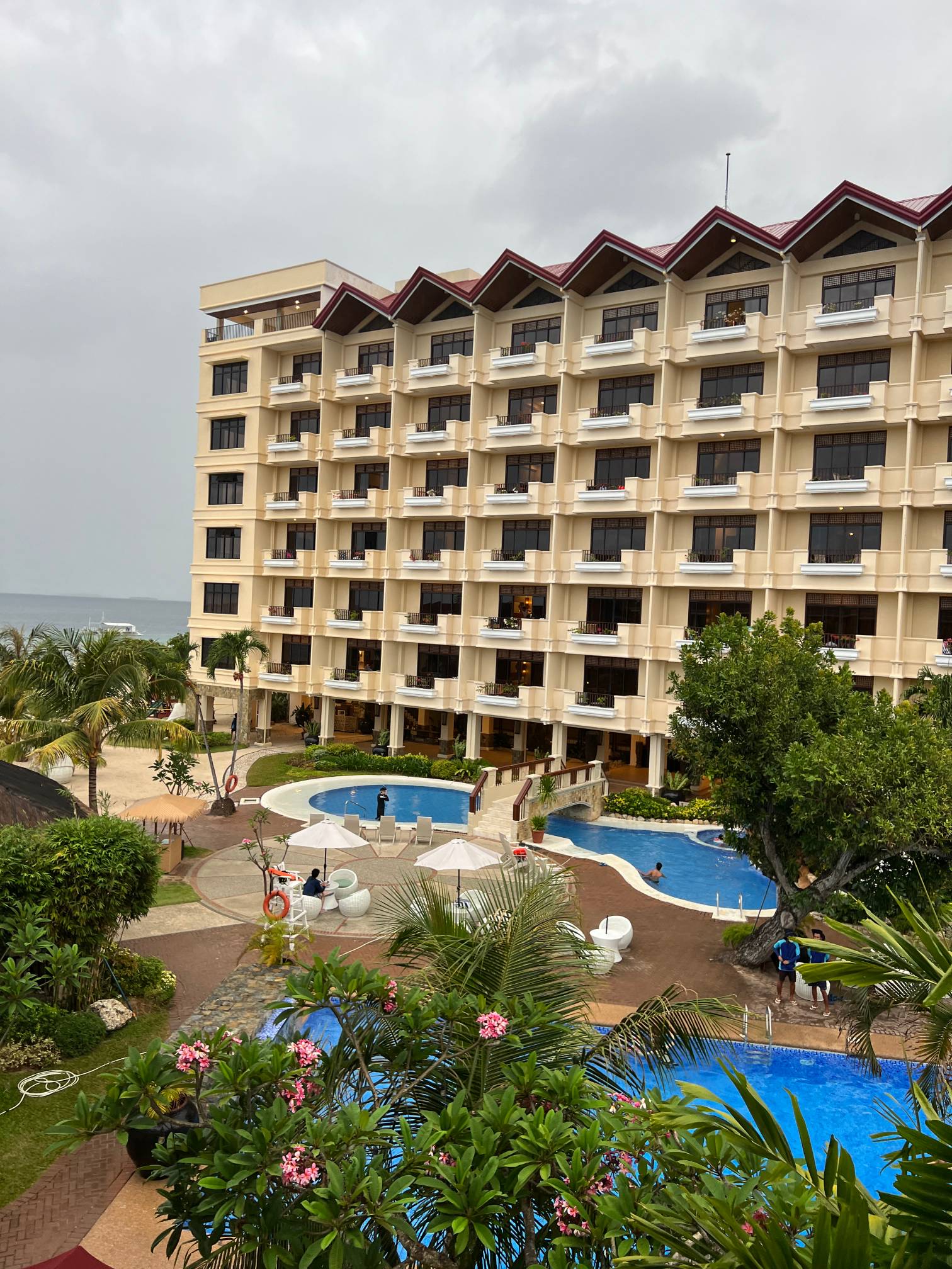 아고다에서 예약했고 조식 포함 12만원 정도였는데, 막상 가보니 방 뷰가 너무 안 좋아서 1000페소 추가금을 내고 수영장과 바다가 보이는 '디럭스 발코니' 방으로 바꿨다. 뭐 솔직히 방 내부는 그게 그거인데 그래도 오며가며 수영장이랑 바다뷰를 볼 수 있어서 만족스러웠다.