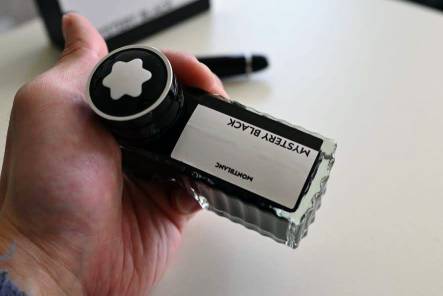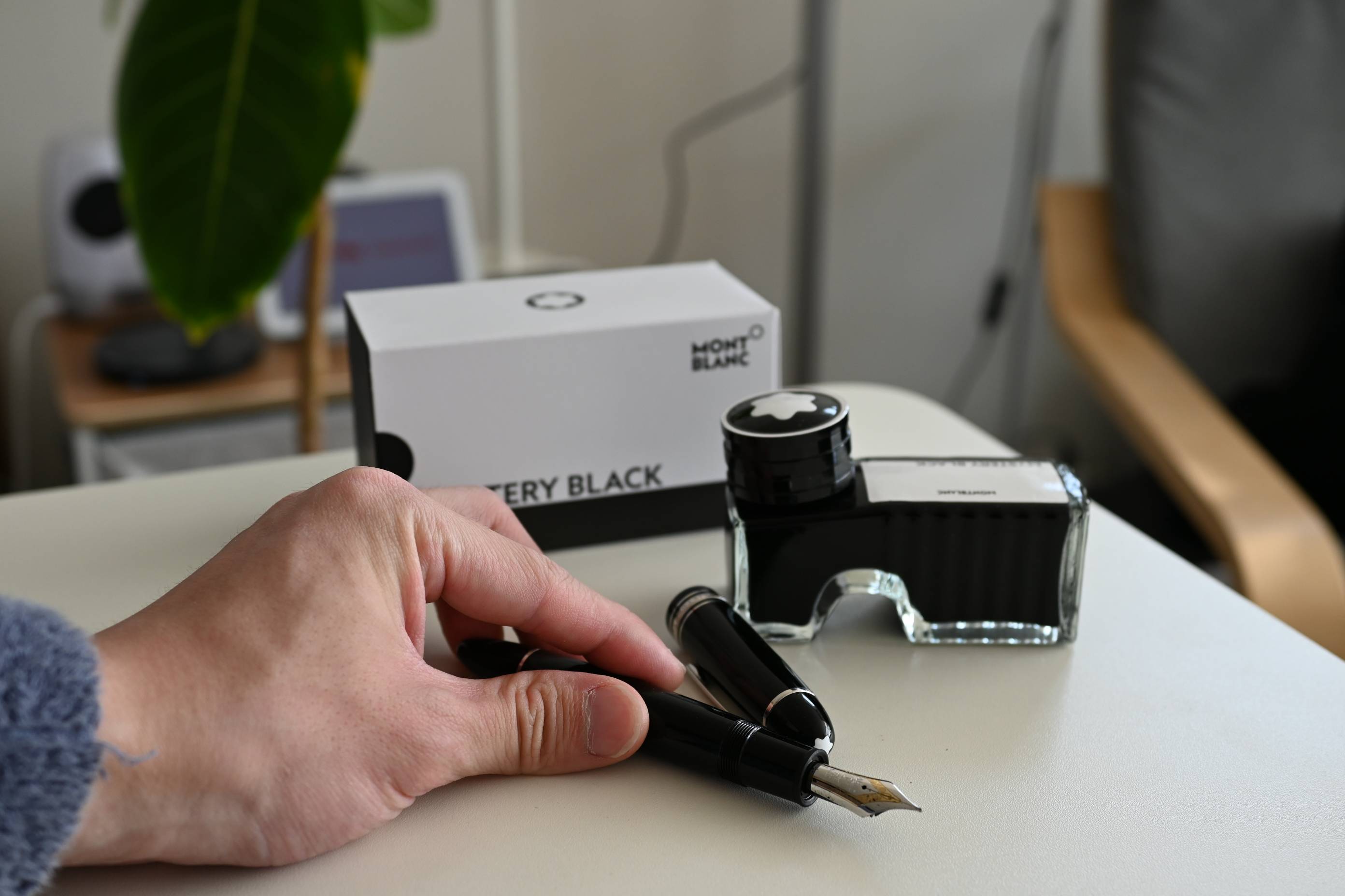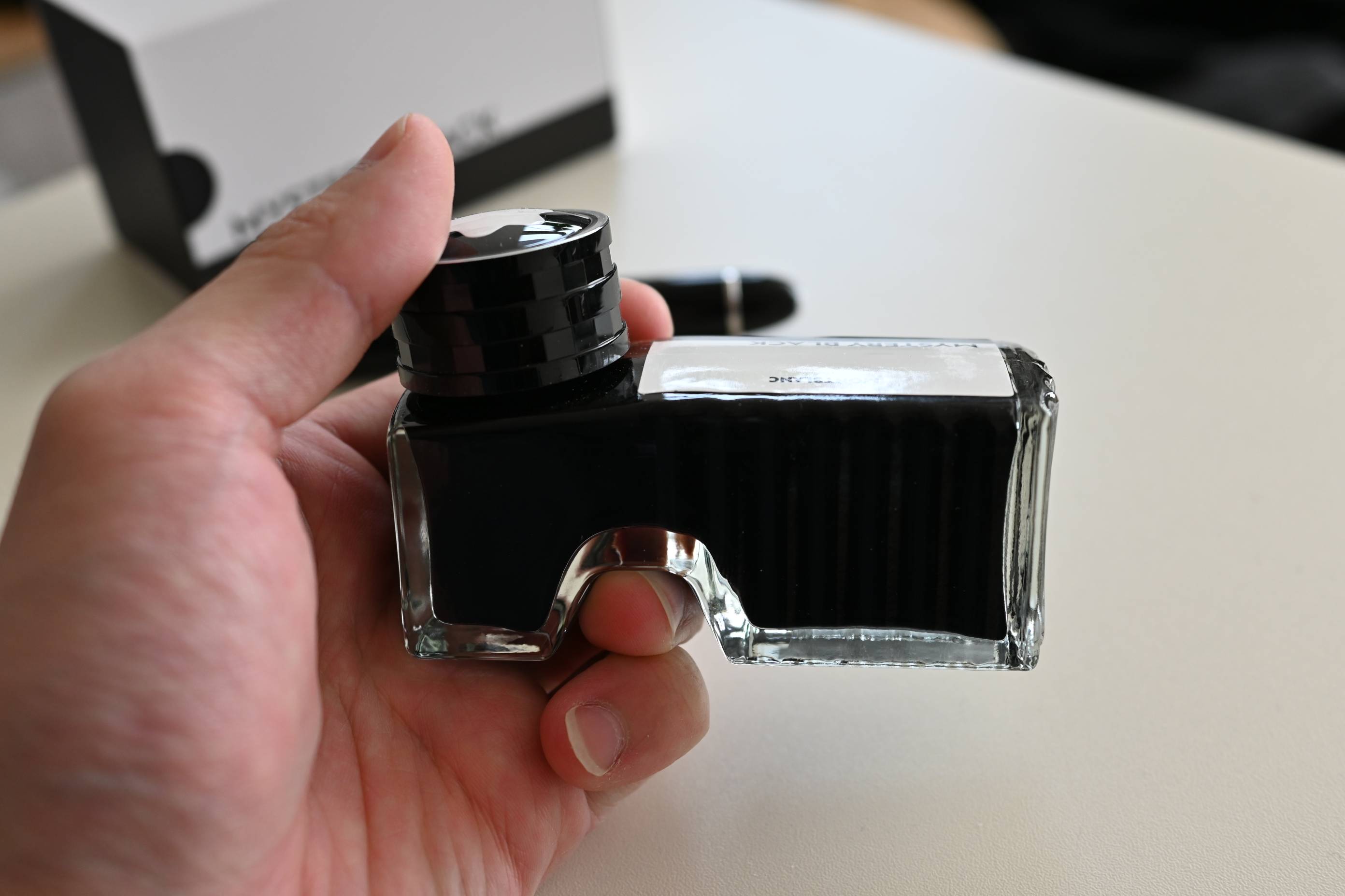 몽블랑 병잉크는 이런 식으로 디자인 되어 있는데 한쪽이 저렇게 뭉툭하게 파여 있는 구조라서 잉크가 많이 남지 않았을 때에도 편리하게 충전을 할 수 있다.