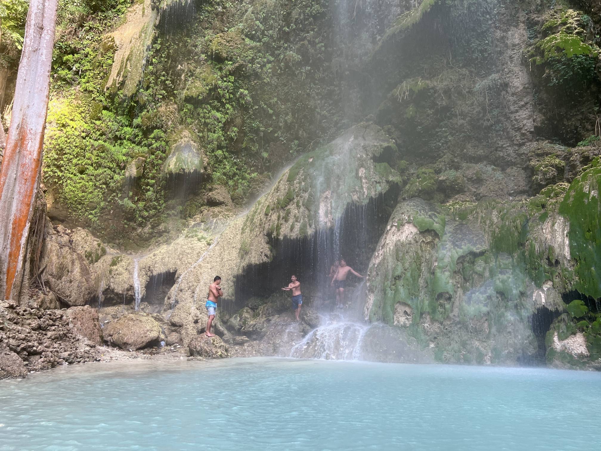 #투말록폭포 : 고래상어를 보고 다음 일정은 아바타 촬영지로 유명한 ‘투말록폭포’라는 곳이다. 이전까지는 아무도 모르고 있던 곳이었다가 아바타 촬영팀이 처음 발견해서 지금은 관광지로 개발된 곳이라고 한다. 폭포 입구쪽으로 가면 오토바이로 폭포까지 실어다주는 사람들이 있는데, 투어로 신청하면 이것까지 다 포함이라서 편하게 스쿠터를 타고 이동하면 된다. 폭포에서 수영 하면서 사진 찍고, 아래쪽에 닥터피쉬 있는 곳이 있는데 거기서 발좀 담그고 쉬다가 이동하면 된다. 내가 신청한 투어에서는 여기 투말록폭포 일정까지 끝나고 식당으로 이동해서 컵라면이랑 바나나를 간식으로 제공해줘서 중간에 간식을 먹었다.