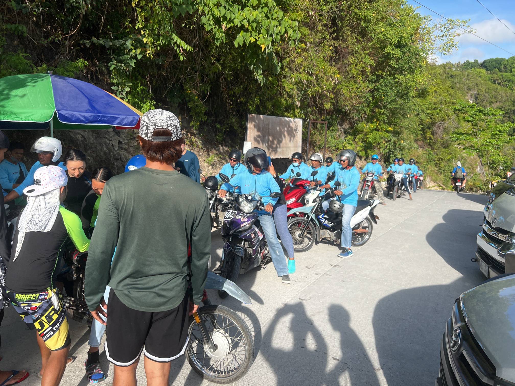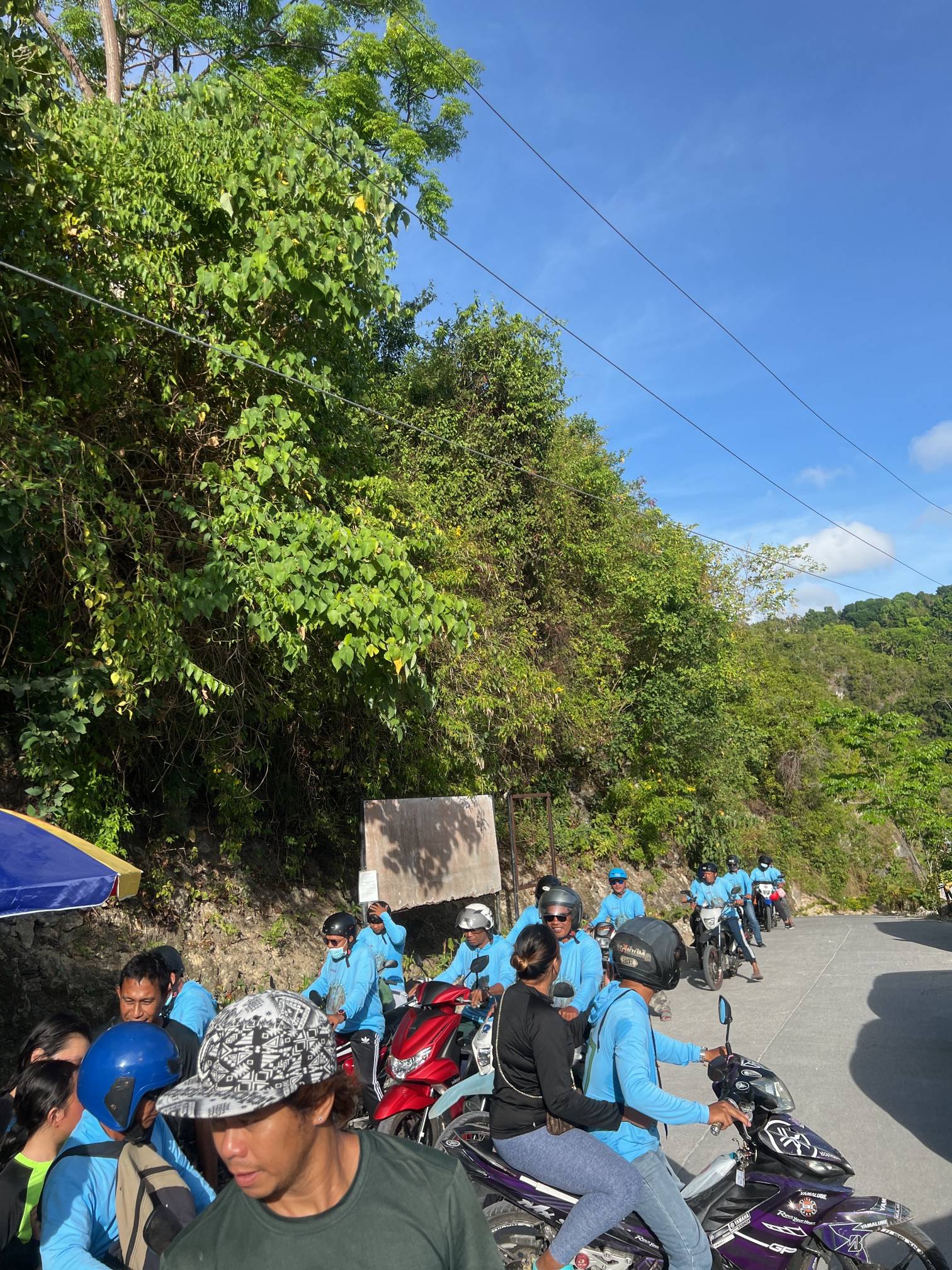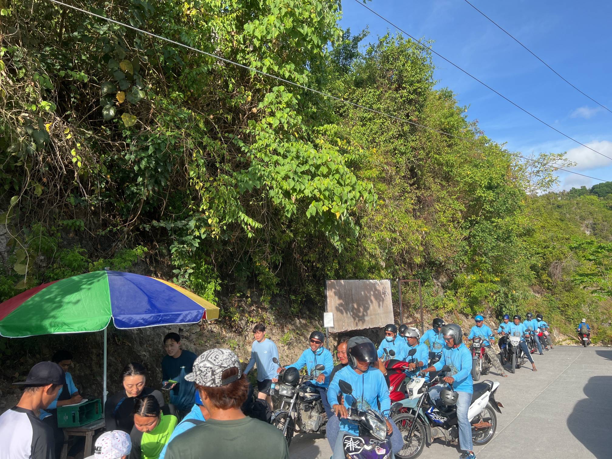 이 하늘색 옷 입으신 분들이 한명 한명 오토바이로 실어서 날라주신다.