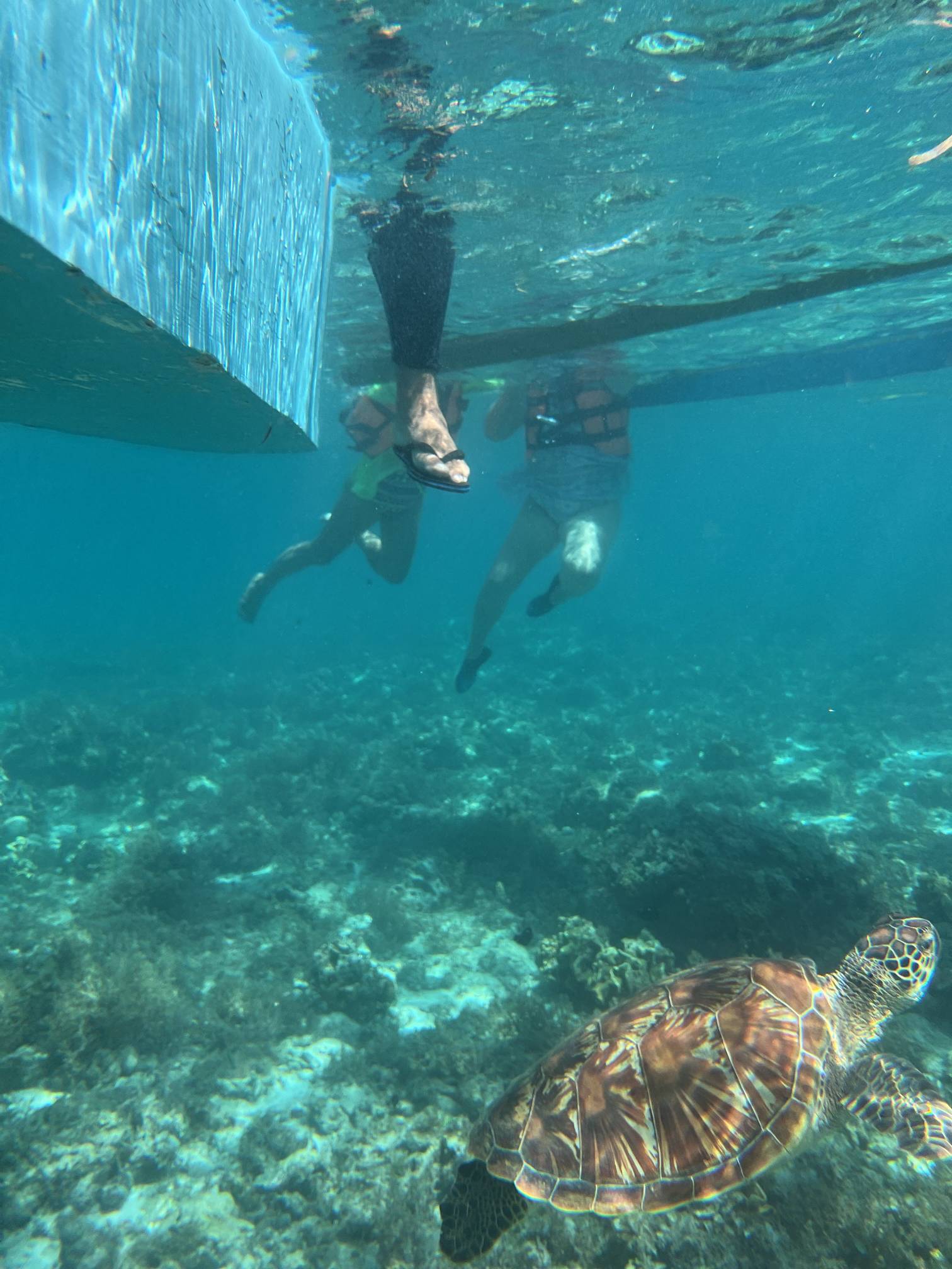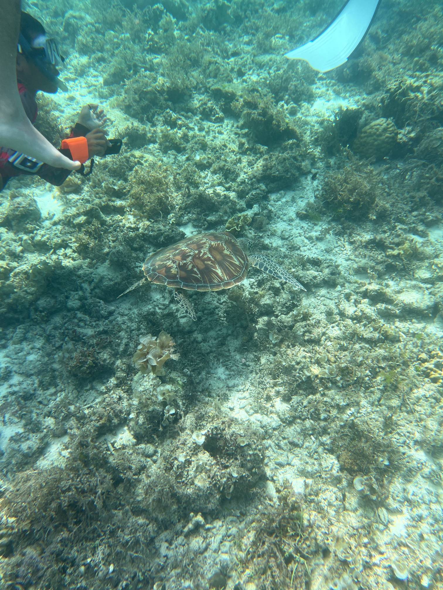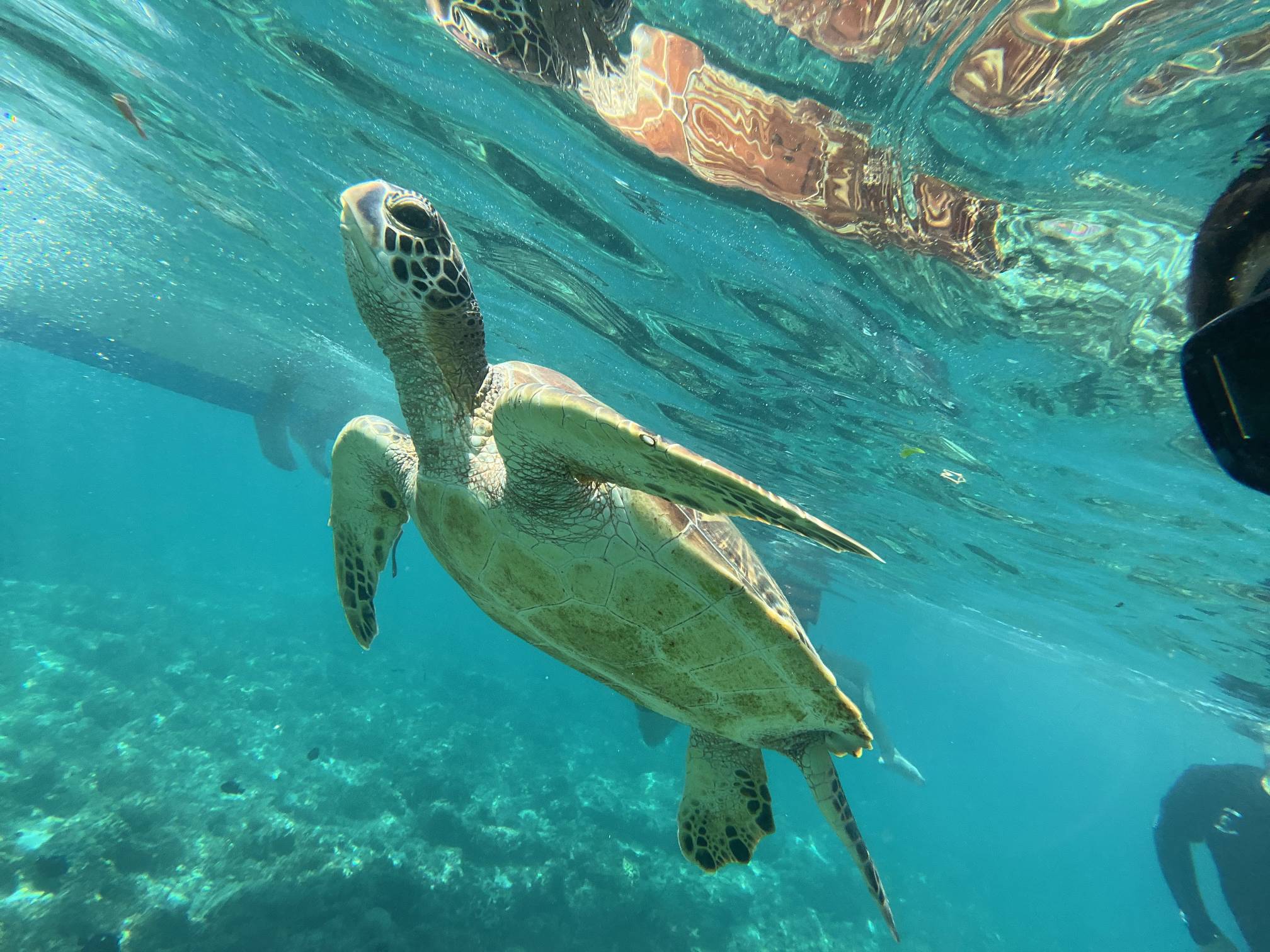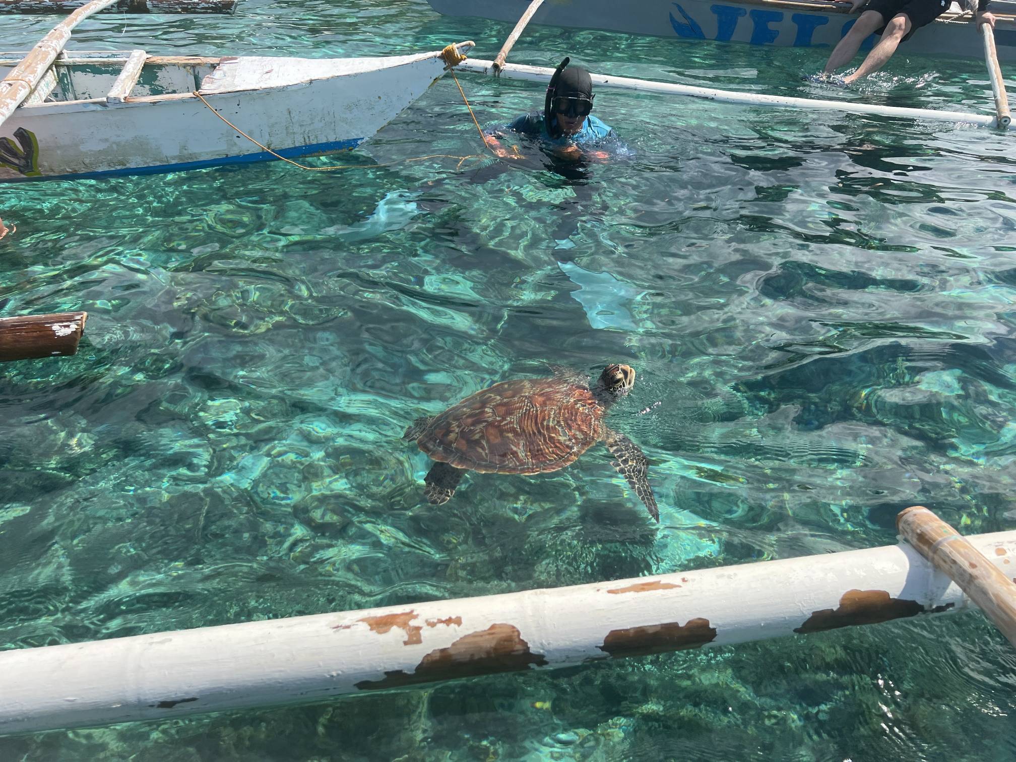 첫번째 스팟에서는 물고기들을 보고, 두번째 스팟으로 이동해서 거북이를 보는데 거북이는 진짜… 환상적이다. 크기도 엄청나게 큰데 귀엽기도 하고 몽환적이기도 하고 진짜 너무 멋지다. 세부에서는 고래상어를 바로 앞에서 볼 수 있다면, 보홀에서는 거북이를 진짜 바로 앞에서 볼 수 있고 잠영을 조금만 할 줄 알면 거북이랑 셀카도 찍을 수 있다. 사람들이 바글거리면서 거북이 구경하는 게 거북이한테 좀 미안하기는 하지만 암튼 보홀에서는 이 거북이는 진짜 무조건 봐야 한다.