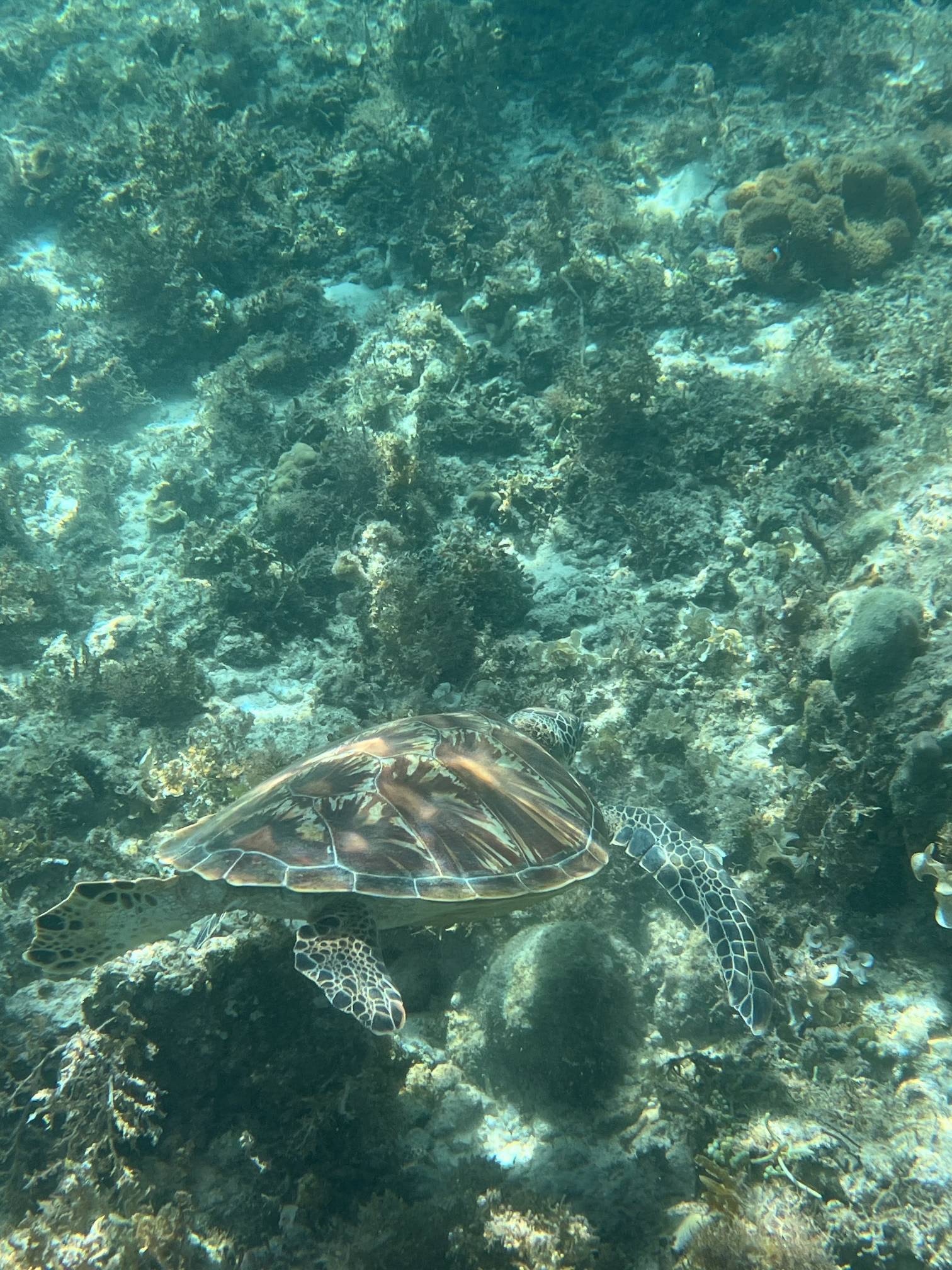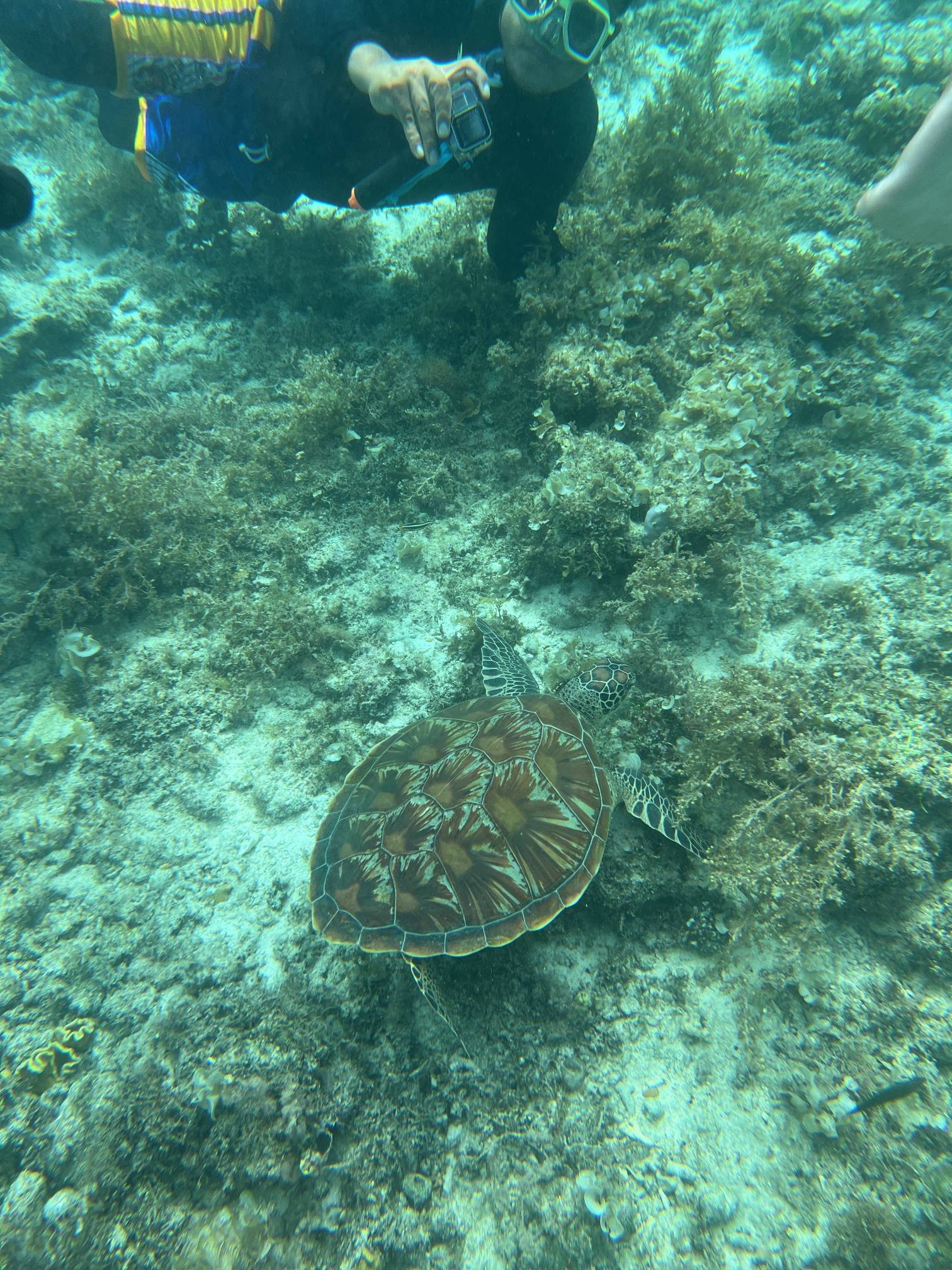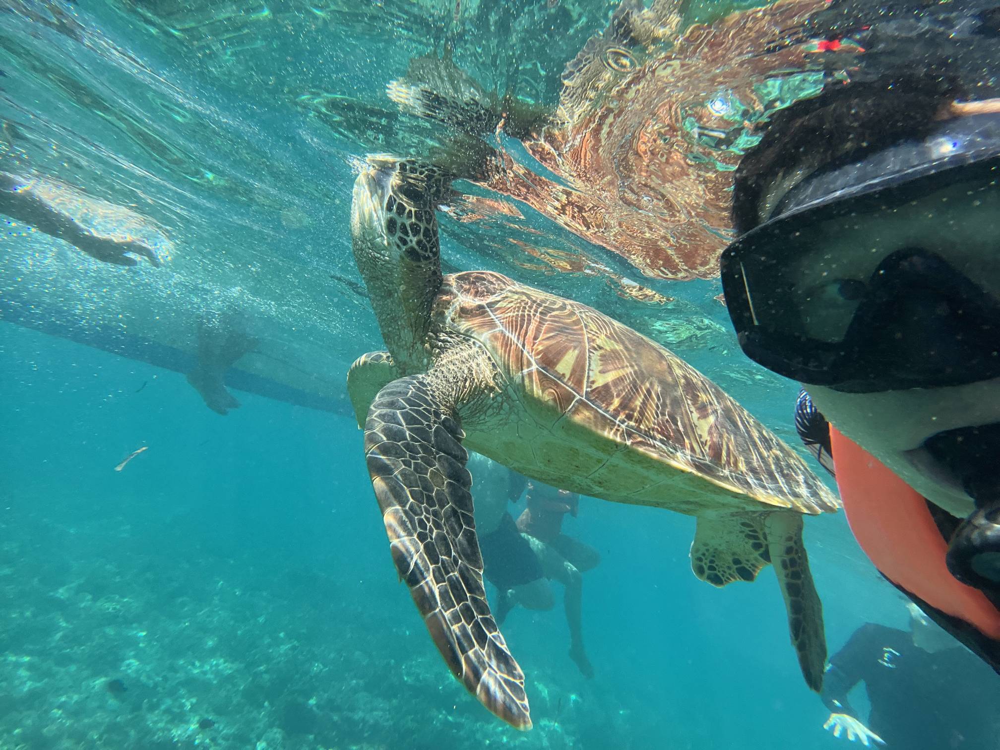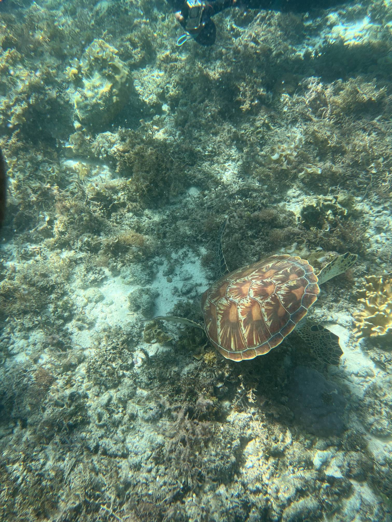 첫번째 스팟에서는 물고기들을 보고, 두번째 스팟으로 이동해서 거북이를 보는데 거북이는 진짜… 환상적이다. 크기도 엄청나게 큰데 귀엽기도 하고 몽환적이기도 하고 진짜 너무 멋지다. 세부에서는 고래상어를 바로 앞에서 볼 수 있다면, 보홀에서는 거북이를 진짜 바로 앞에서 볼 수 있고 잠영을 조금만 할 줄 알면 거북이랑 셀카도 찍을 수 있다. 사람들이 바글거리면서 거북이 구경하는 게 거북이한테 좀 미안하기는 하지만 암튼 보홀에서는 이 거북이는 진짜 무조건 봐야 한다.