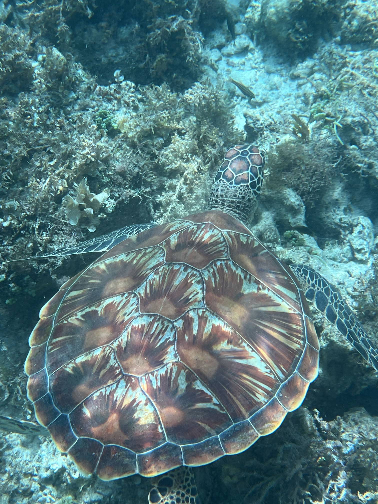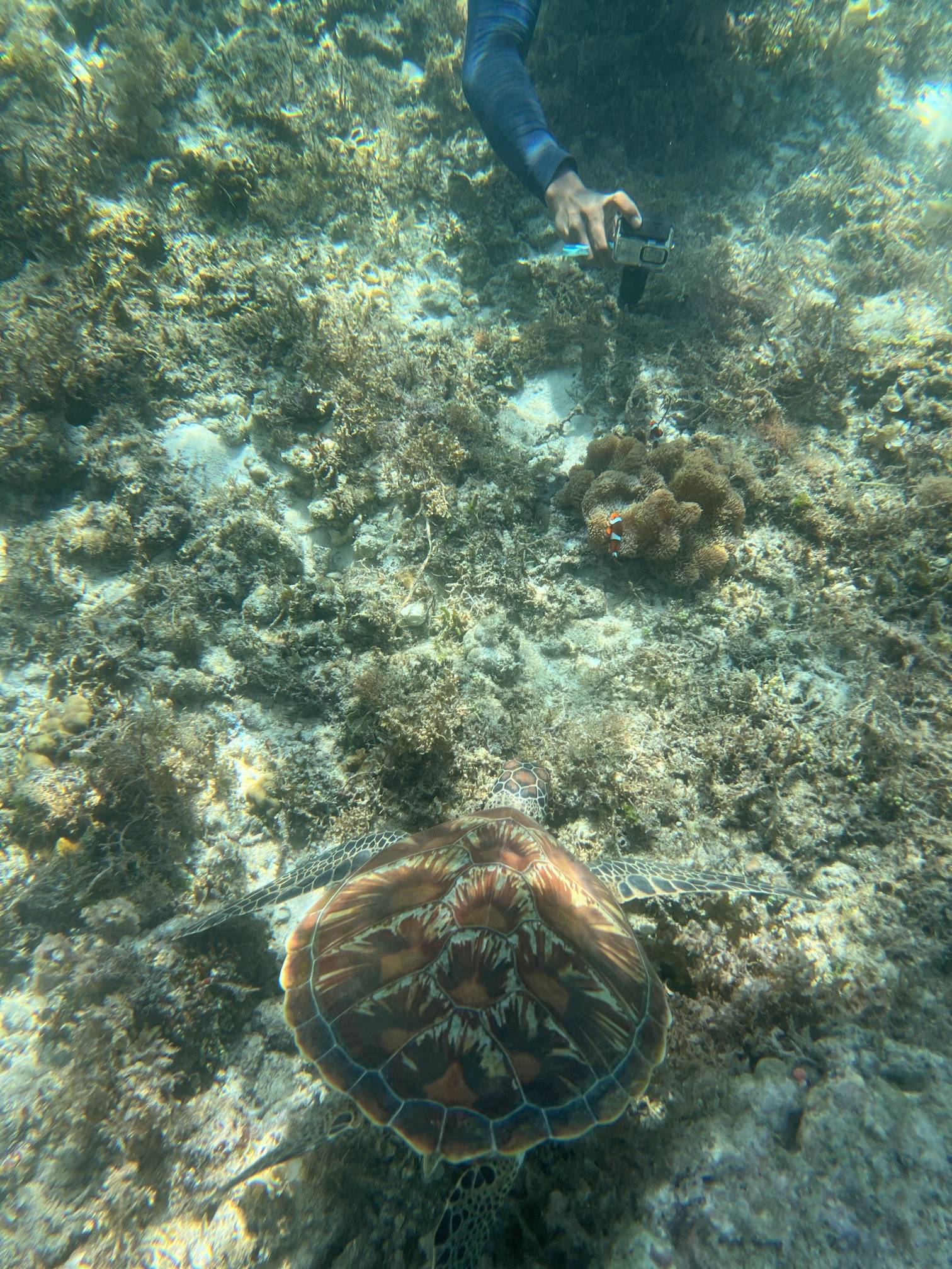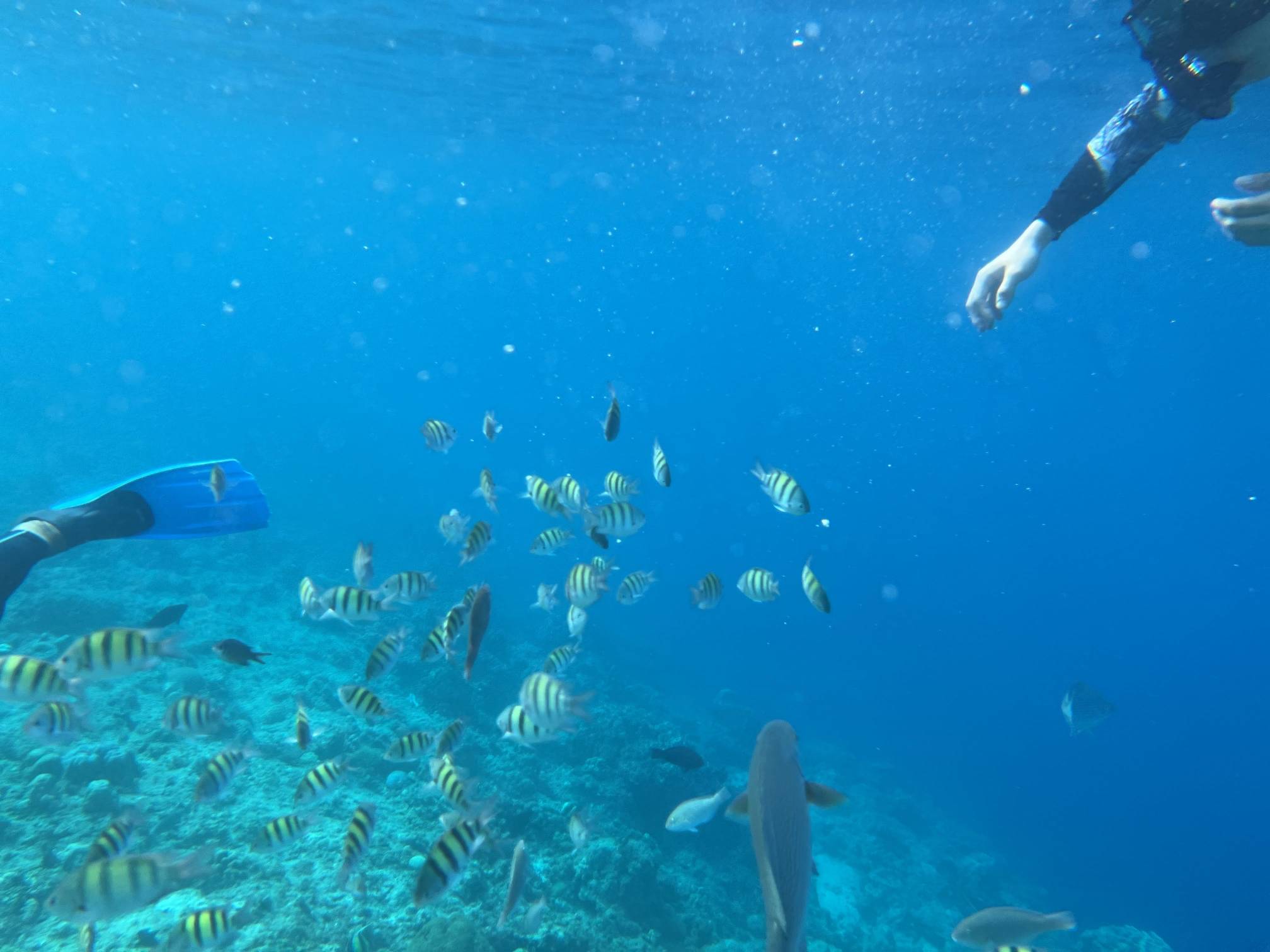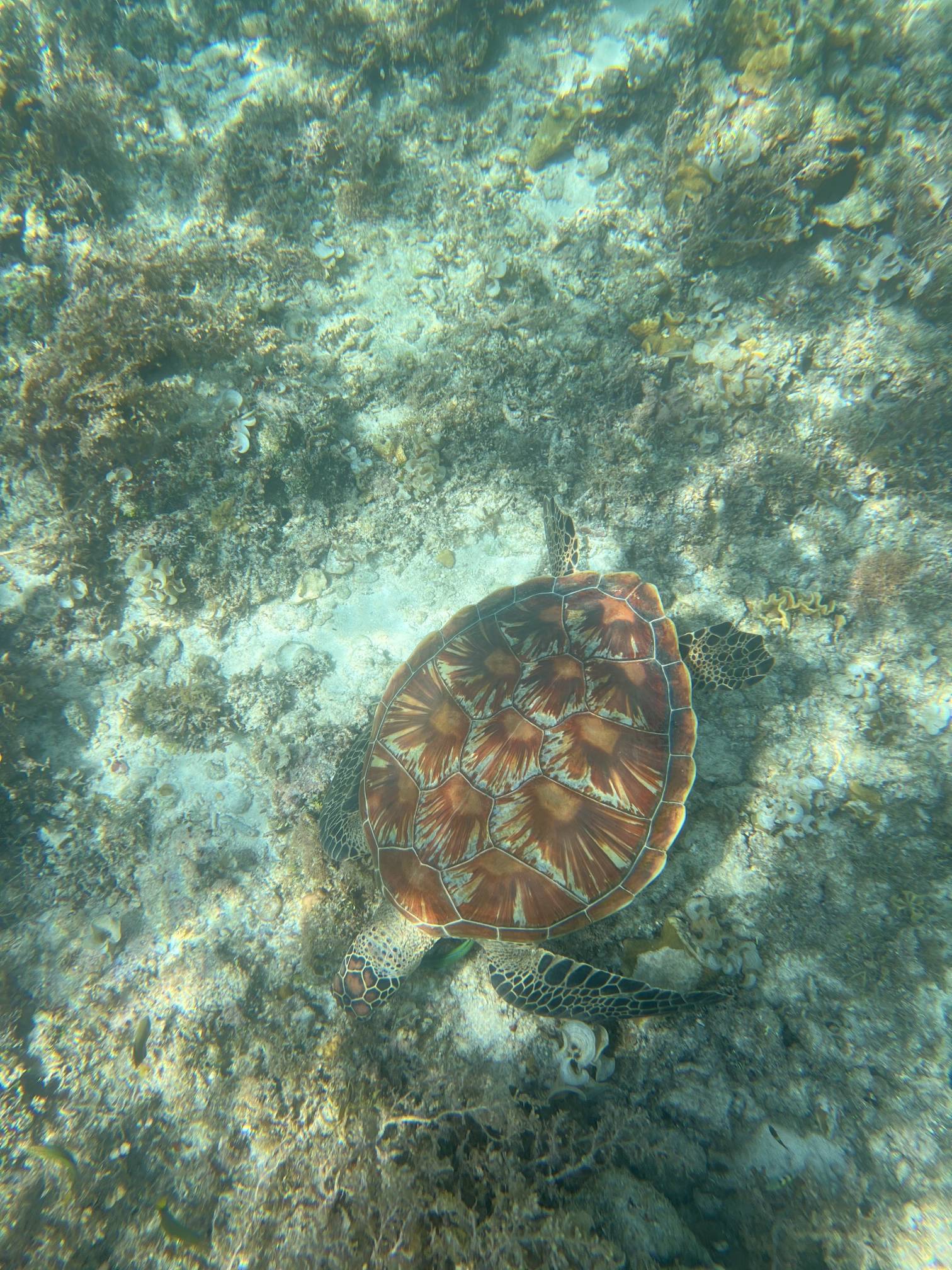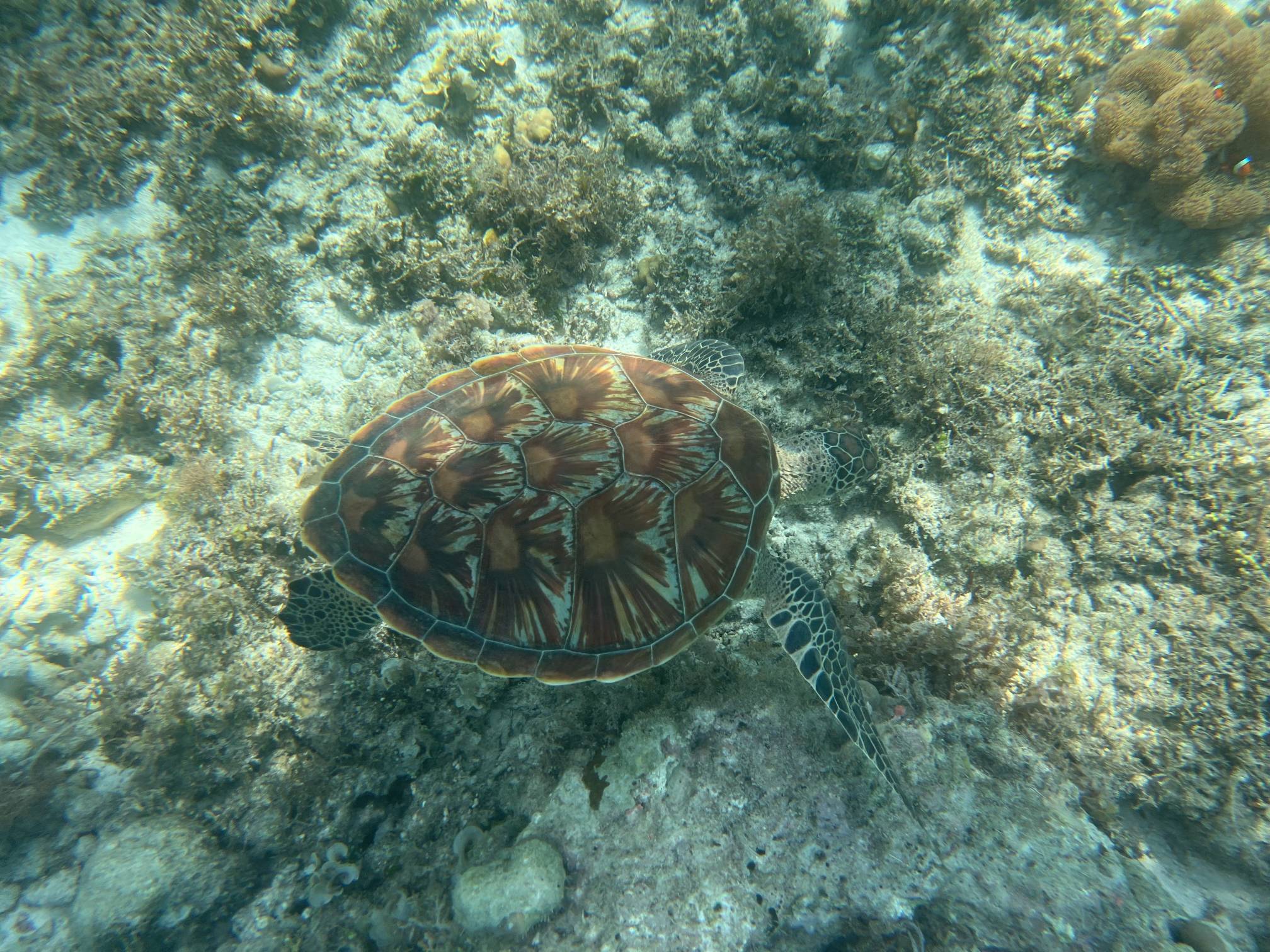 첫번째 스팟에서는 물고기들을 보고, 두번째 스팟으로 이동해서 거북이를 보는데 거북이는 진짜… 환상적이다. 크기도 엄청나게 큰데 귀엽기도 하고 몽환적이기도 하고 진짜 너무 멋지다. 세부에서는 고래상어를 바로 앞에서 볼 수 있다면, 보홀에서는 거북이를 진짜 바로 앞에서 볼 수 있고 잠영을 조금만 할 줄 알면 거북이랑 셀카도 찍을 수 있다. 사람들이 바글거리면서 거북이 구경하는 게 거북이한테 좀 미안하기는 하지만 암튼 보홀에서는 이 거북이는 진짜 무조건 봐야 한다.