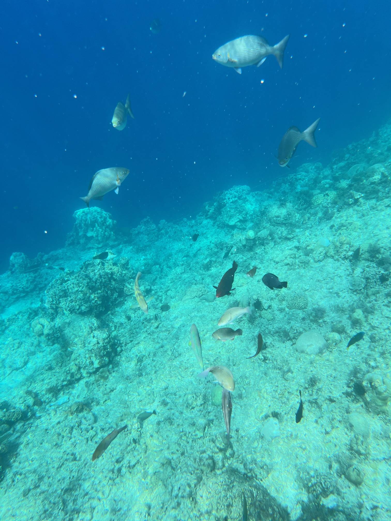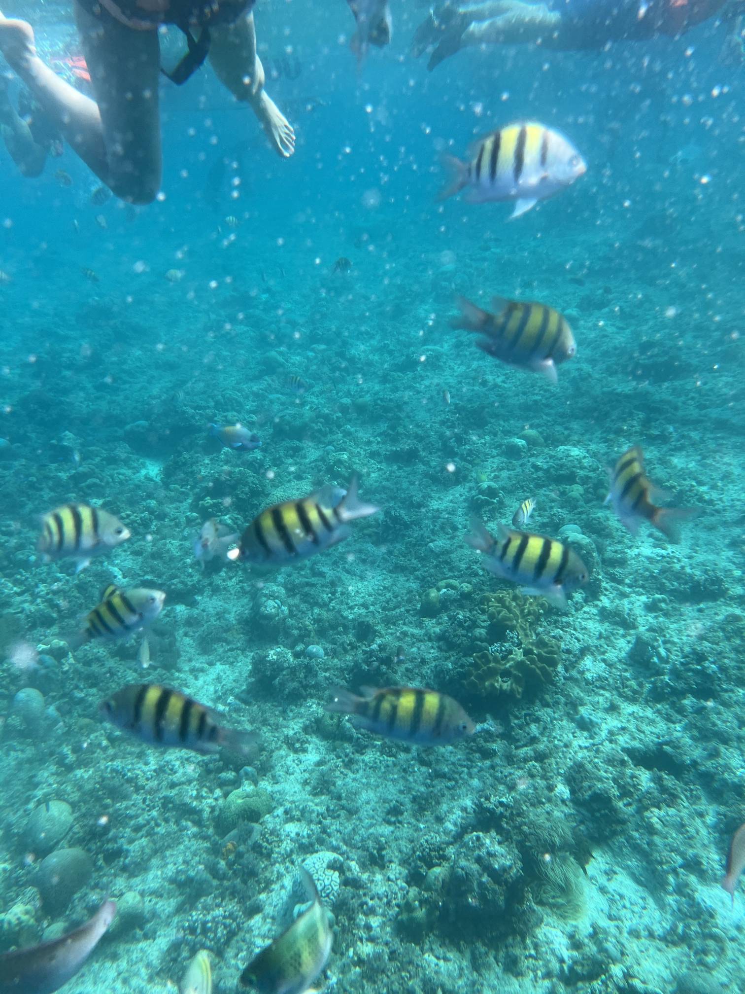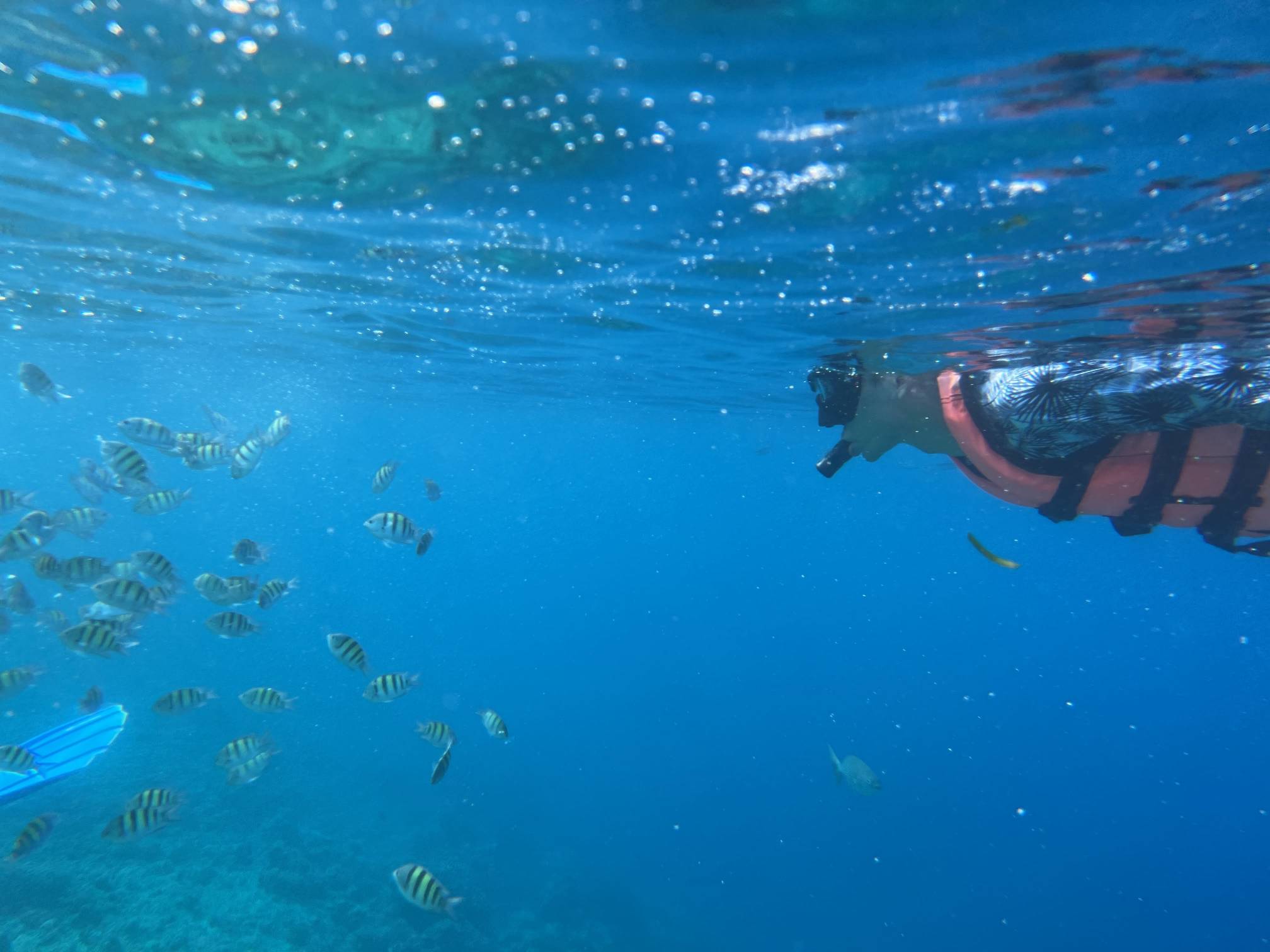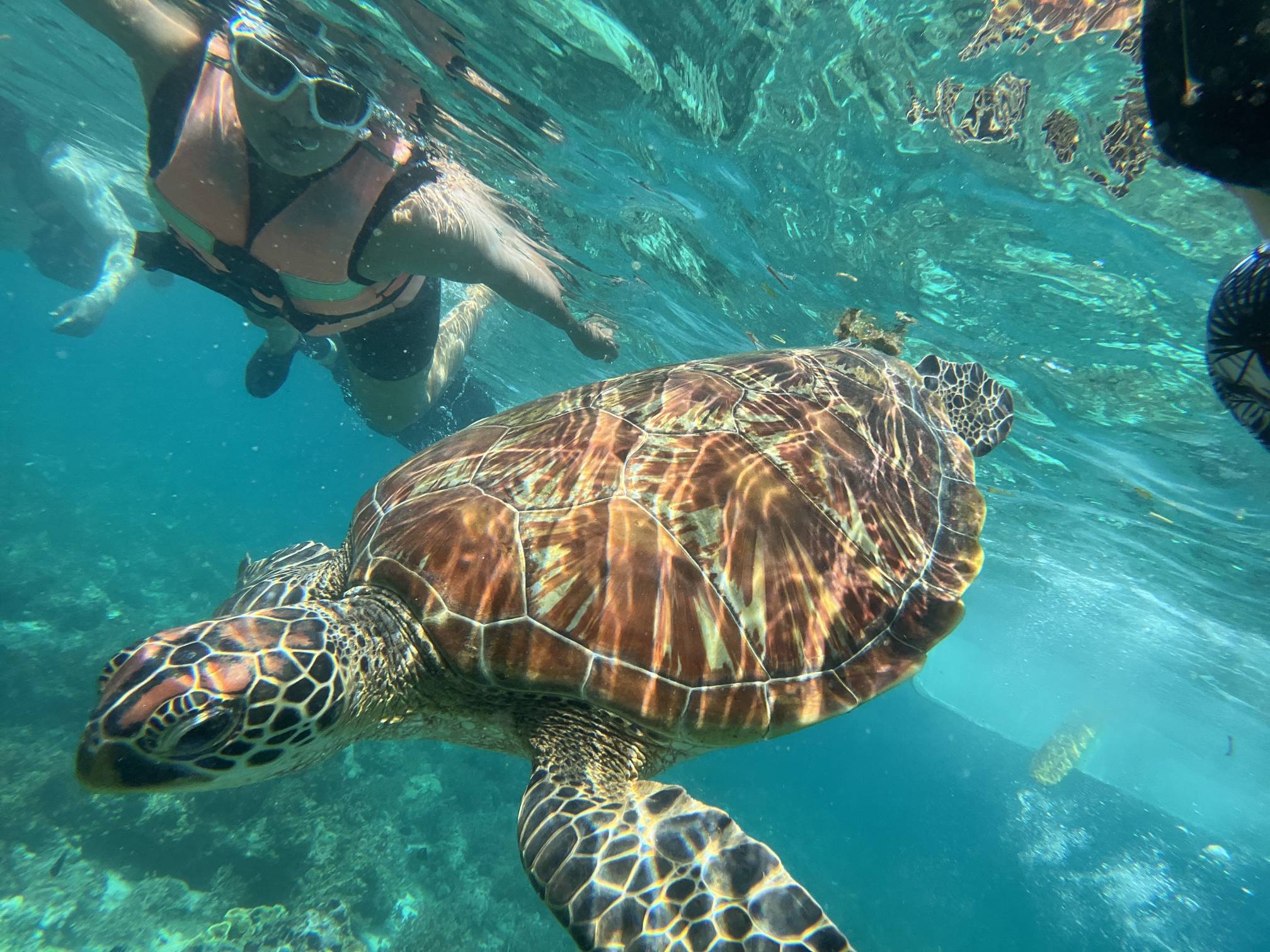 첫번째 스팟에서는 물고기들을 보고, 두번째 스팟으로 이동해서 거북이를 보는데 거북이는 진짜… 환상적이다. 크기도 엄청나게 큰데 귀엽기도 하고 몽환적이기도 하고 진짜 너무 멋지다. 세부에서는 고래상어를 바로 앞에서 볼 수 있다면, 보홀에서는 거북이를 진짜 바로 앞에서 볼 수 있고 잠영을 조금만 할 줄 알면 거북이랑 셀카도 찍을 수 있다. 사람들이 바글거리면서 거북이 구경하는 게 거북이한테 좀 미안하기는 하지만 암튼 보홀에서는 이 거북이는 진짜 무조건 봐야 한다.
