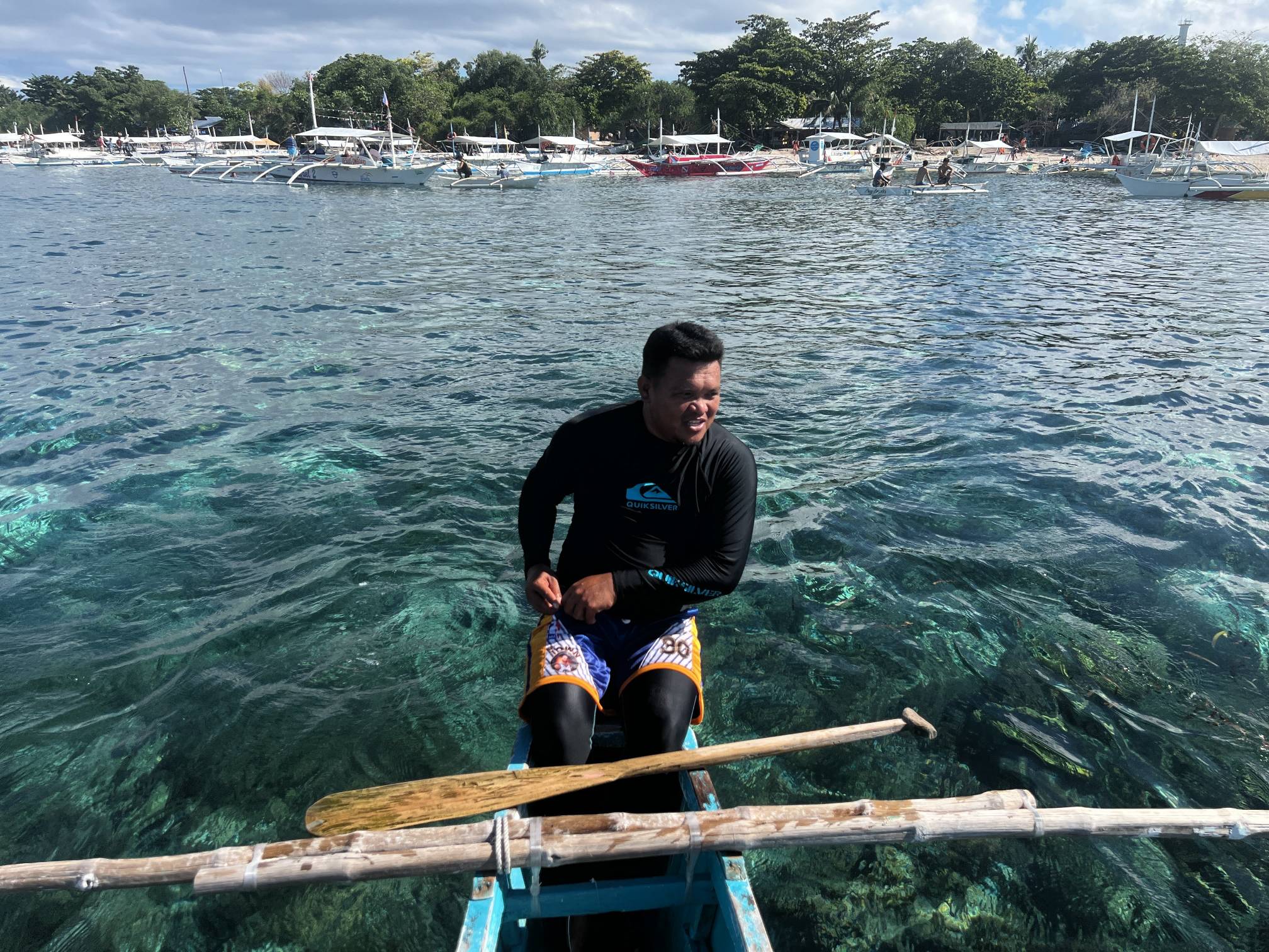 #발리카삭 #거북이 : 일단 알로나비치 쪽에서 배를 타고 20분 정도 이동하면 ’발리카삭‘이라는 섬에 도착하는데, 발리카삭 섬에 도착하면 현지 가이드가 다시 현지 어부를 섭외해온다(자유여행으로 오면 이걸 직접 해야함). 그러면 그 발리카삭섬 현지 어부의 배로 갈아타서 바다로 나가서 호핑투어를 한다. 그 동안 가지고 온 짐은 투어 가이드가 맡아주니 그냥 물놀이 할 스노클링만 가지고 현지 어부를 따라가면 된다.