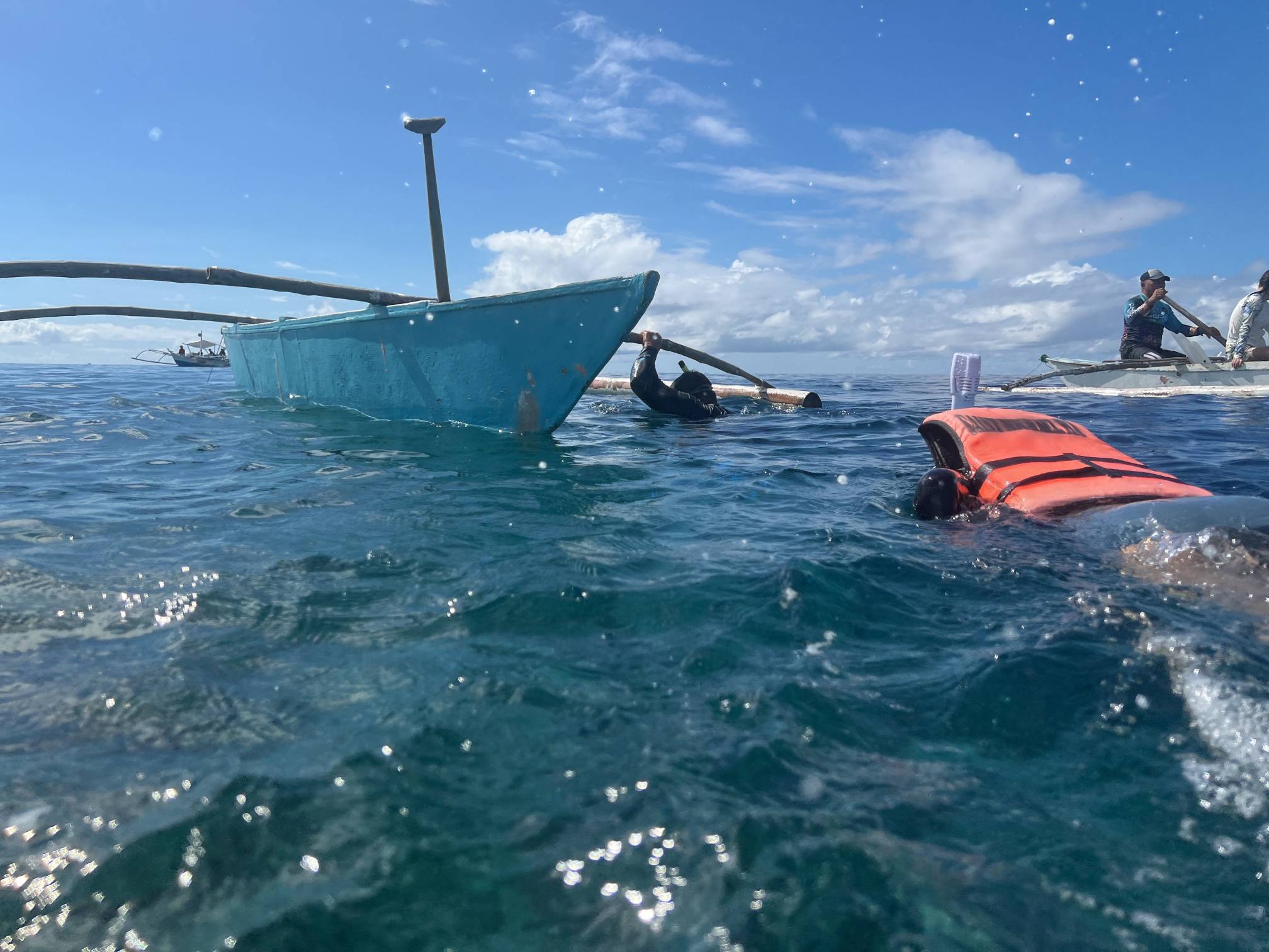 발리카삭 섬에 도착해서 어부가 직접 노를 저어서 가는 배를 타고 바다로 나간다.