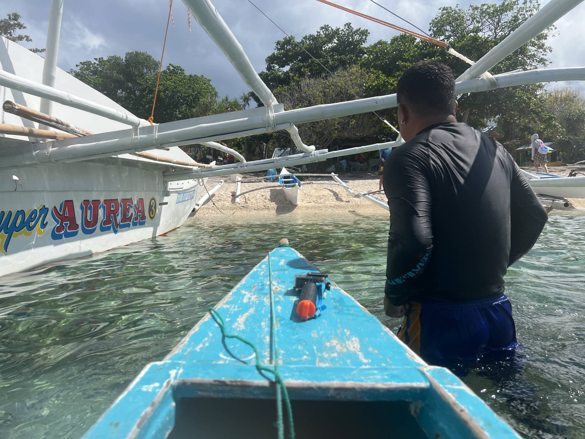 #발리카삭 #거북이 : 일단 알로나비치 쪽에서 배를 타고 20분 정도 이동하면 ’발리카삭‘이라는 섬에 도착하는데, 발리카삭 섬에 도착하면 현지 가이드가 다시 현지 어부를 섭외해온다(자유여행으로 오면 이걸 직접 해야함). 그러면 그 발리카삭섬 현지 어부의 배로 갈아타서 바다로 나가서 호핑투어를 한다. 그 동안 가지고 온 짐은 투어 가이드가 맡아주니 그냥 물놀이 할 스노클링만 가지고 현지 어부를 따라가면 된다.