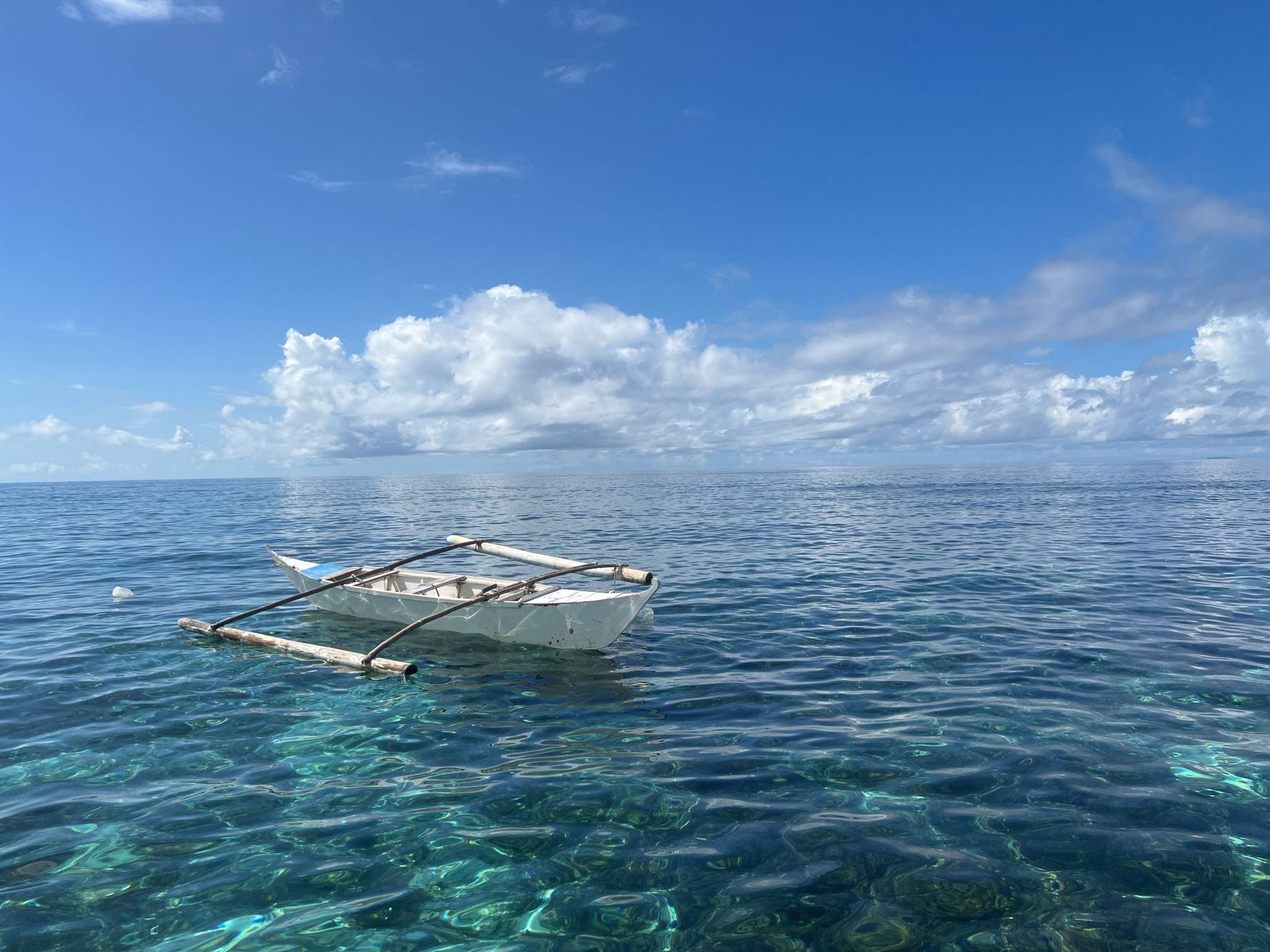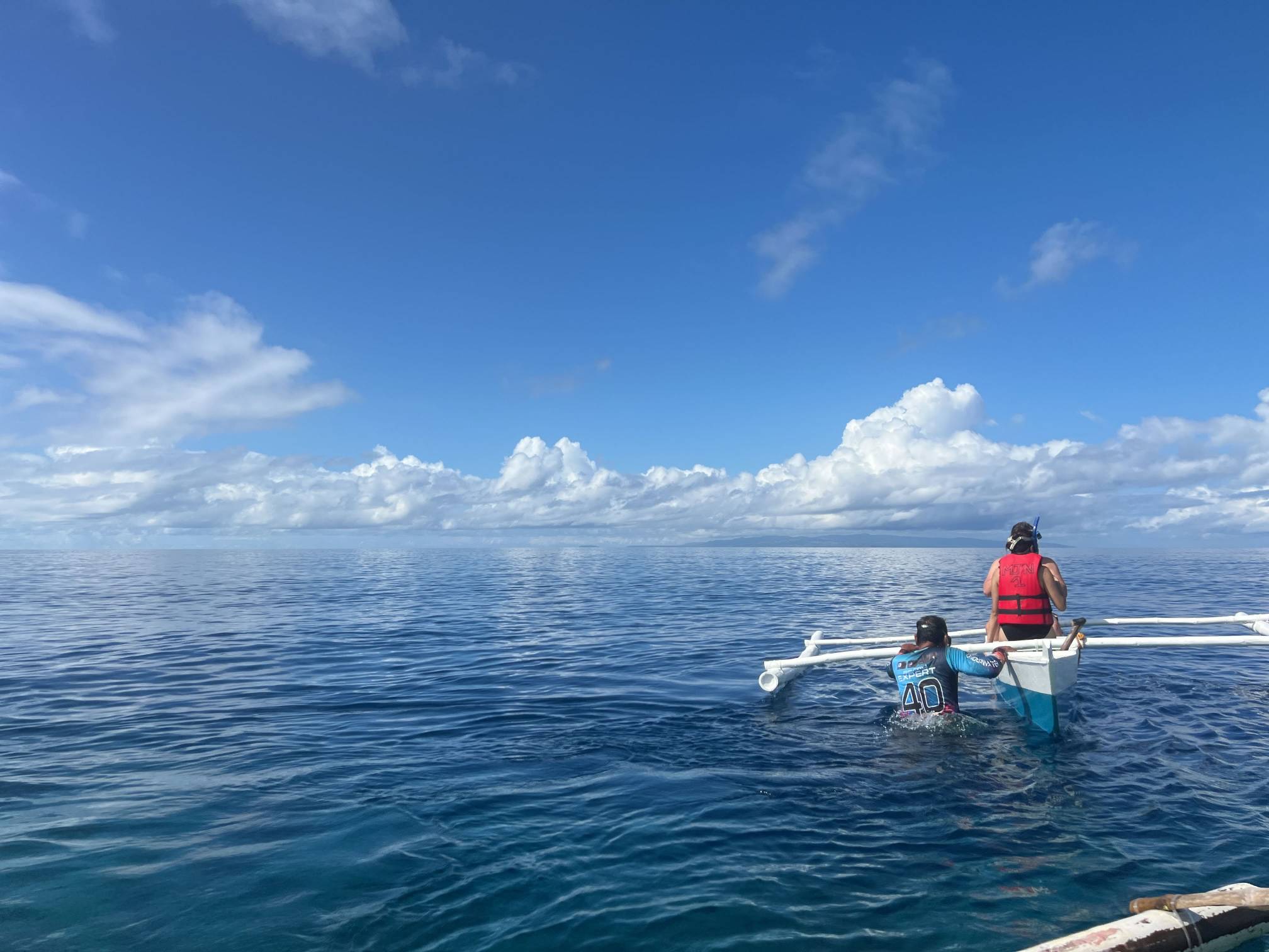 발리카삭 섬에 도착해서 어부가 직접 노를 저어서 가는 배를 타고 바다로 나간다.