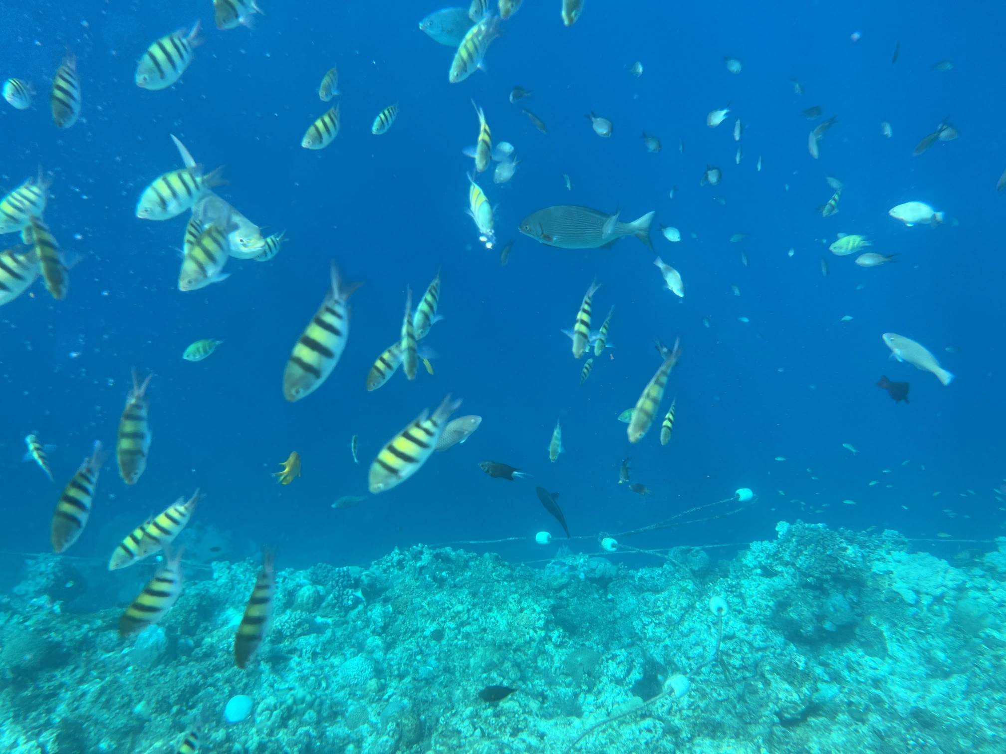 생각보다 수심은 깊은데 프리다이빙을 잘하는 사람들은 바닥까지 내려가서 물고기랑 같이 사진을 찍는다.