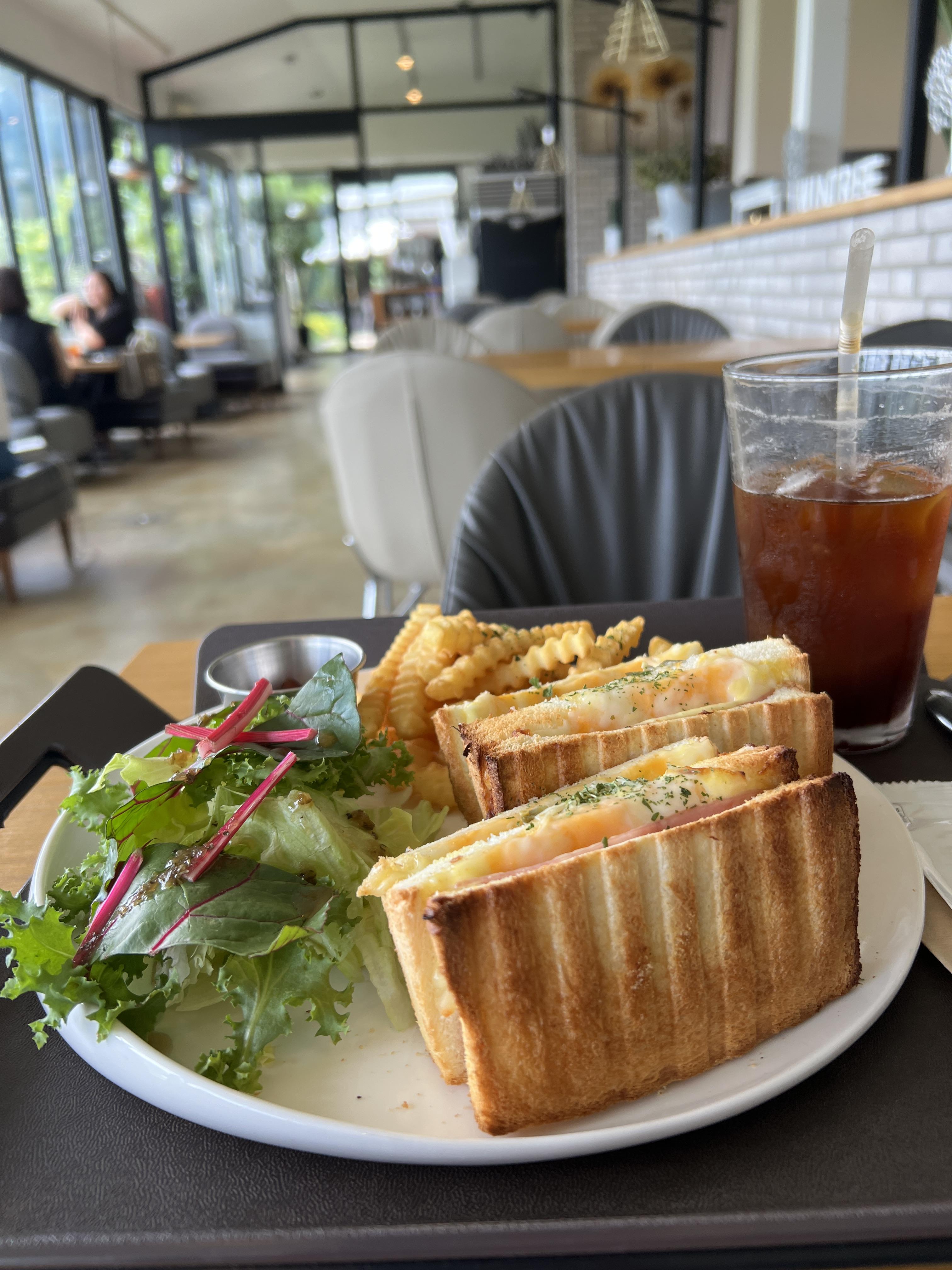 이렇게 샌드위치랑 샐러드, 감자튀김, 커피가 같이 나오는데 대략 가격이 16,000원 정도여서 가성비는 괜찮은 것 같다.