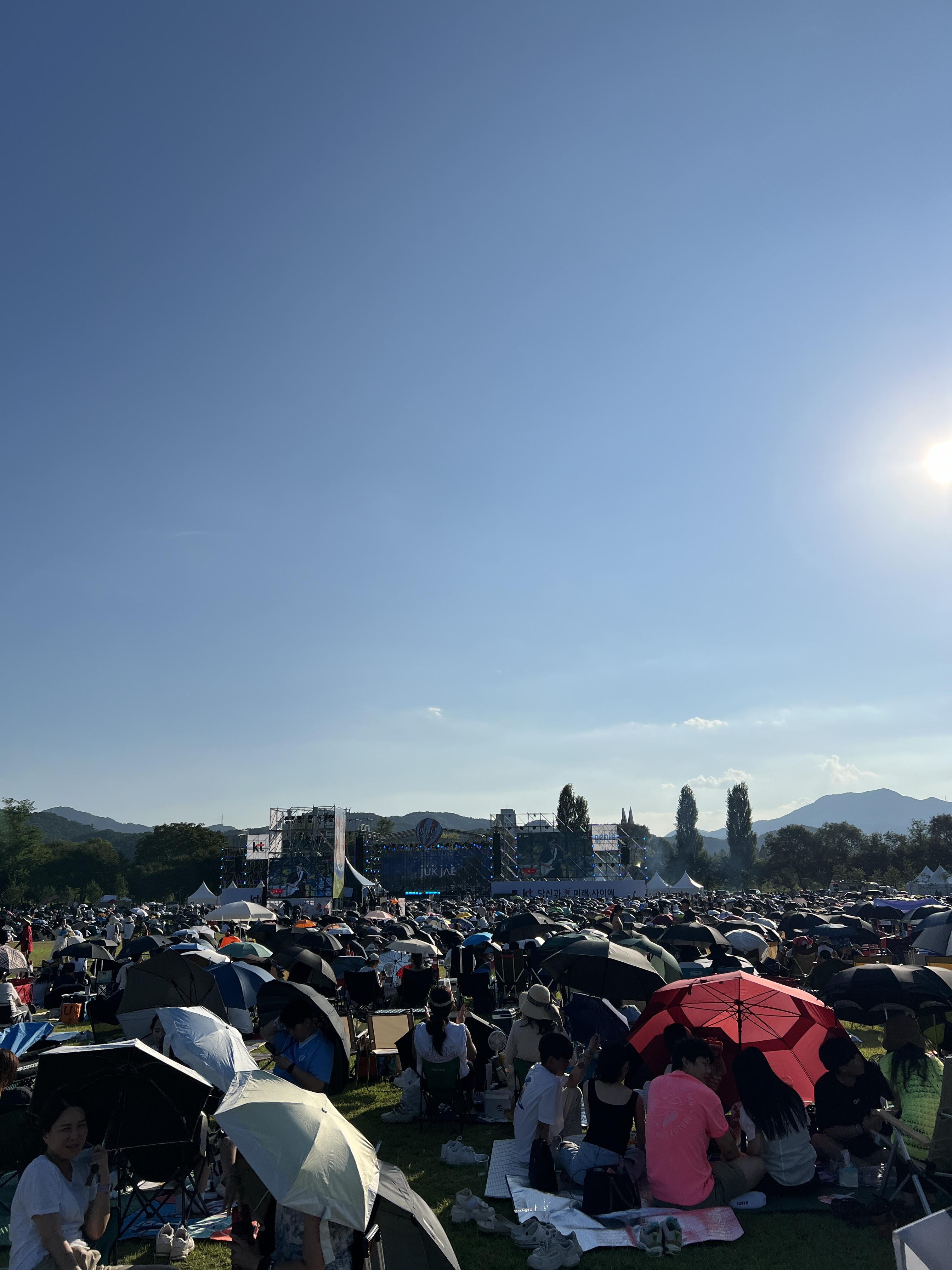 적재가 공연할 때에는 더워서 사람들이 다들 우산으로 가리고 있고 등 돌리고 있어서 좀 안타까웠다 ㅠㅠ