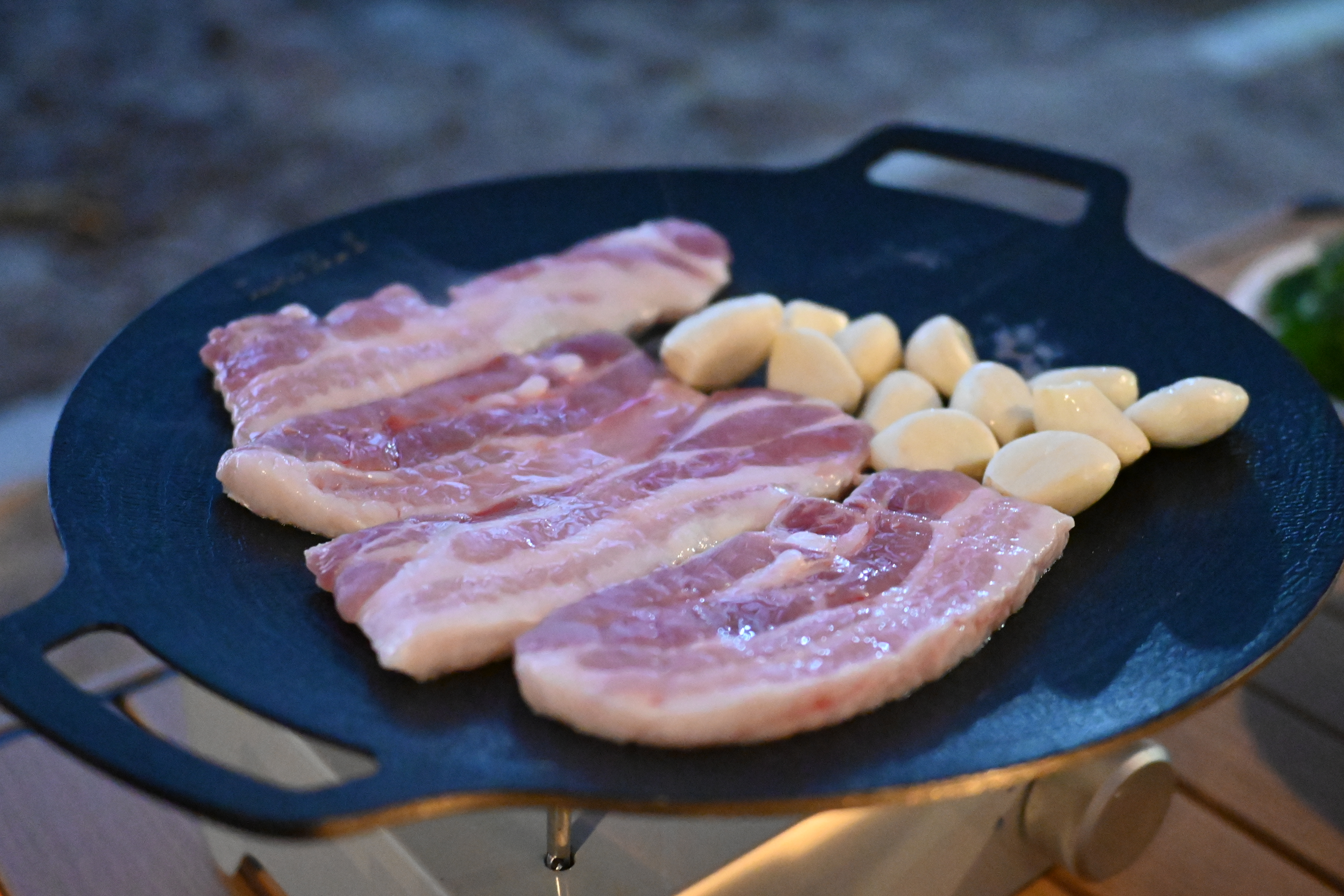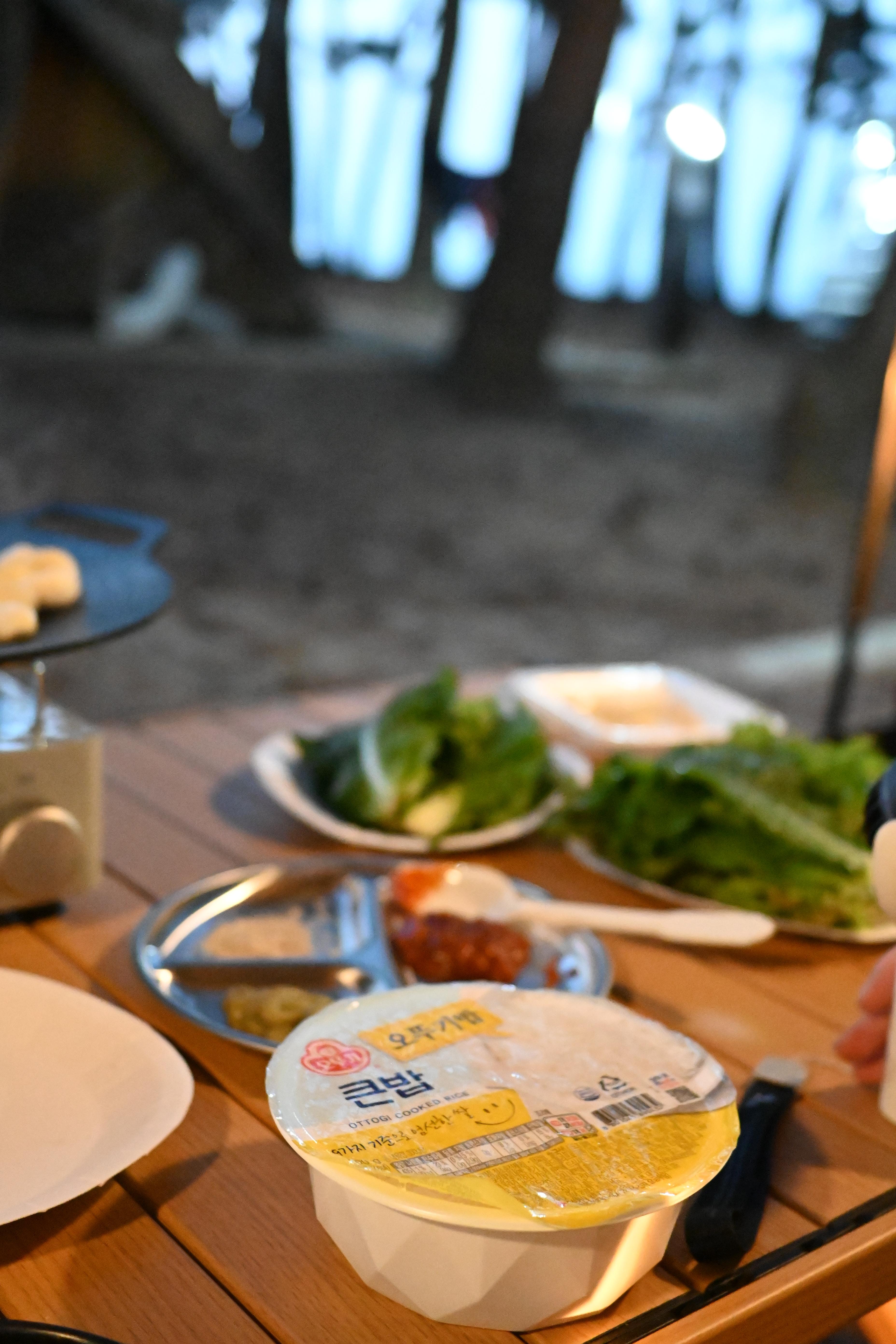 고기를 구워야 캠핑 기분이 나기도 하고, 솔직히 삼겹살 구워먹는 게 제일 간편하기도 하다.