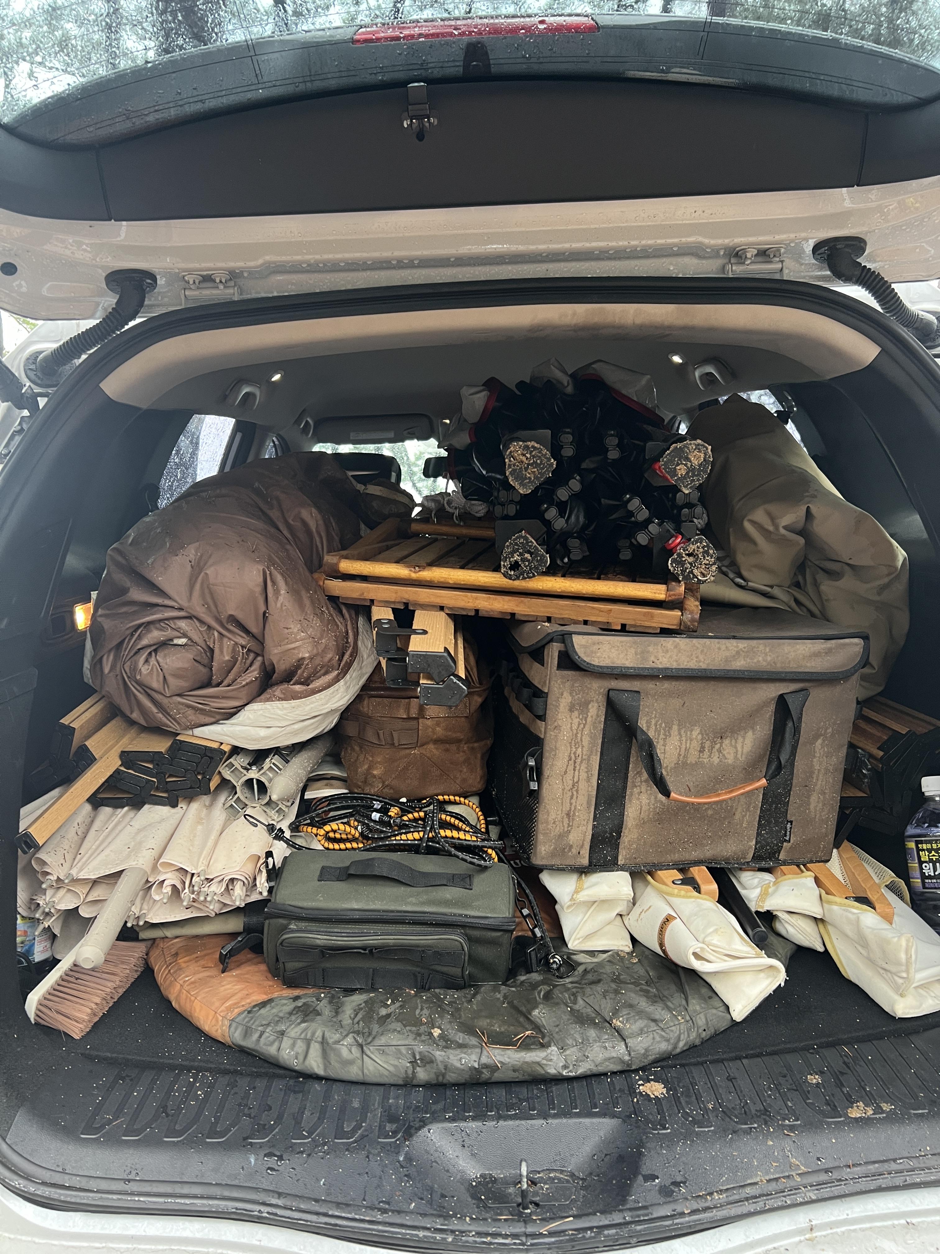 일단 비가 그칠 때까지 기다렸다가 그치자마자 대충 트렁크에 때려 박았다 ㅠㅠ