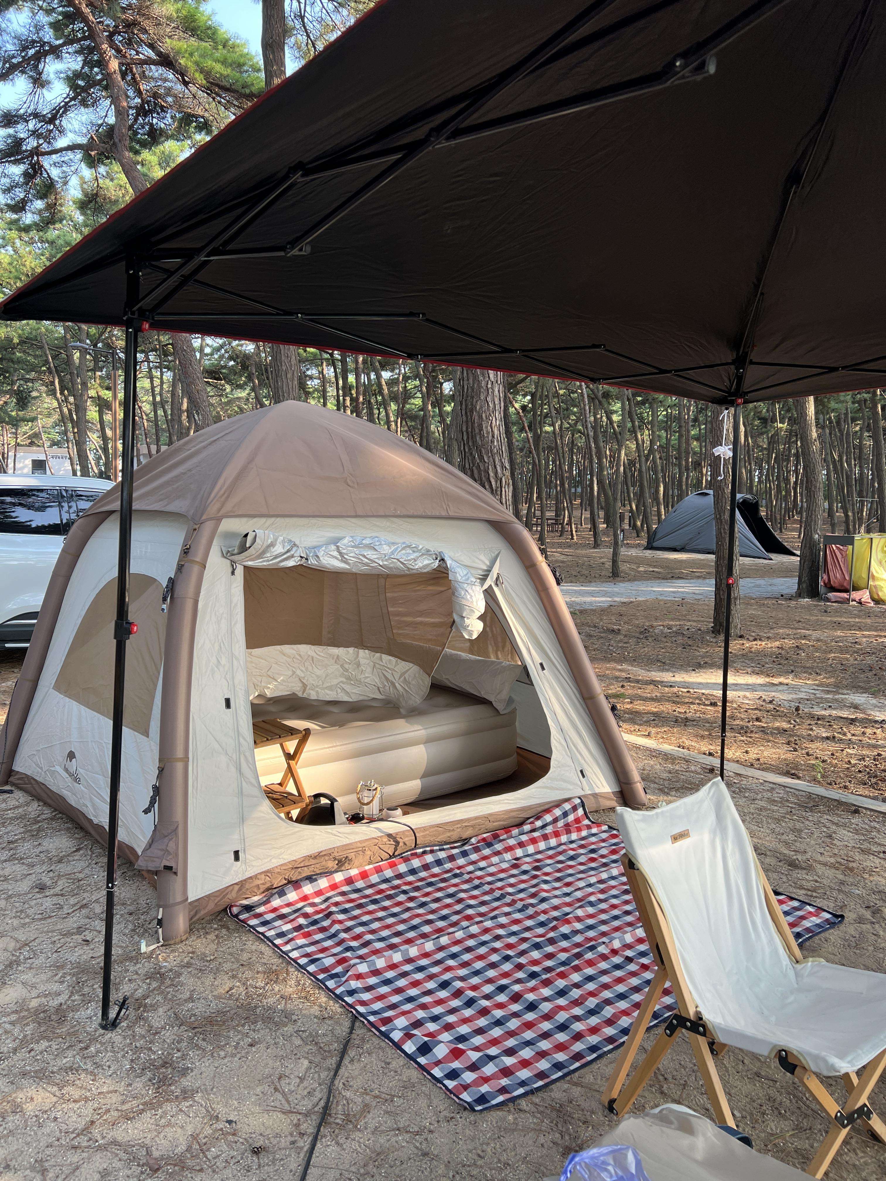 피칭 완료. 에어텐트에 캐노피, 테이블, 의자 정도로 하는 나름 미니멀한 구성이라고 생각하기는 하는데