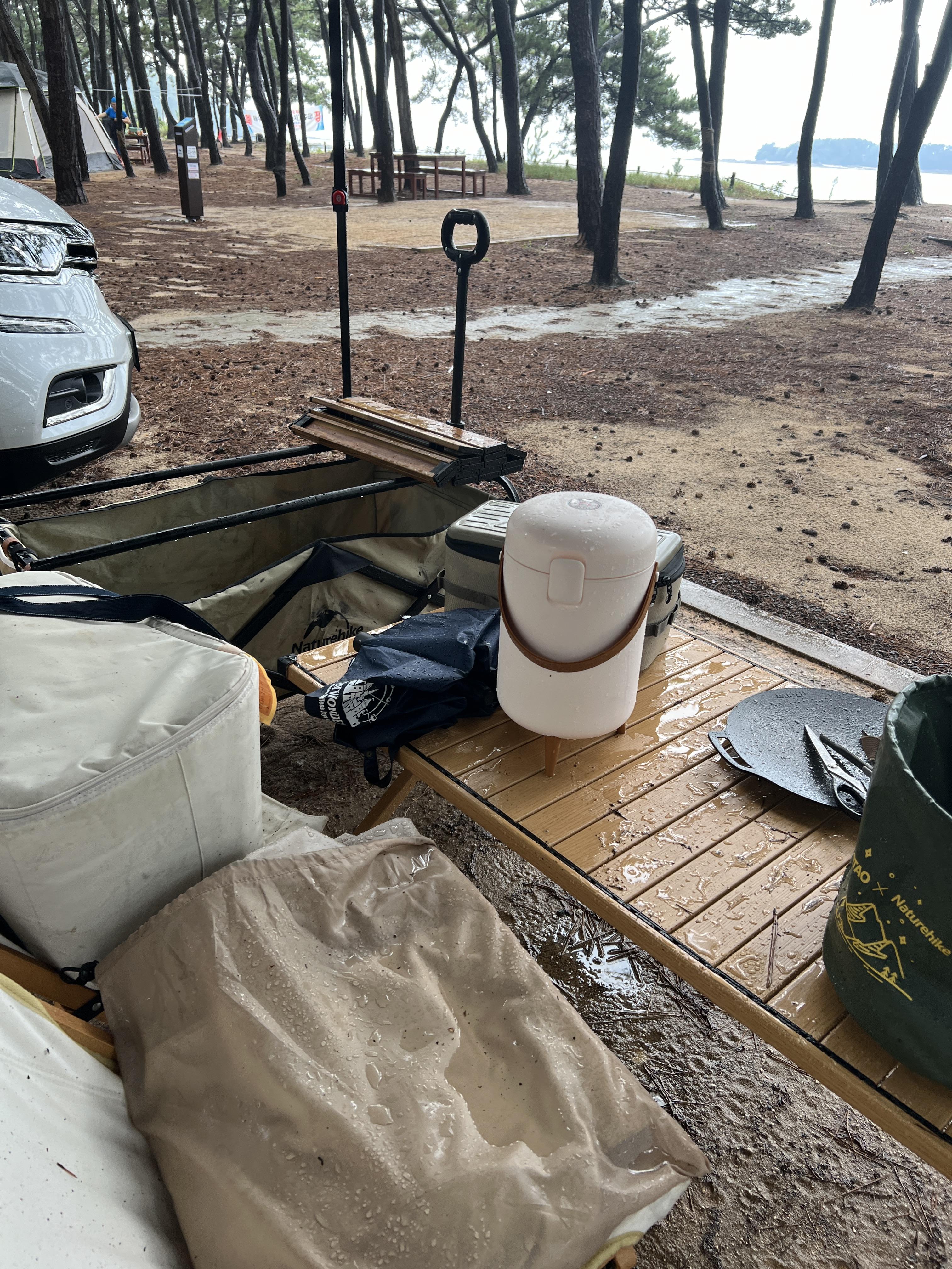 그나마 이 텐트는 의외로 방수가 잘 돼서 텐트 안으로 대피하니 내부는 하나도 안 젖었다.