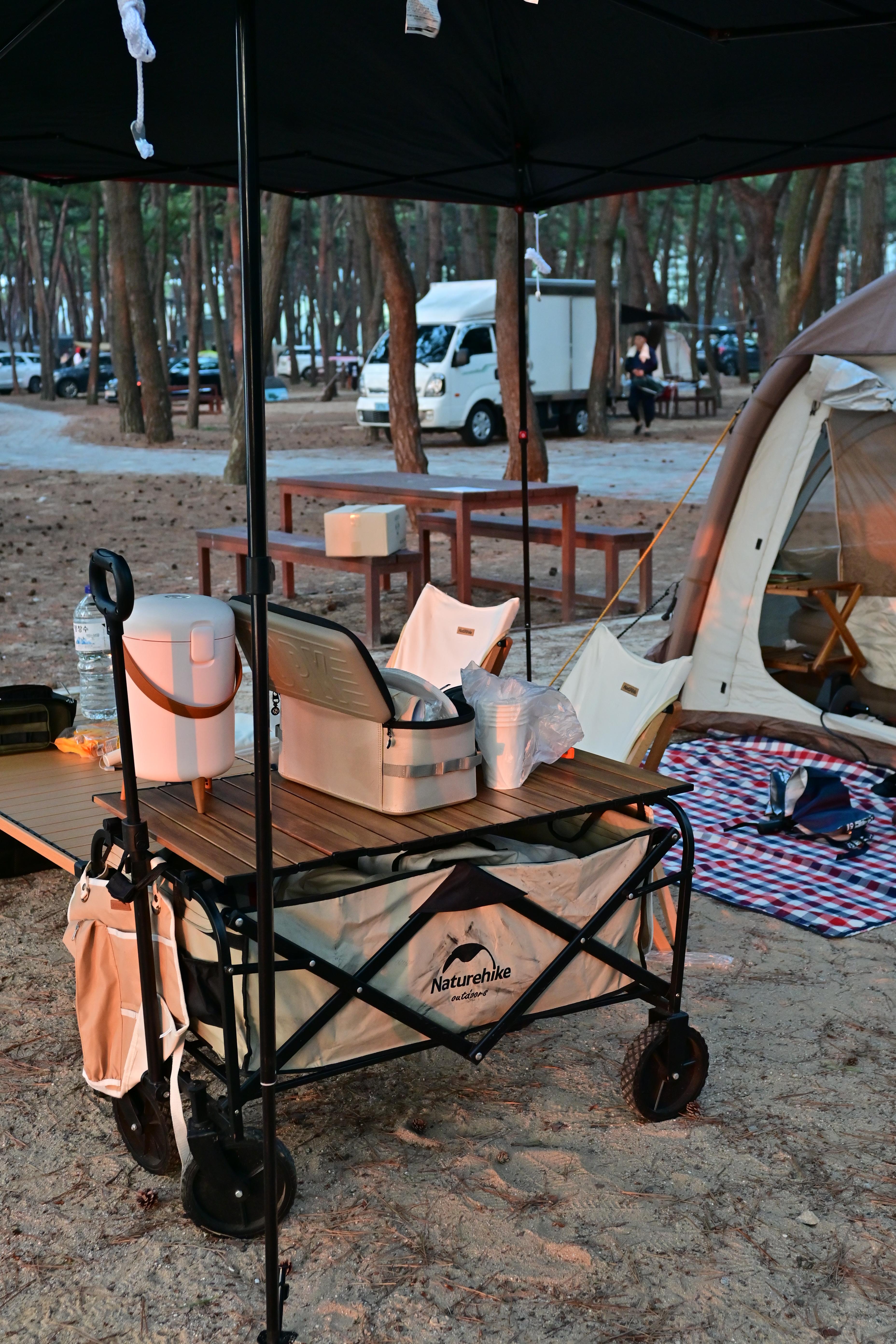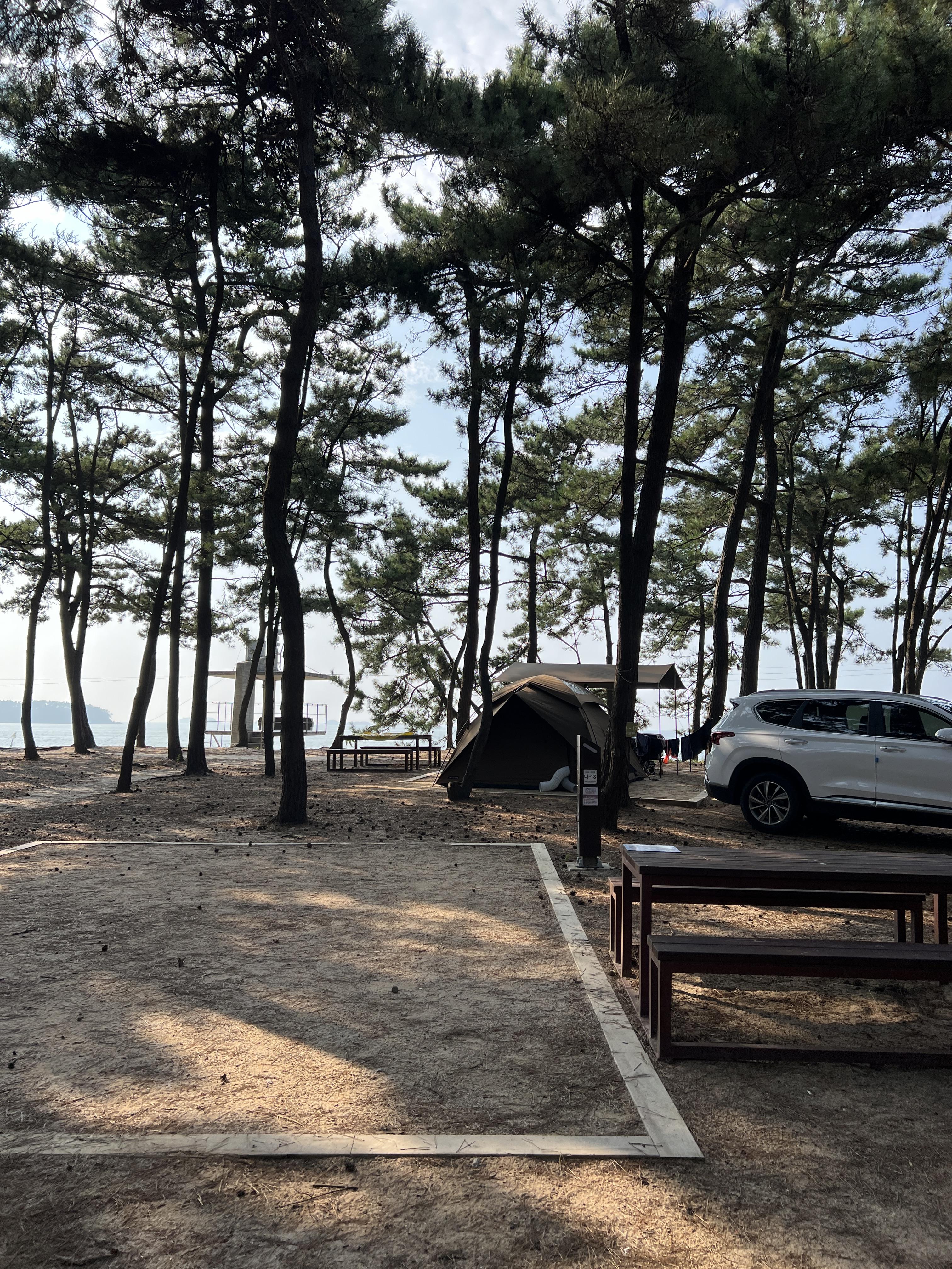 이런 식으로 소나무로 그늘이 져있어서 굳이 타프가 필요 없기도 하고, 바다가 바로 앞이니 그냥 걸어나가면 된다.