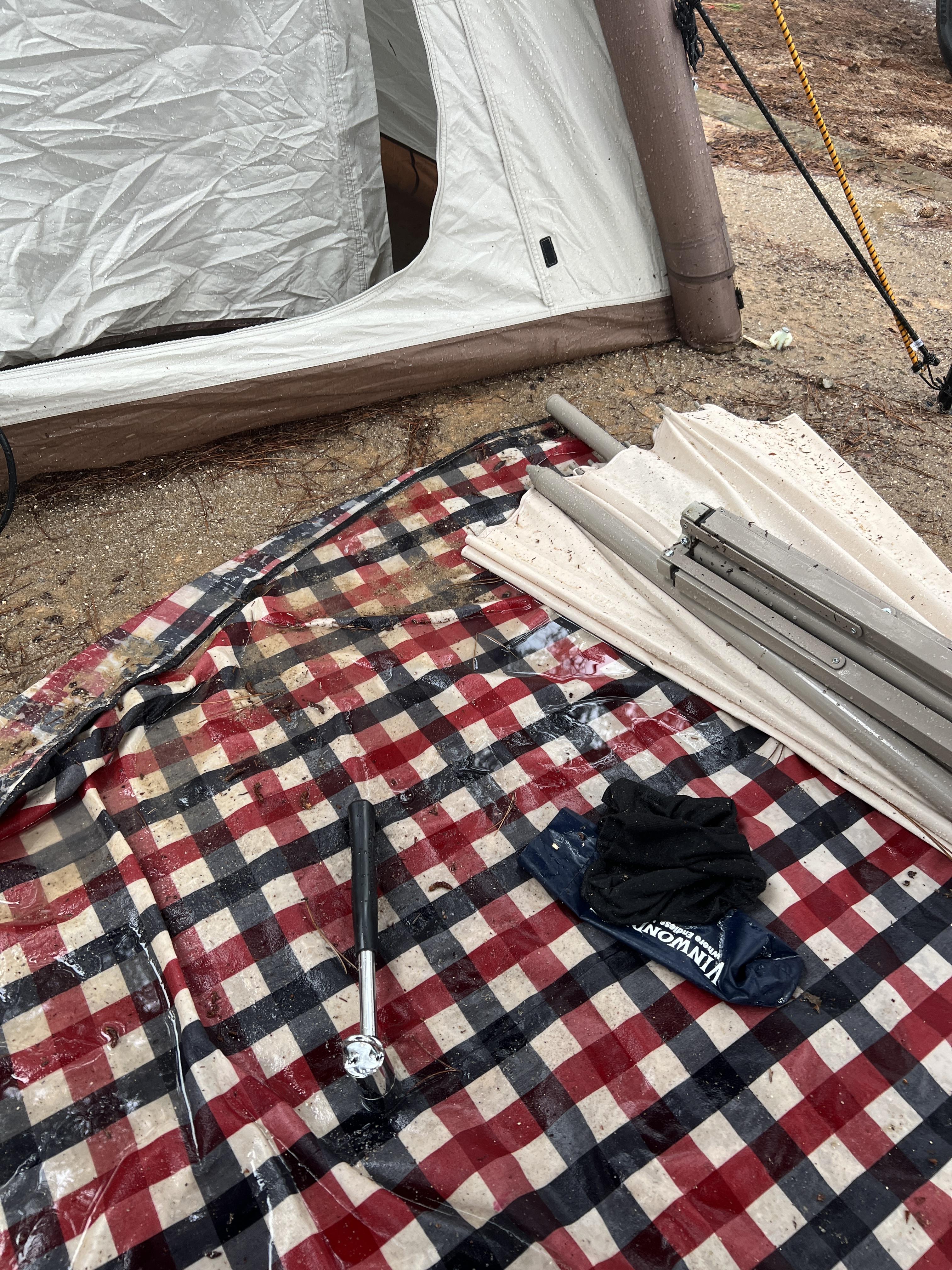 아니 텐트가 날아갈듯이 바람이 불고 비가 미친듯이 쏟아져서 보다시피 모든 장비들이 홀딱 젖었다... 심란 ...