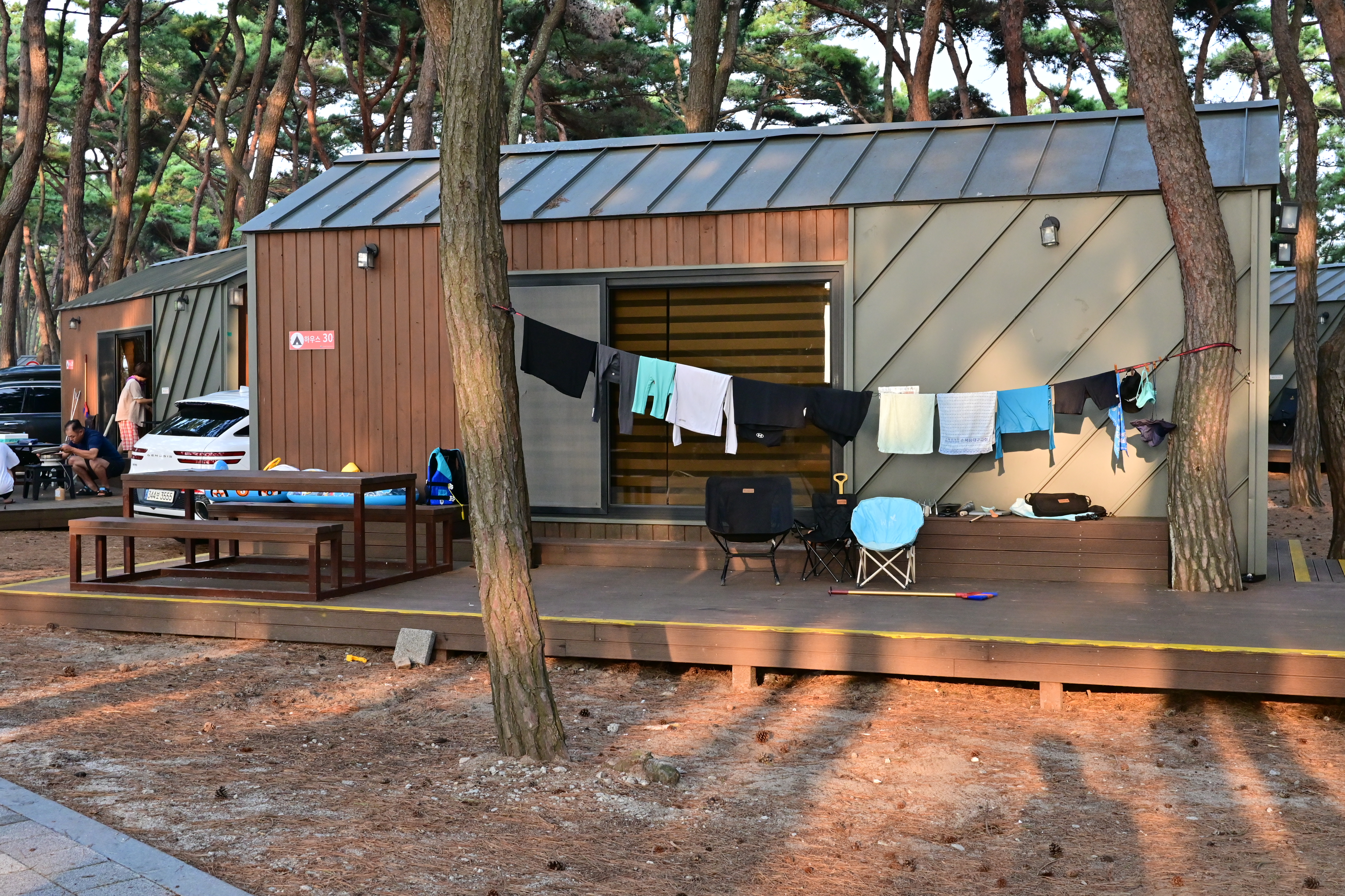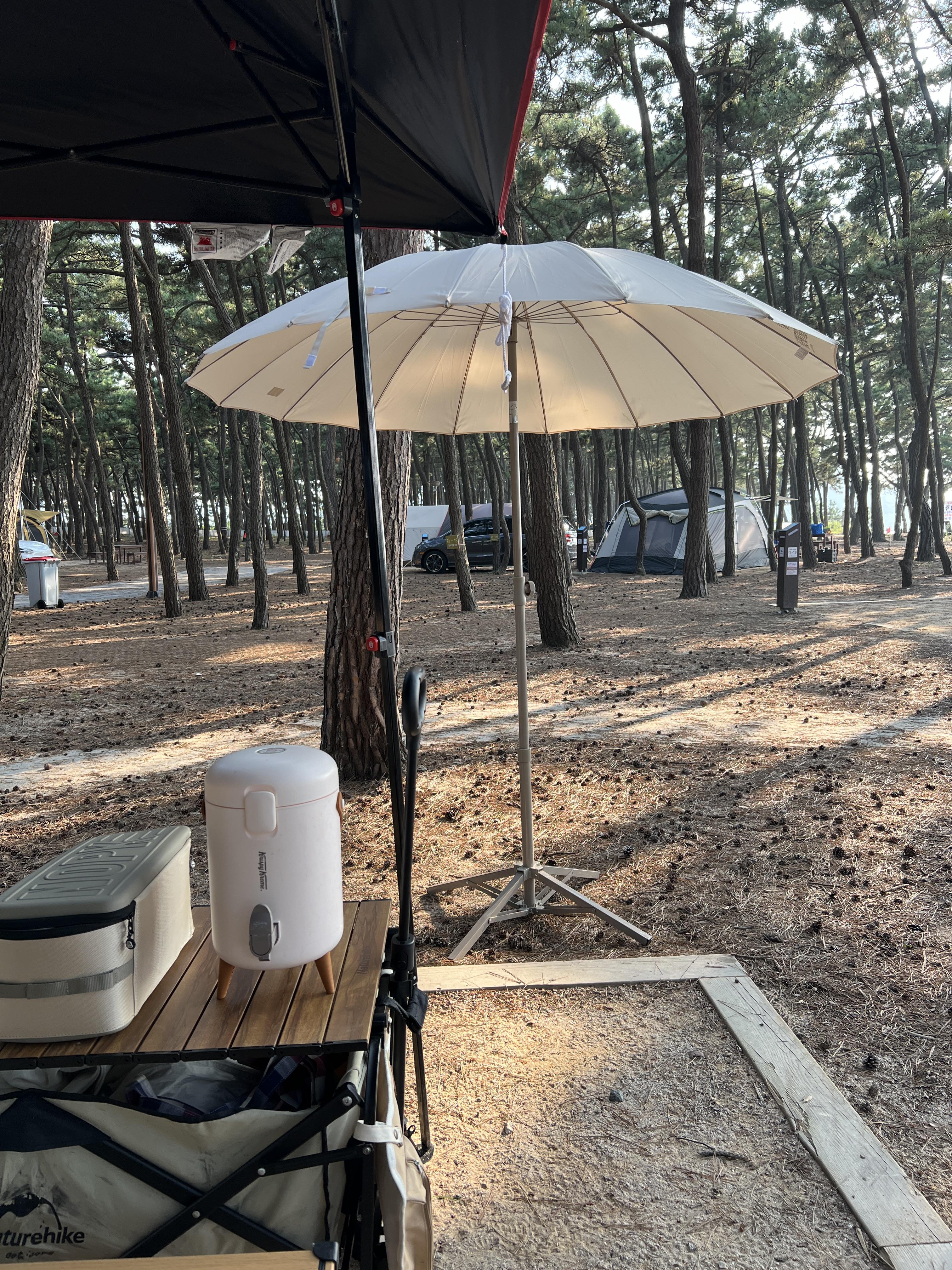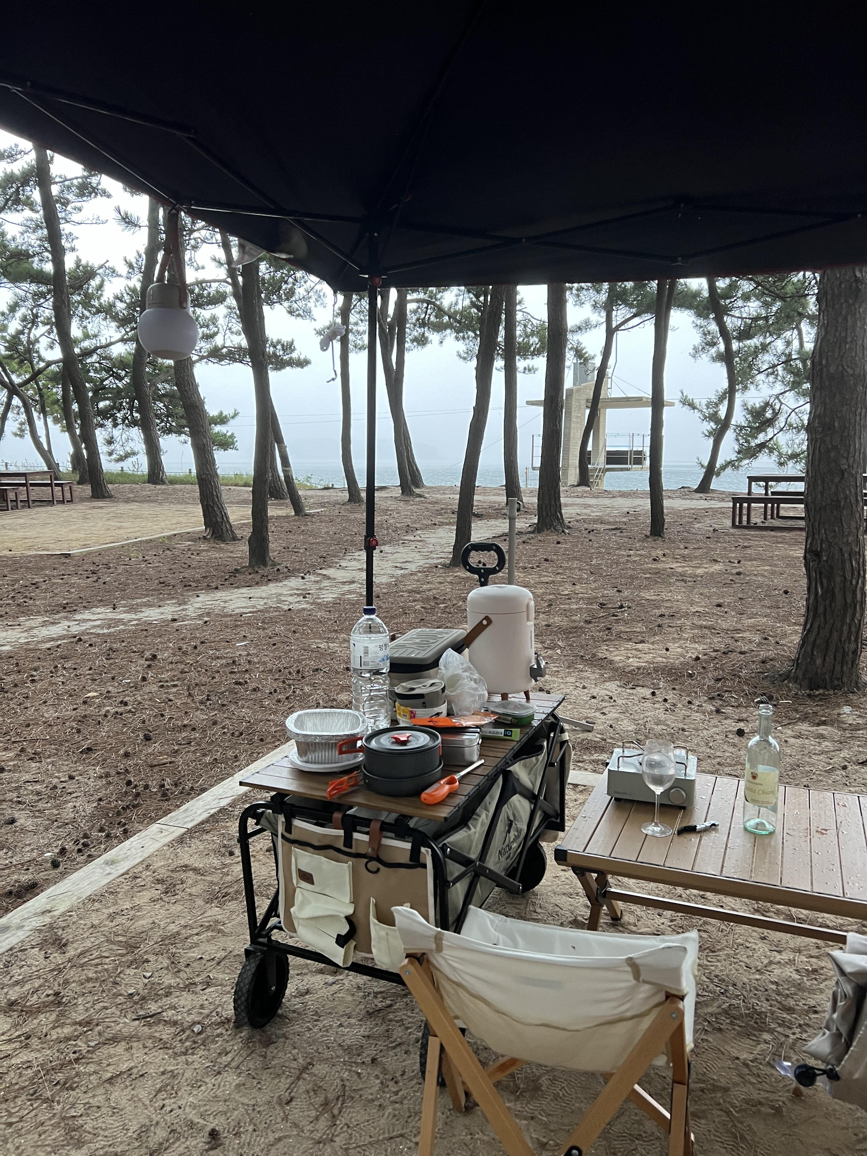 이런 식으로 소나무로 그늘이 져있어서 굳이 타프가 필요 없기도 하고, 바다가 바로 앞이니 그냥 걸어나가면 된다.