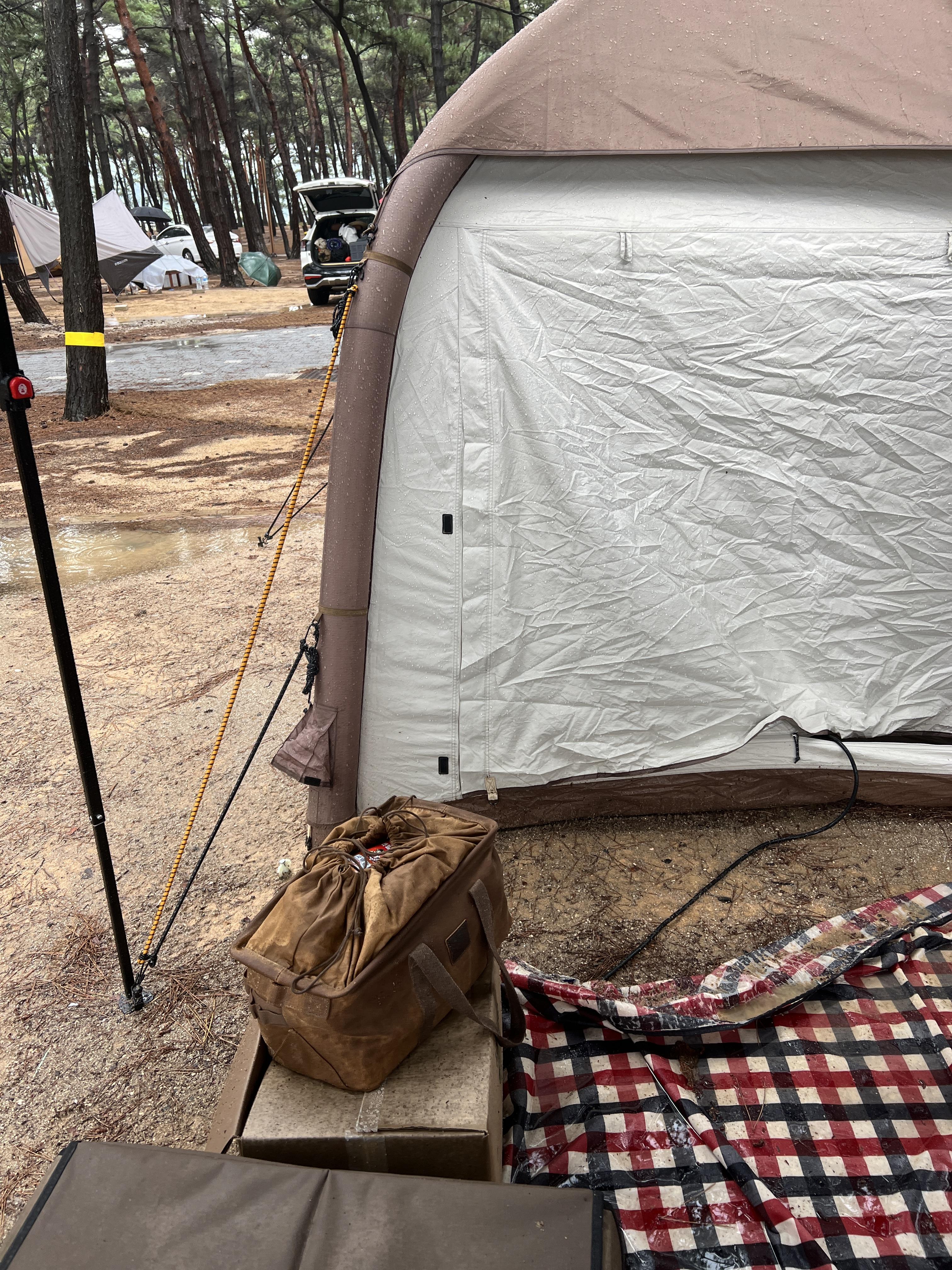 그나마 이 텐트는 의외로 방수가 잘 돼서 텐트 안으로 대피하니 내부는 하나도 안 젖었다.