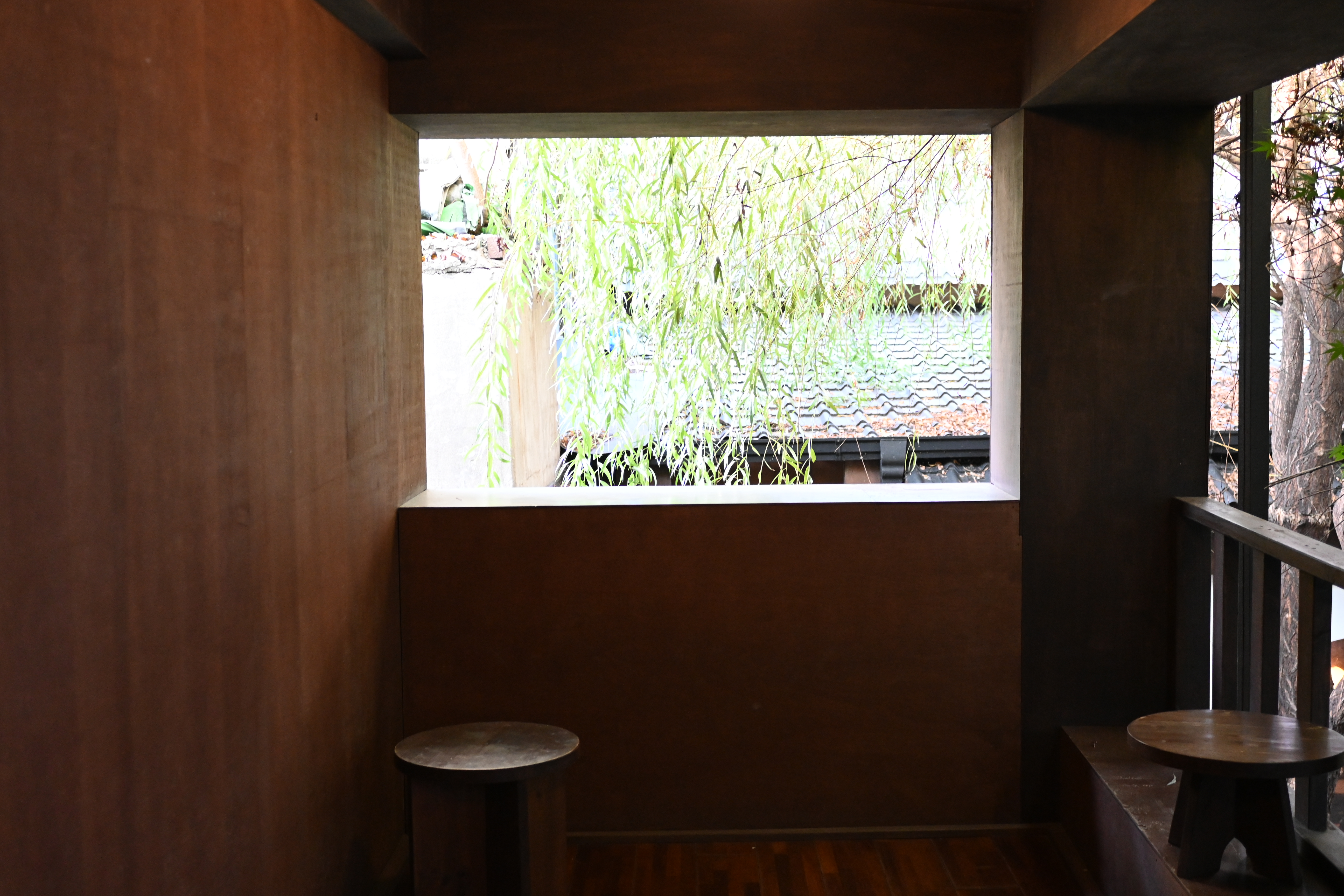 창문으로 보이는 식물이 청량하고 좋다.