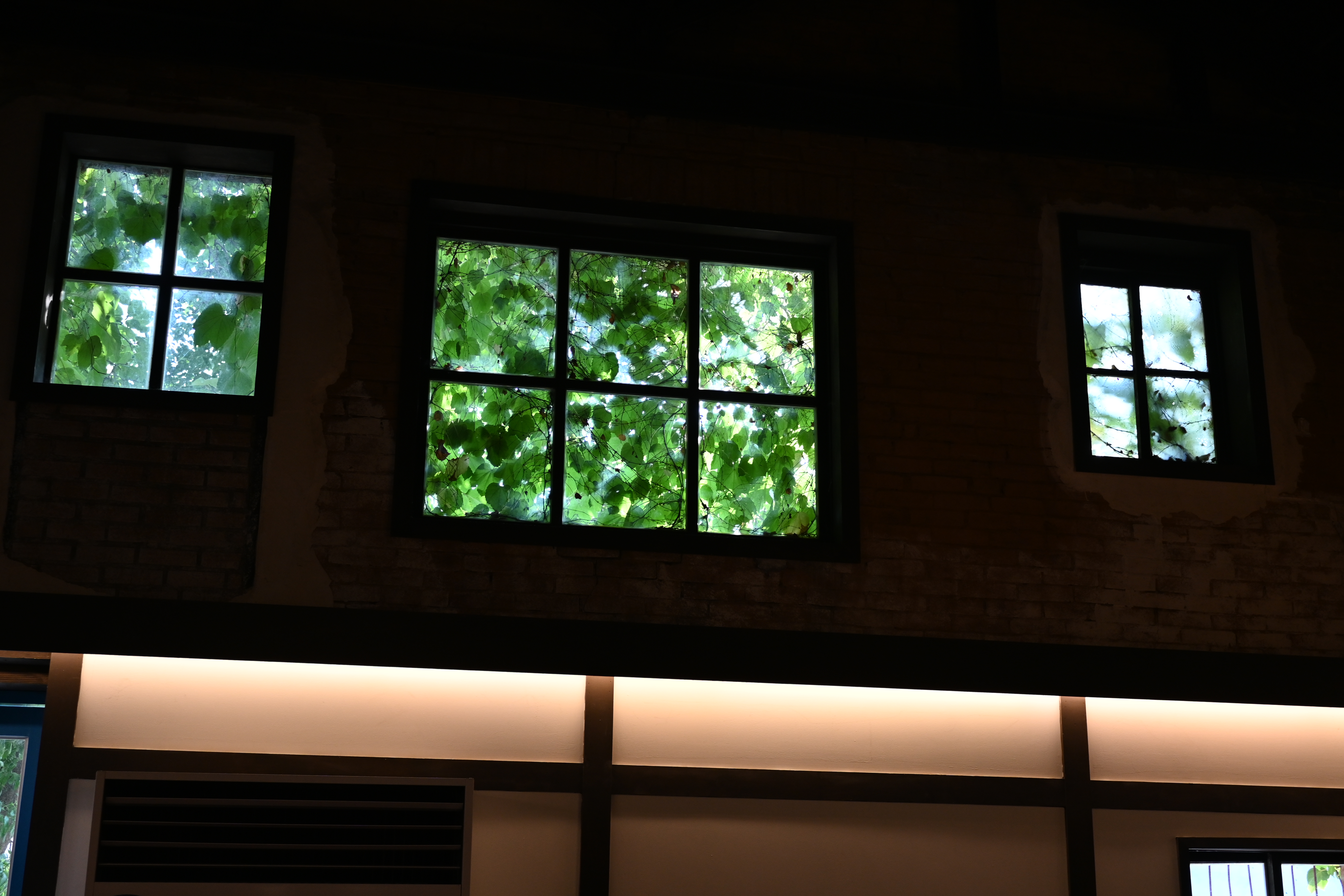 창문으로 보이는 식물이 청량하고 좋다.