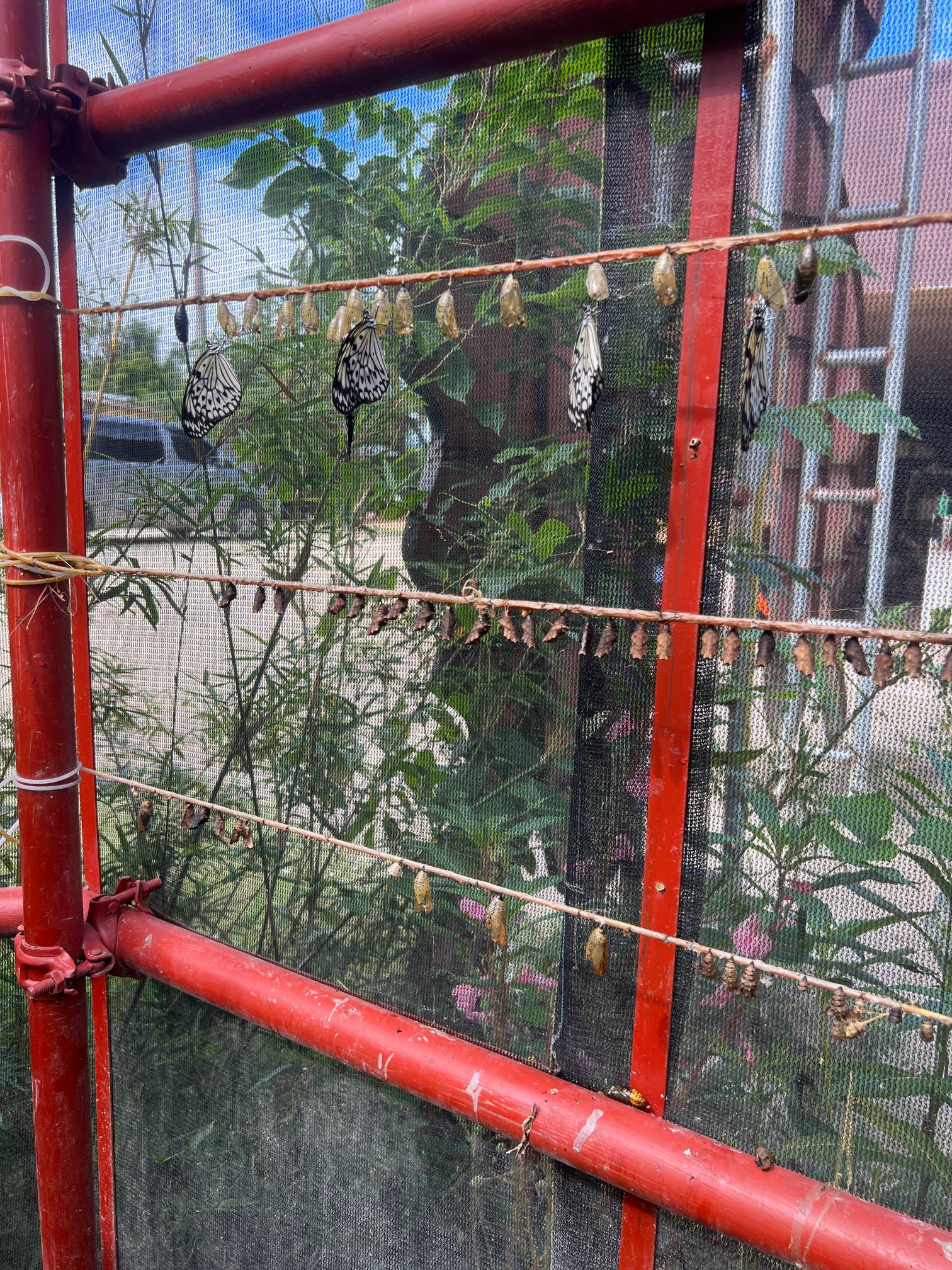 이런 식으로 나비로 변태하고 있는 번데기도 있고 곳곳에 하여튼 나비들이 오지게 날아다닌다.