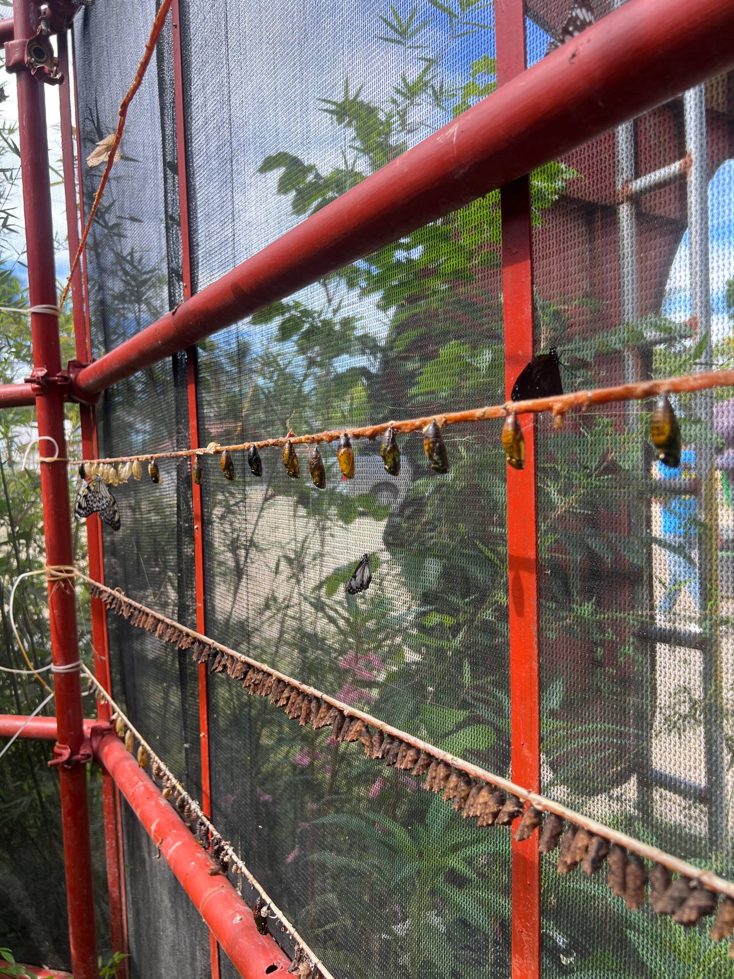 이런 식으로 나비로 변태하고 있는 번데기도 있고 곳곳에 하여튼 나비들이 오지게 날아다닌다.