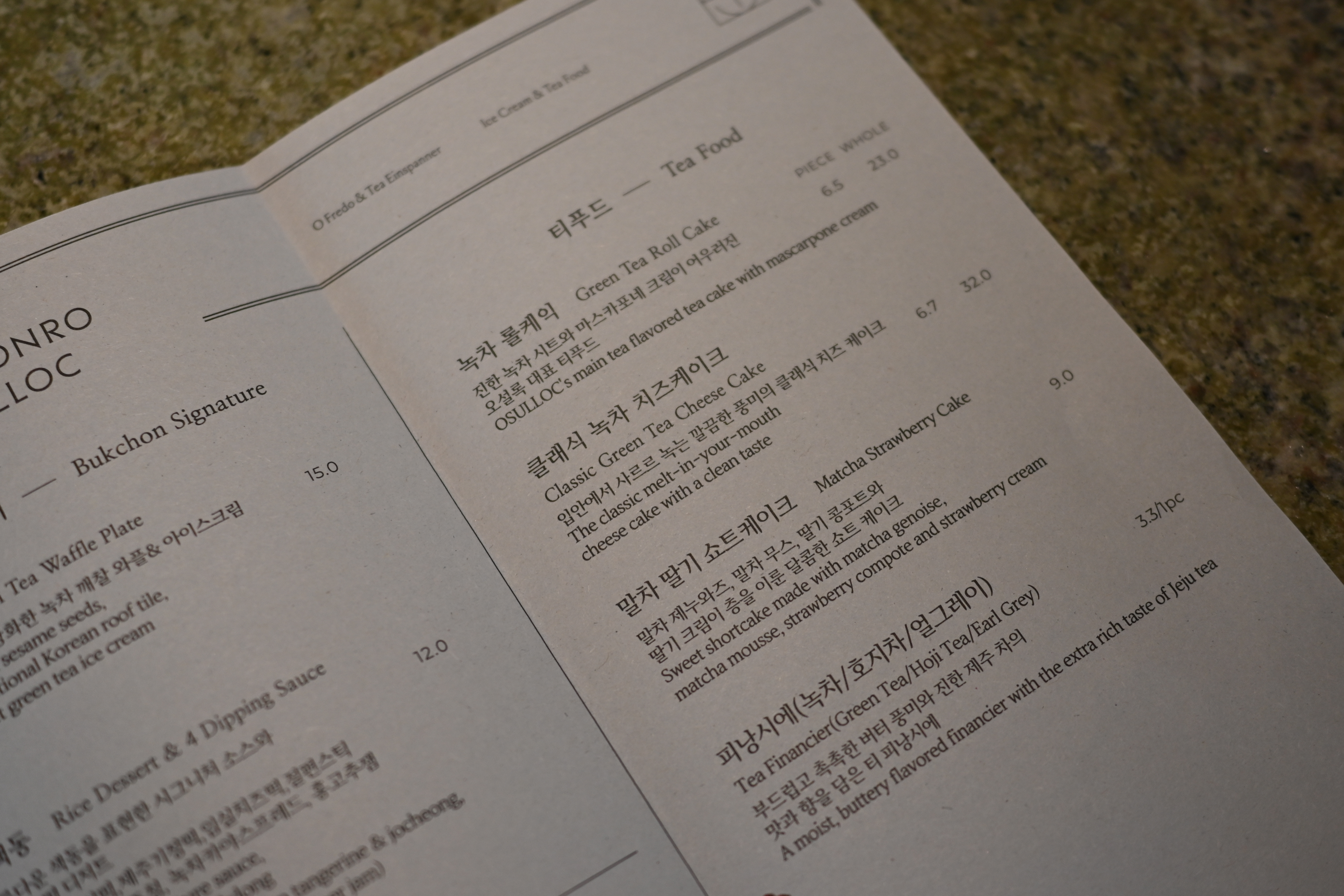 영귤 모히또랑 북촌점에서만 판매한다는 '구운 녹차' 티를 주문했다.