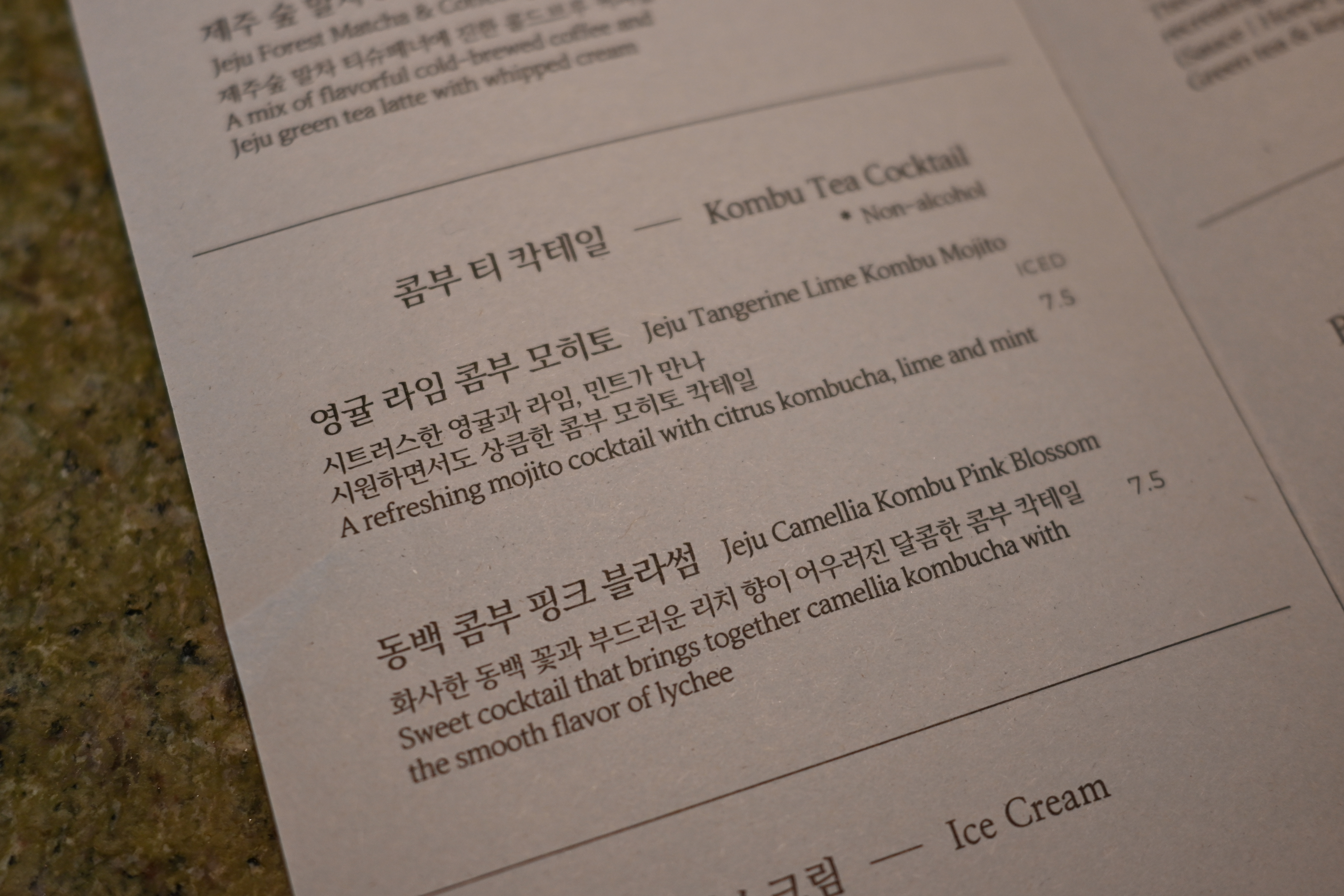 영귤 모히또랑 북촌점에서만 판매한다는 '구운 녹차' 티를 주문했다.